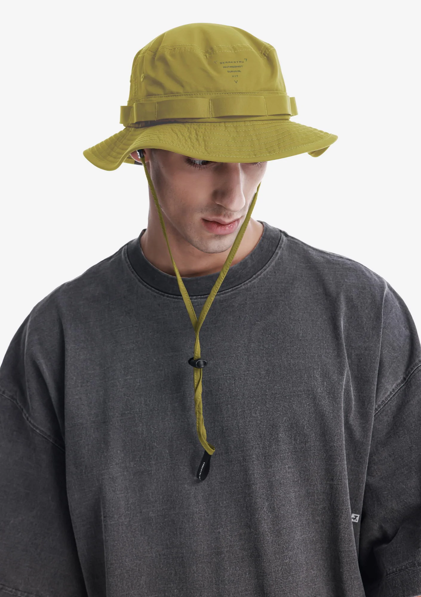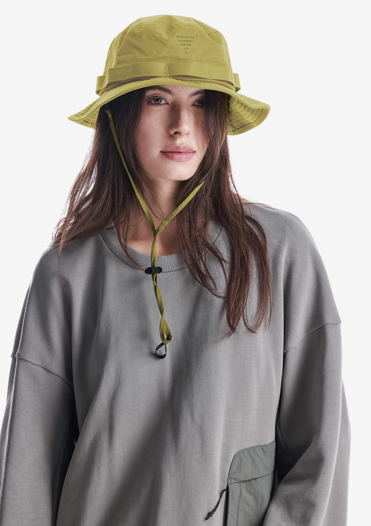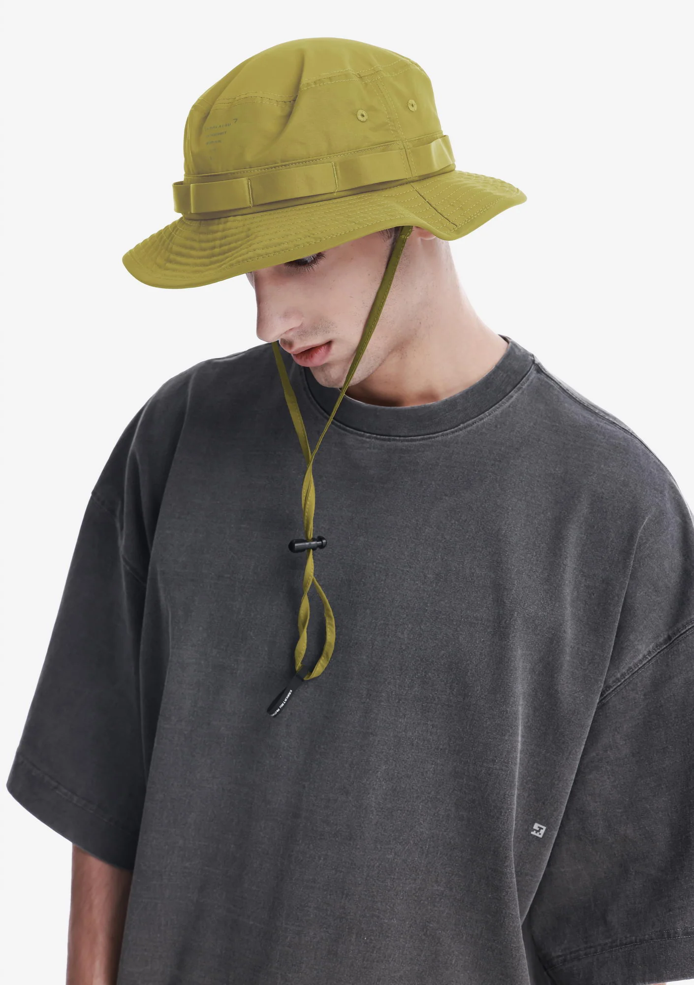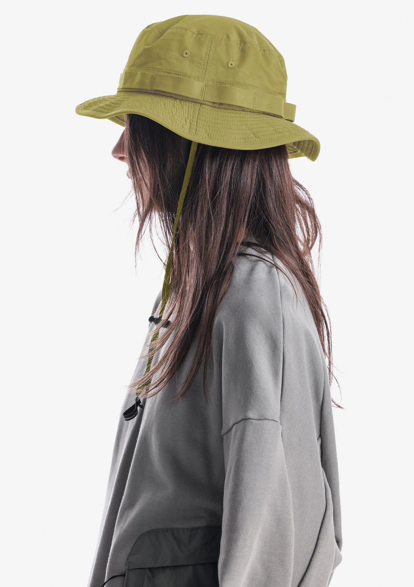 Панама из плотной матовой ткани, комфортной и дышащей. Широкие поля обеспечивают дополнительную защиту от солнца, а регулируемый шнур позволяет точно настроить посадку.
