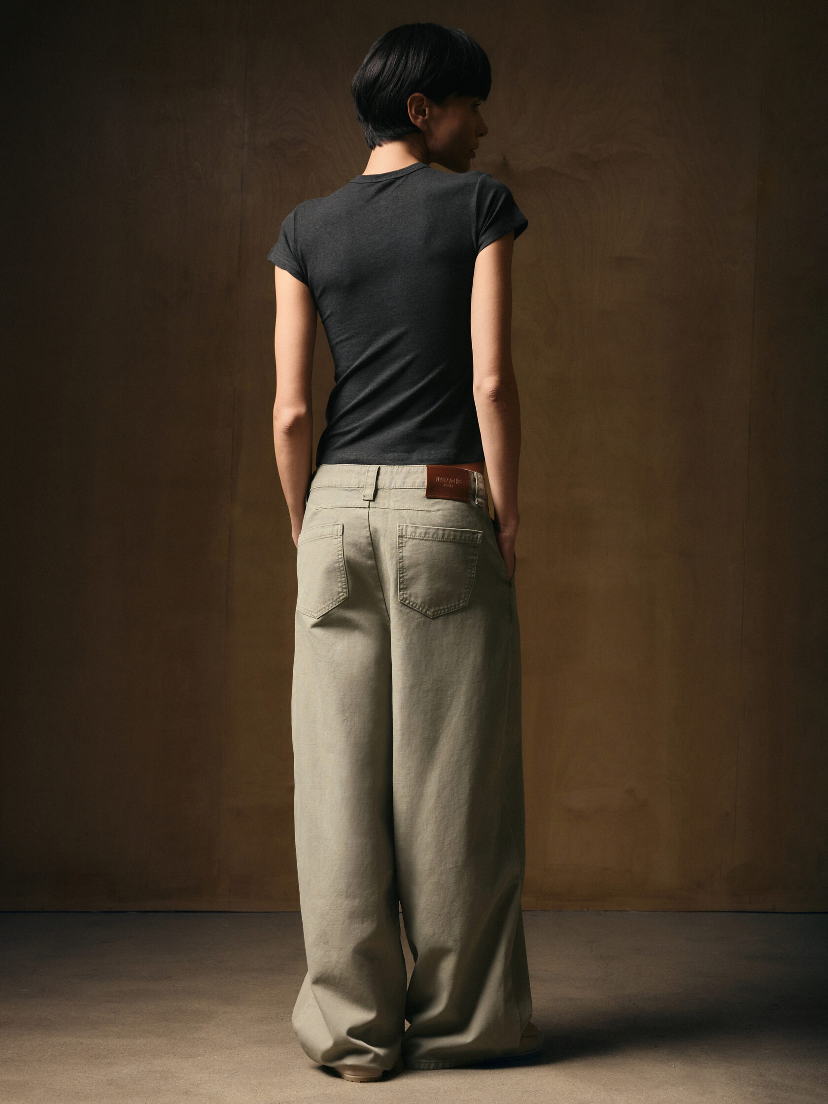 Джинсы плотностью 330 г/м² созданы по технологии окрашивания готового изделия (garment dye), что обеспечило насыщенный однородный цвет. Благодаря отсутствию искусственного состаривания, модель подчеркивает чистоту кроя и качество материала. Специальная финишная обработка придает материалу премиальную тактильность и легкость, а барабанная сушка завершает процесс, оптимизируя воздухопроницаемость для повседневного комфорта.