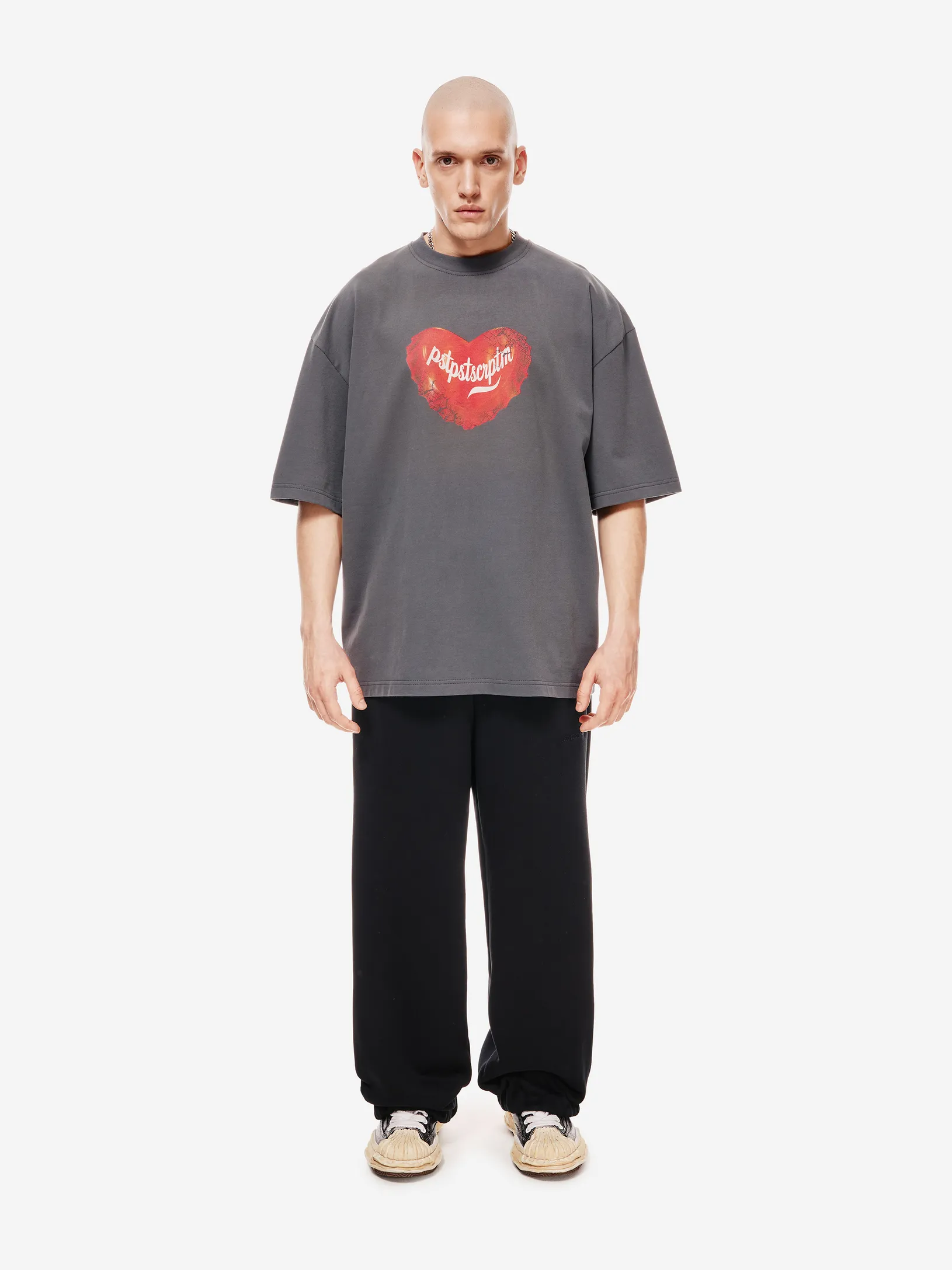 Оверсайз футболка с бархатистым эффектом и принтом. Модель, продолжающая концептуальный код стиля уличной одежды бренда.