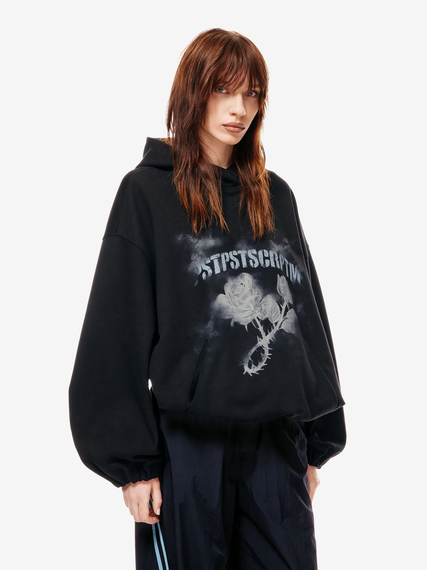 Худи с капюшоном кроя оверсайз с принтом "Цифровая роза" (Digital Rose)
