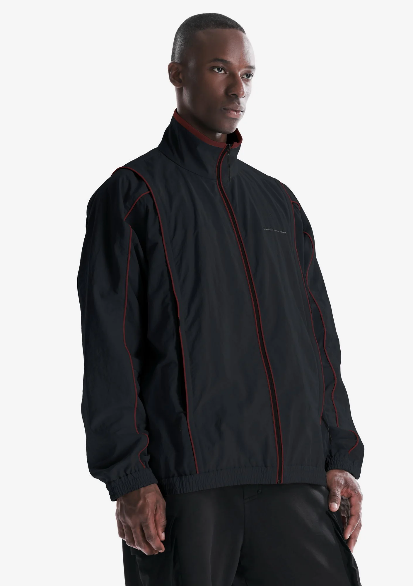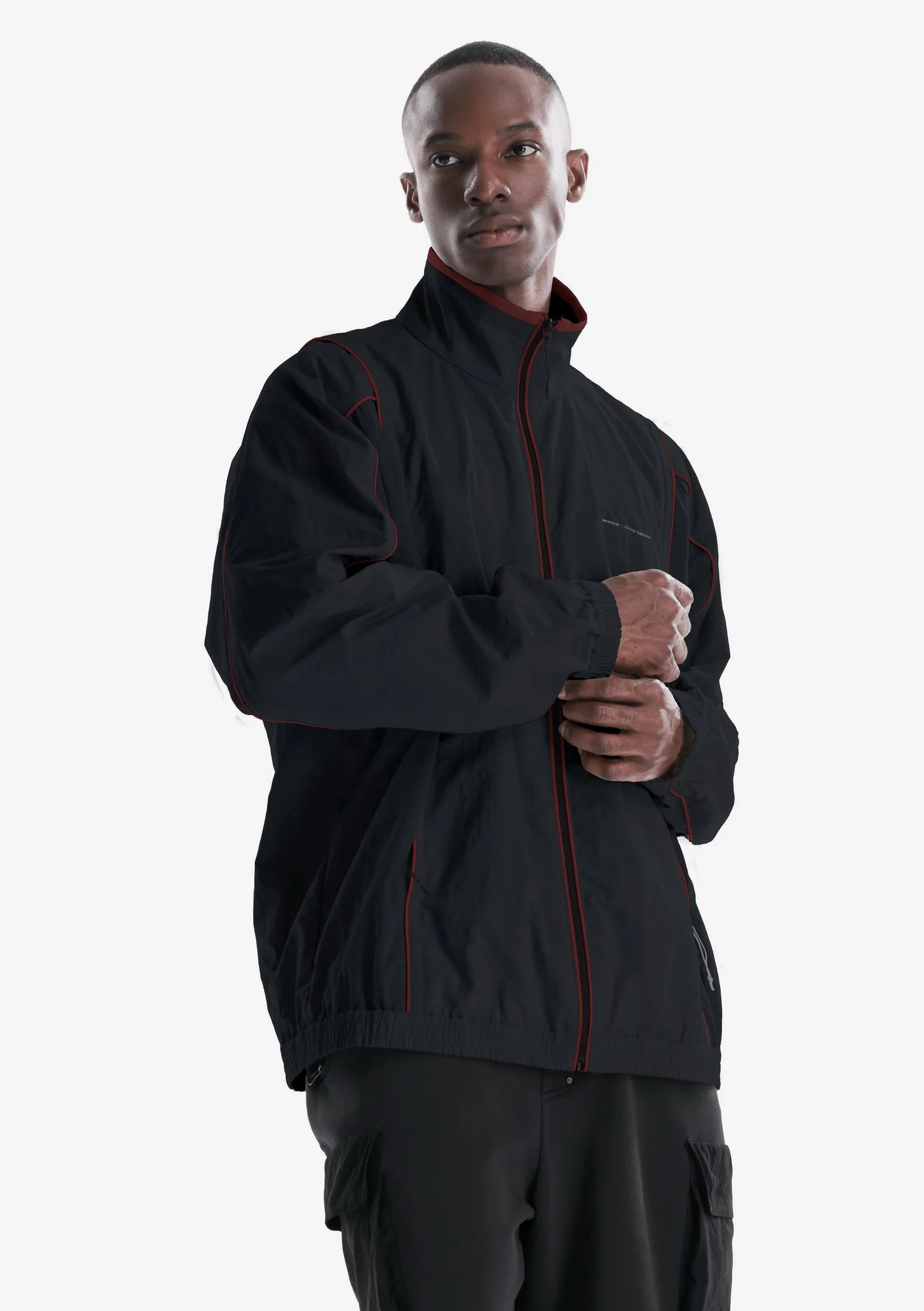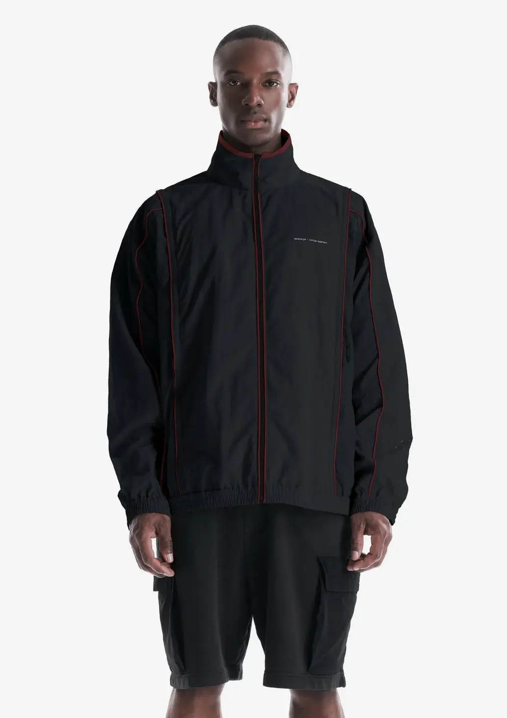 Трековая куртка с воротником-стойкой. Передняя застёжка на молнии и незаметные карманы обеспечивают удобный доступ и практичность, а эластичные манжеты и низ формируют комфортную посадку.