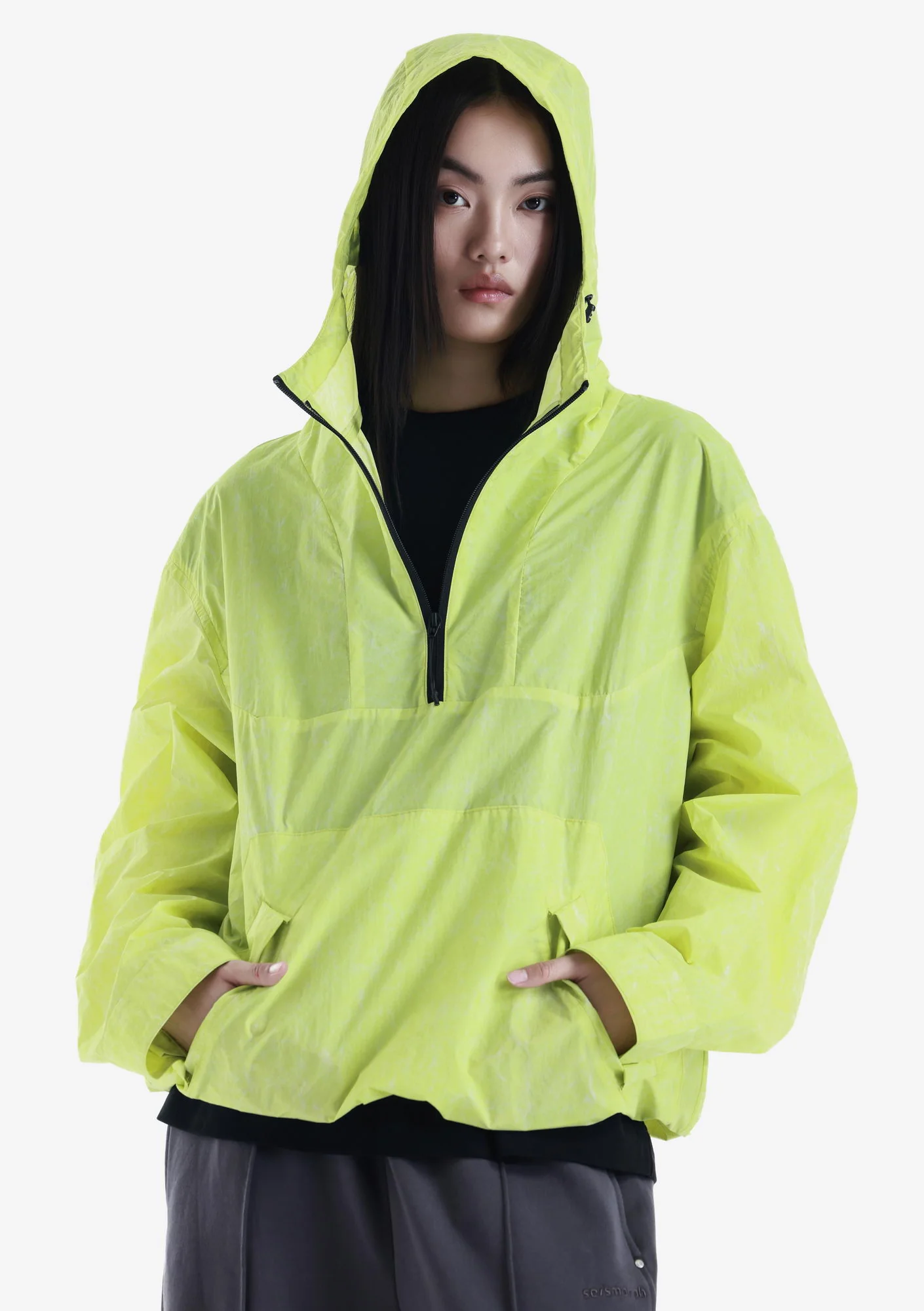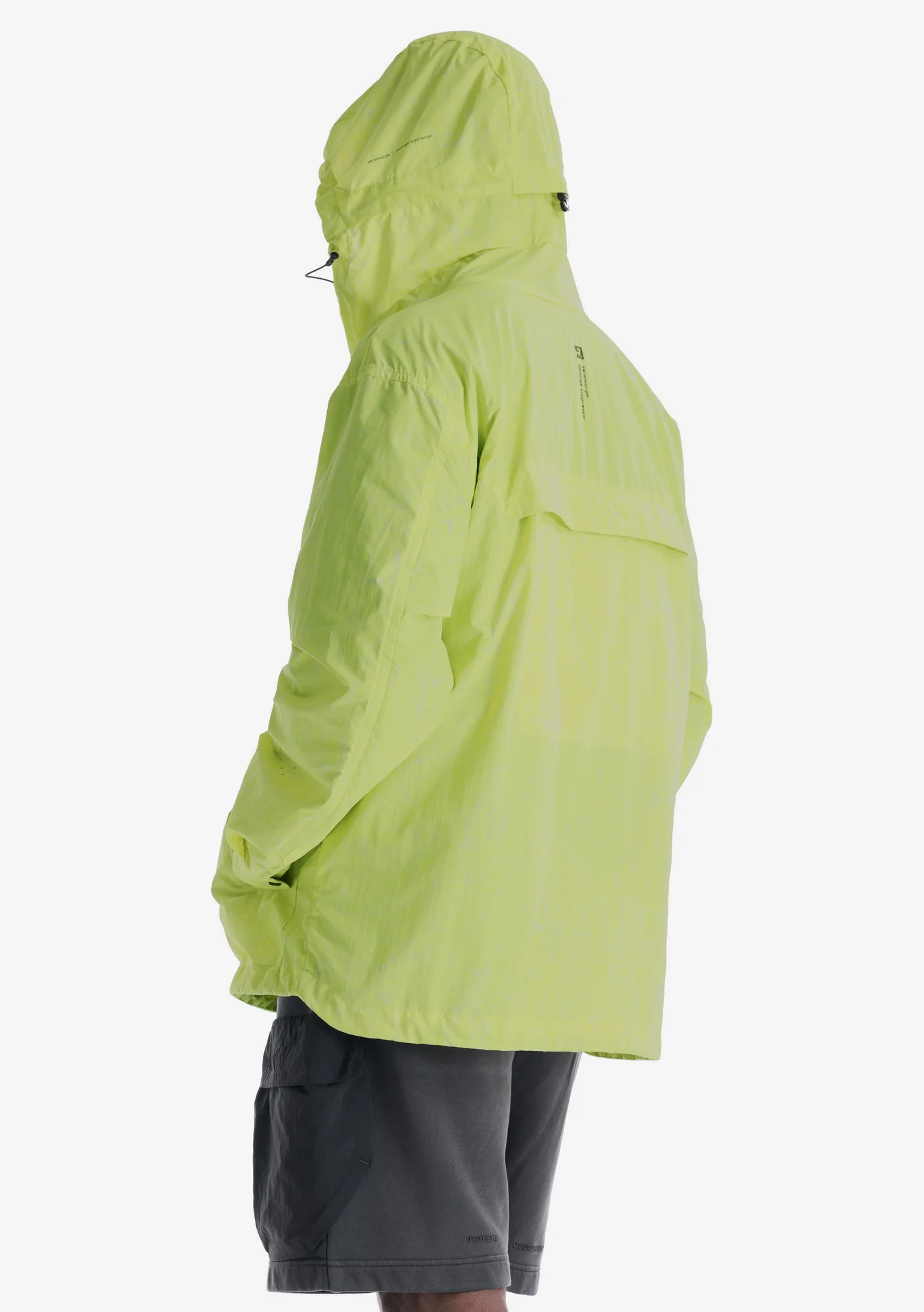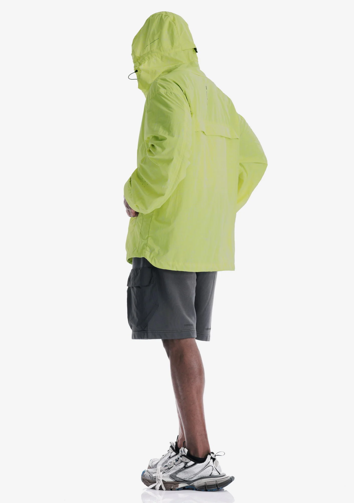 Лёгкий анорак из гладкого нейлона с чистой, однородной структурой и продуманной функциональностью. Регулируемый капюшон, центральная молния и карман карго формируют собранный и практичный силуэт, а возможность компактно упаковать изделие в задний карман с ремешком делает модель удобной для переноски и хранения.