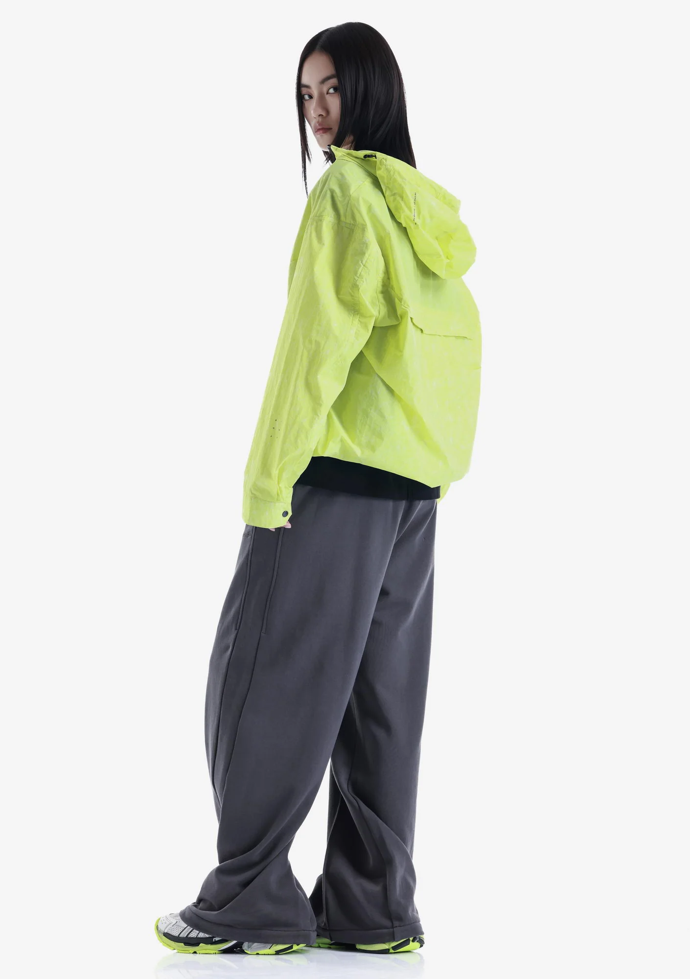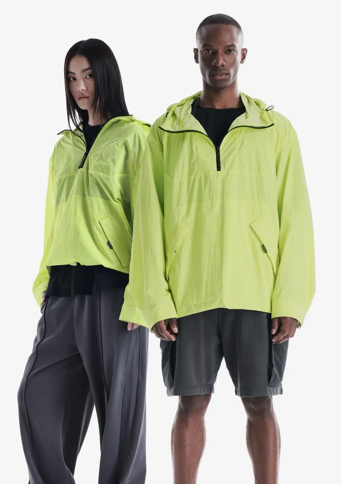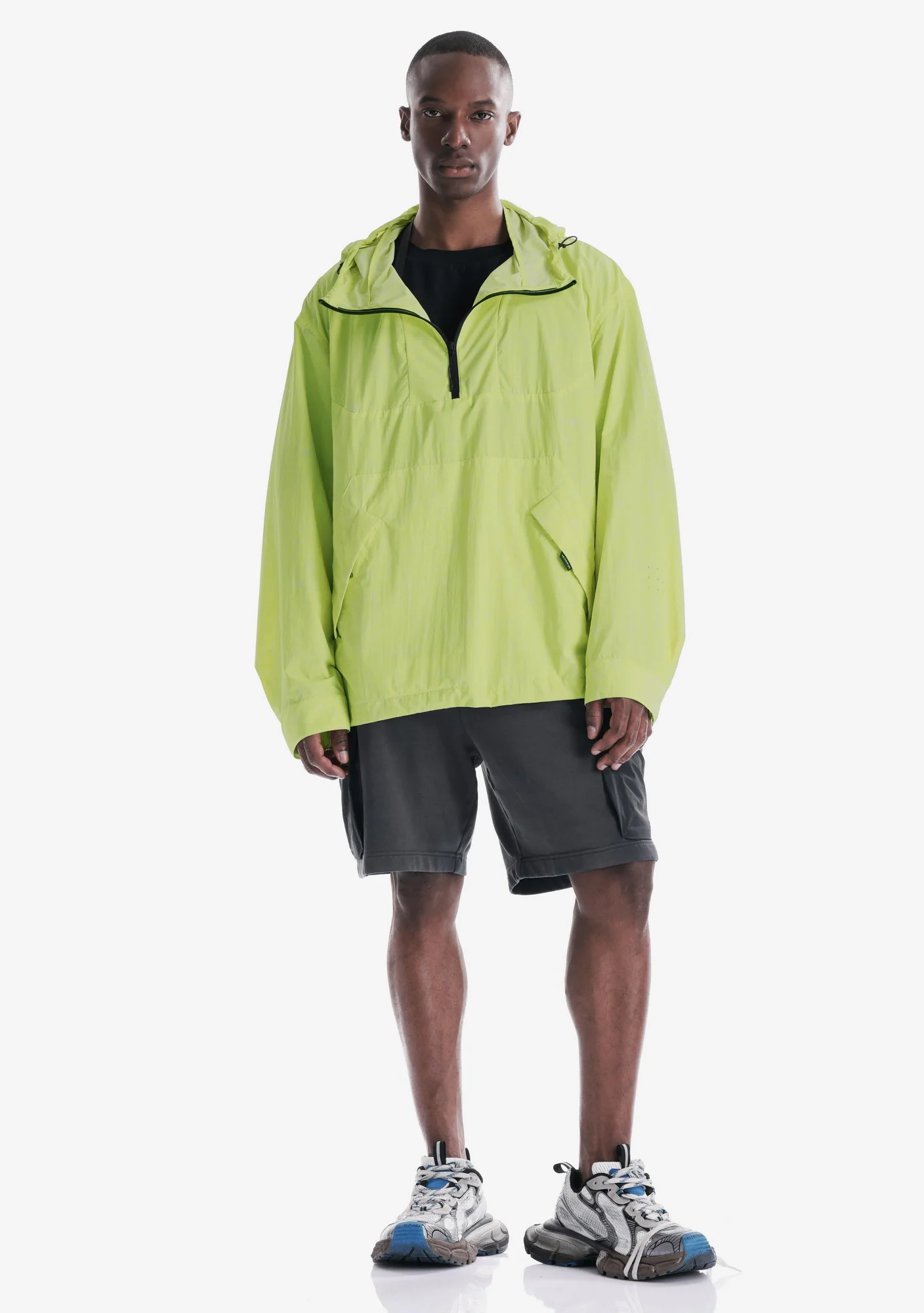 Лёгкий анорак из гладкого нейлона с чистой, однородной структурой и продуманной функциональностью. Регулируемый капюшон, центральная молния и карман карго формируют собранный и практичный силуэт, а возможность компактно упаковать изделие в задний карман с ремешком делает модель удобной для переноски и хранения.
