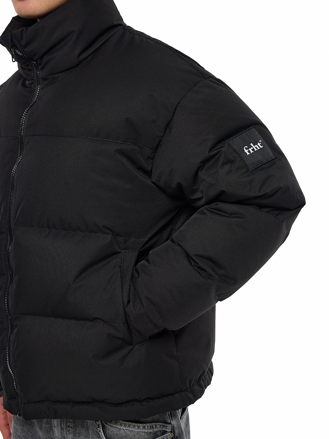 Пуховик FRHT имеет высокотехнологичное мембранное покрытие, обработанное водоотталкивающим эффектом. Мембрана имеет клетчатый рисунок, безопасна при прямом контакте с кожей, имеет диагональное переплетение и приятную матовую фактуру.