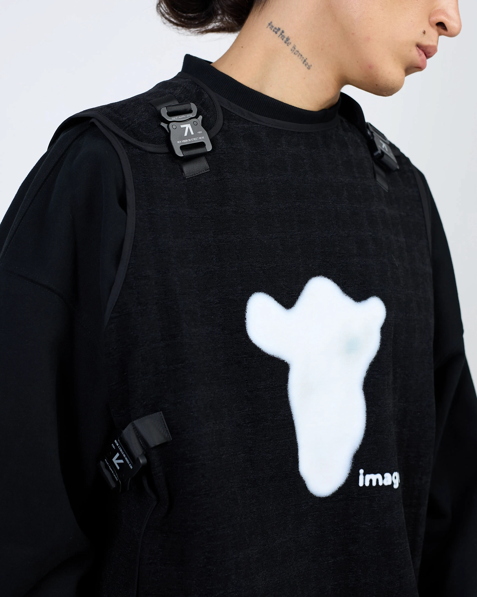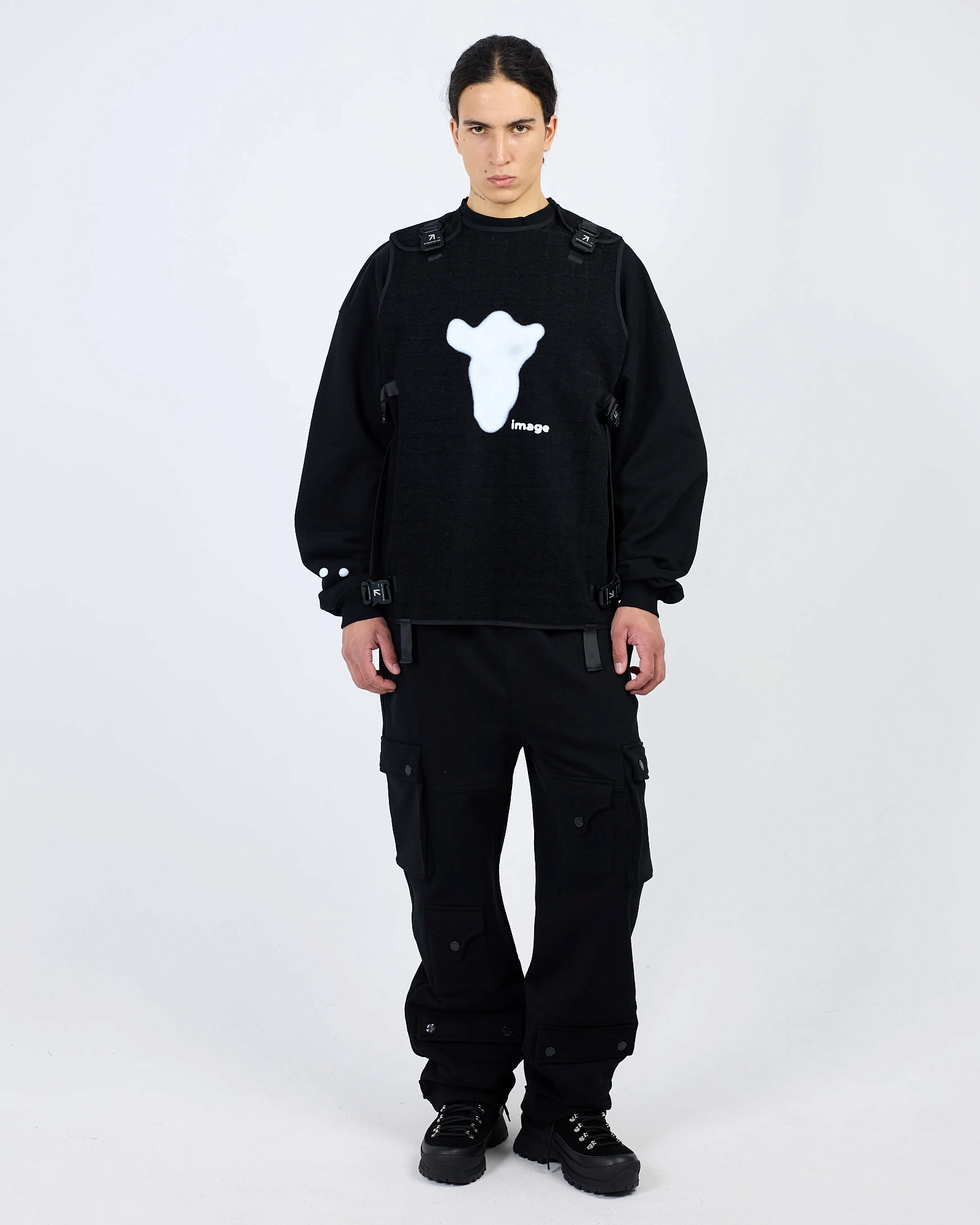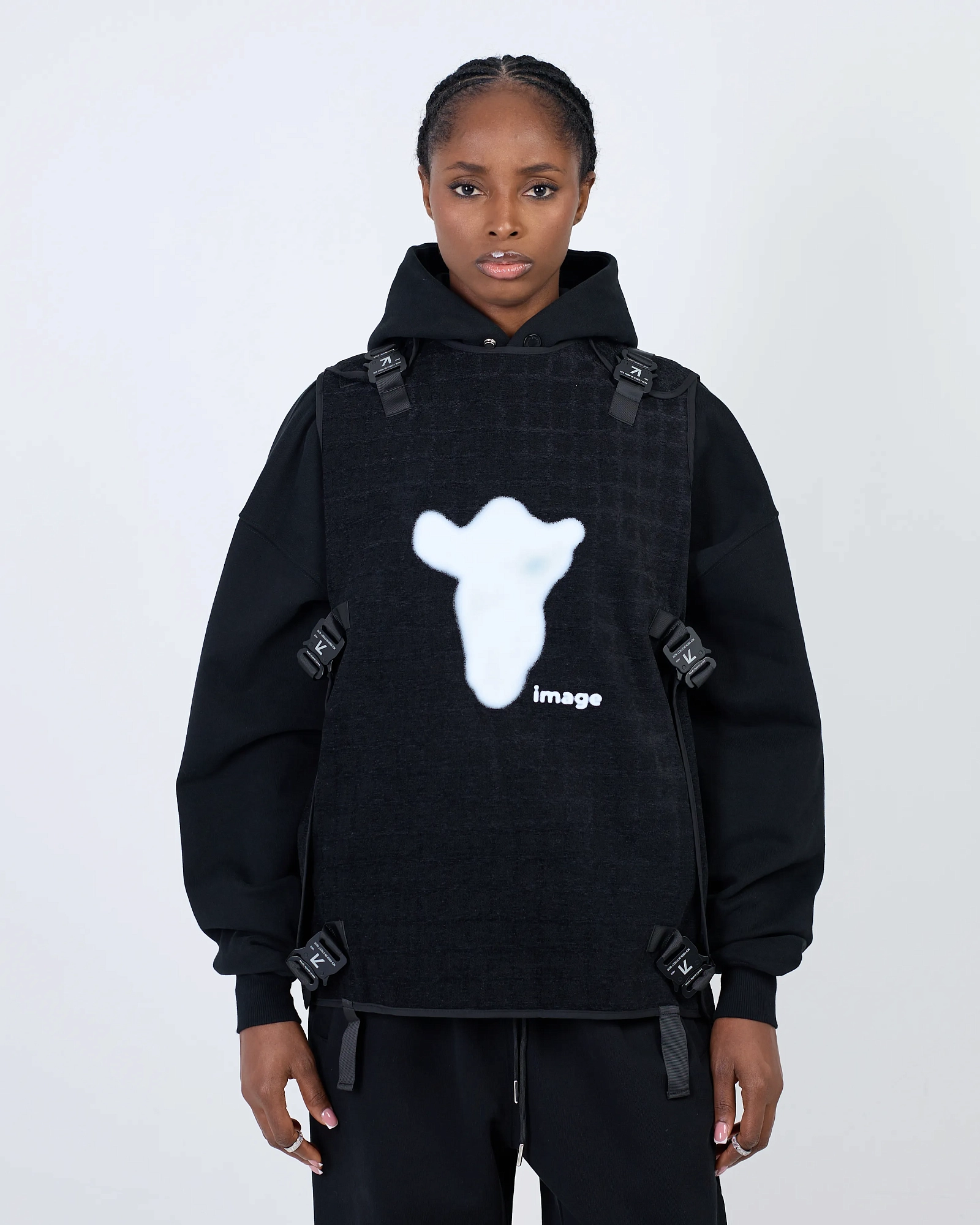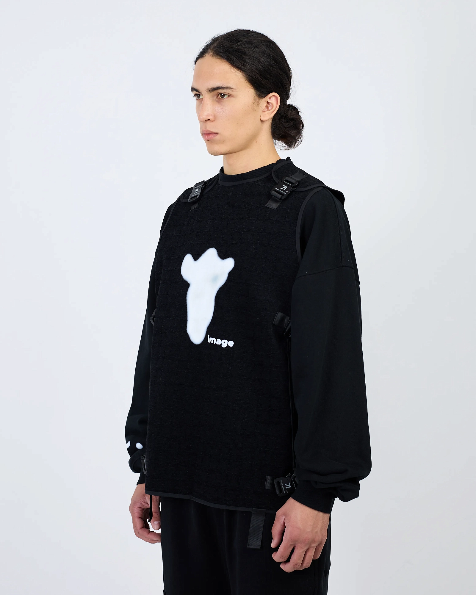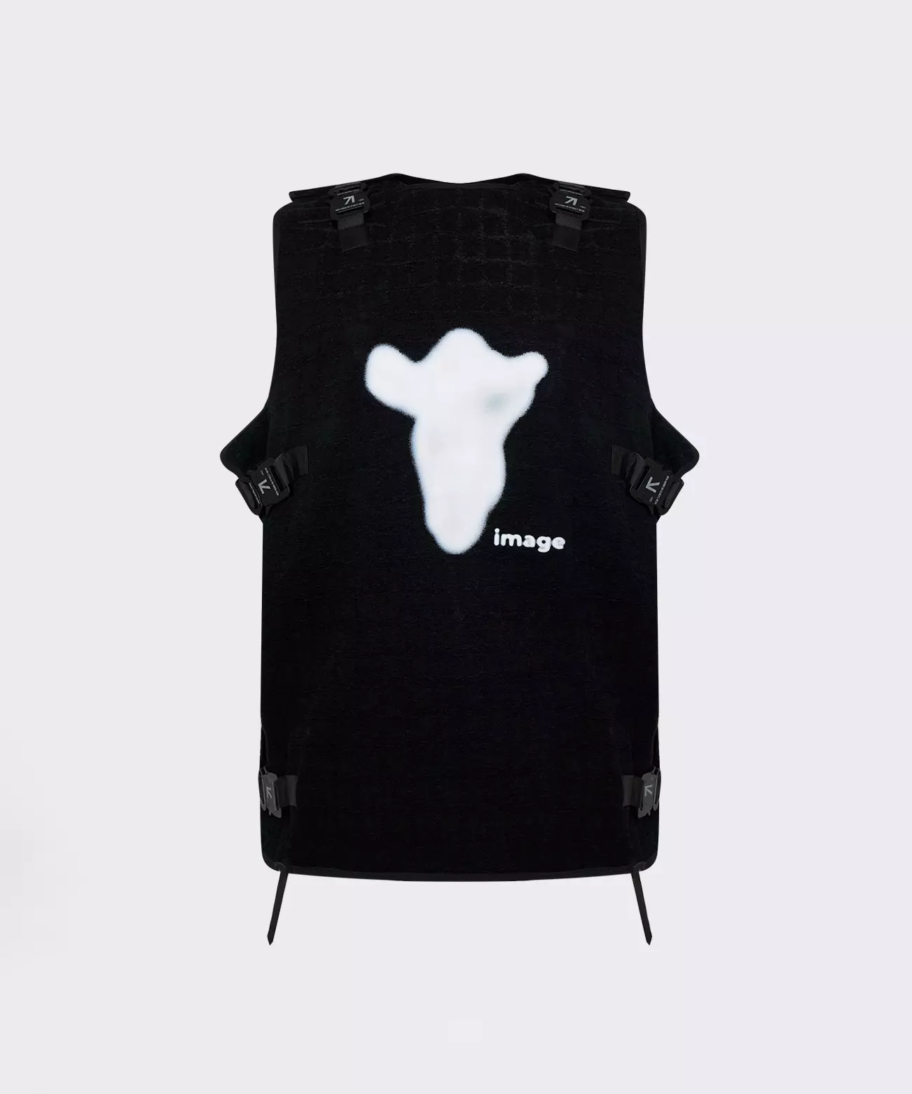 Имиджевая безрукавка свободного кроя выполнены из фактурного вельвета. Принт нанесен лазерной печатью. По бокам брендированный металический фастерс. Мы рекомендуем сочетать безрукавку с базовыми футболками или лонгсливами, дополнив образ акцентными аксессуарами.