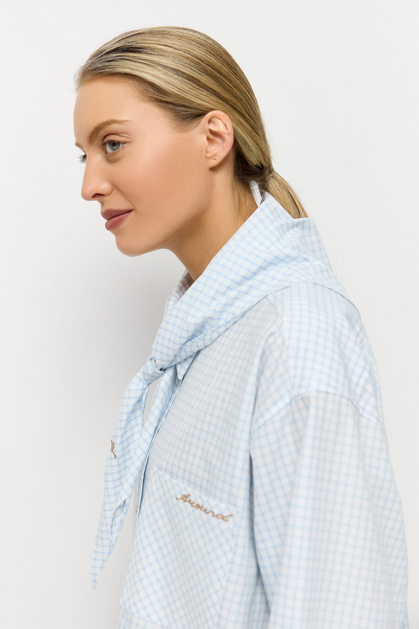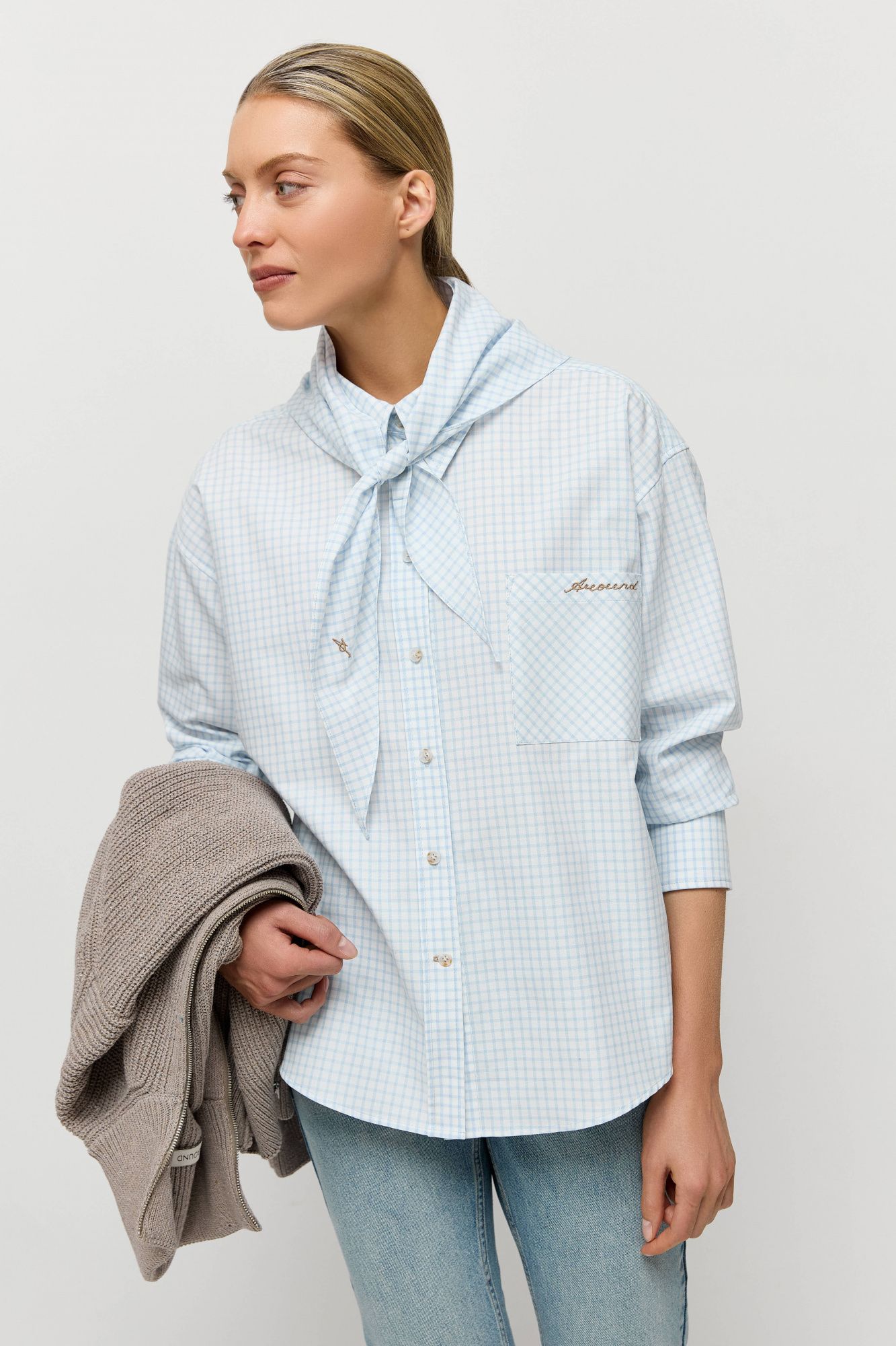 В пару к косынке можно подобрать рубашку из аналогичной ткани.