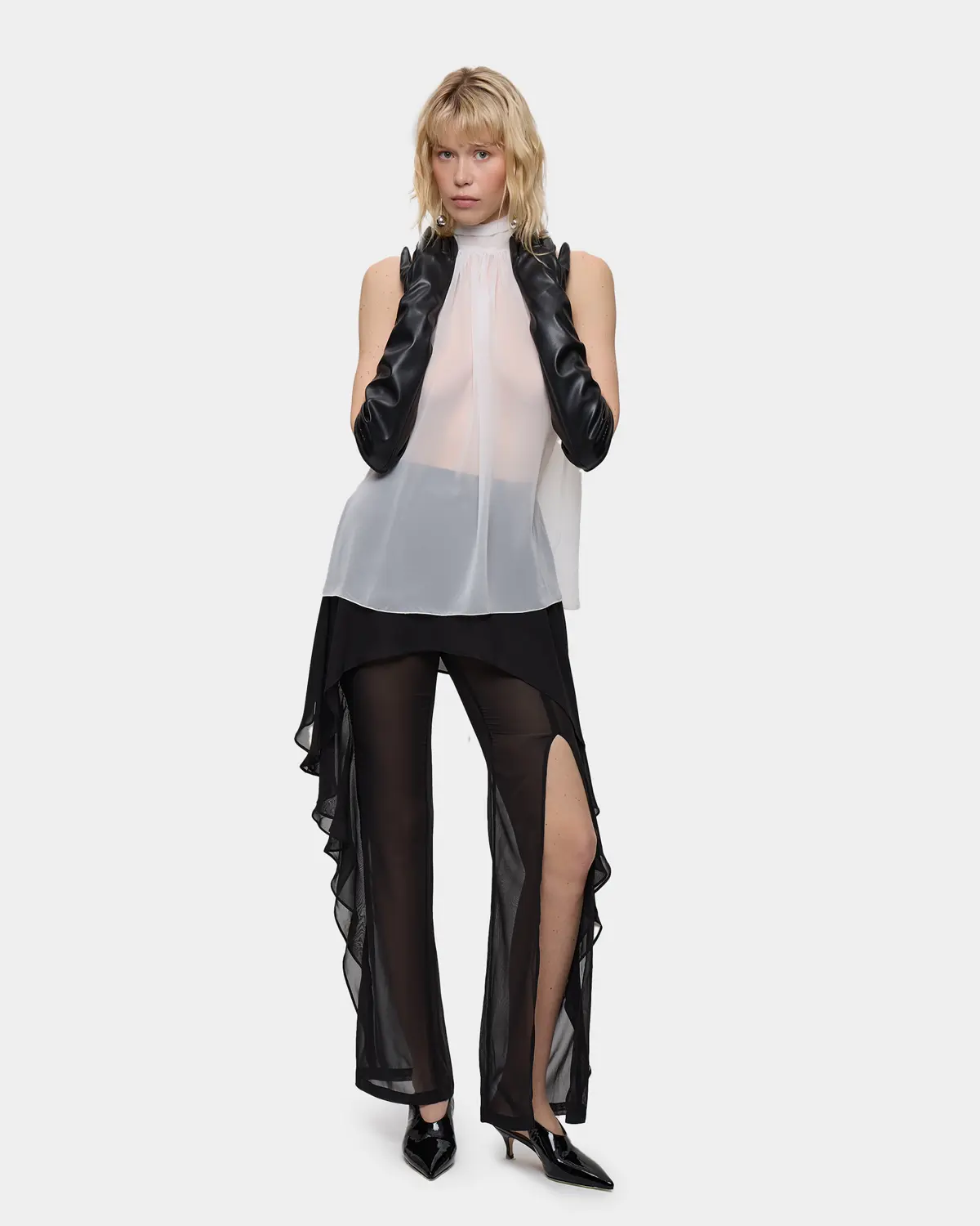 Длинные перчатки из экокожи