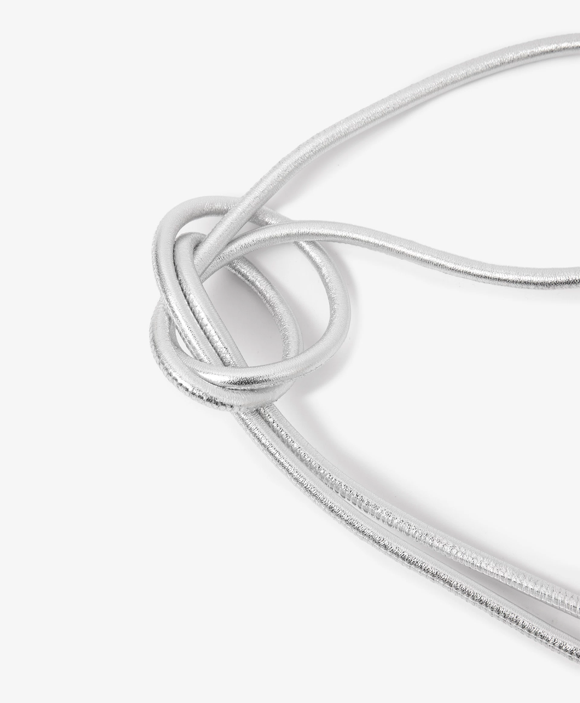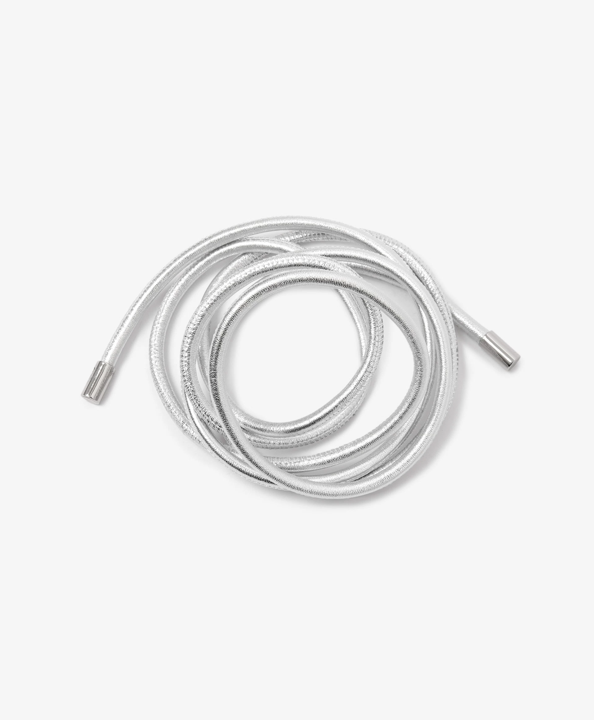 Длинный пояс-шнур, выполненный из натуральной кожи, — вещь многофункциональная! Он может служить элегантным тонким поясом для большинства блузок, жакетов, платьев, а также стать стильным аксессуаром на шею. Его можно завязать на крупный небрежный узел, а также продеть два ниспадающих конца в петлю, образованную путём сложения шнура вдвое, для получения оригинального акцентного украшения. В любом случае, универсальный серебристый цвет сделает шнур востребованным, способным отлично вписаться в концепцию гардероба утро-день-вечер. Пояс завершен металлическими наконечниками в цвете никель.