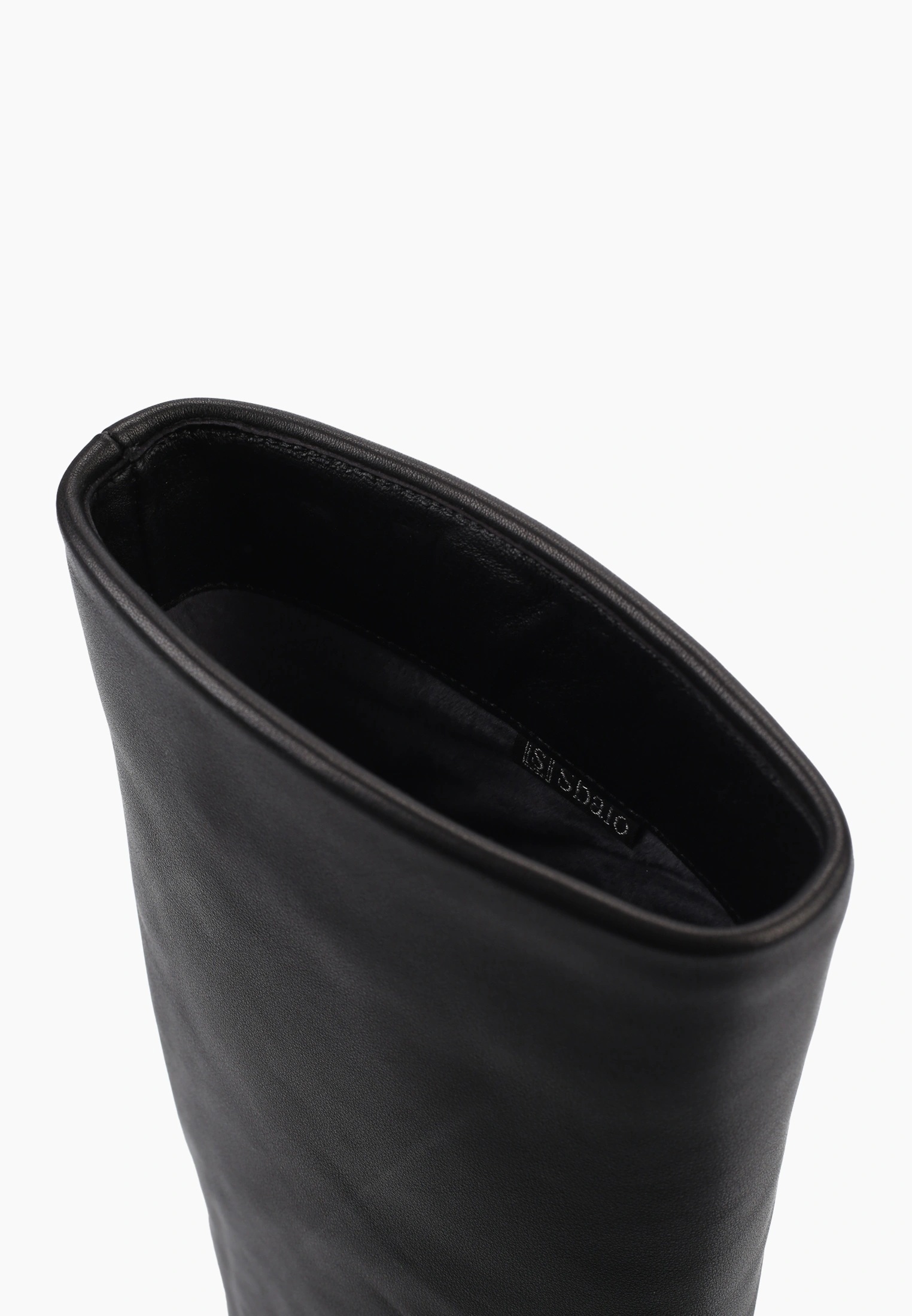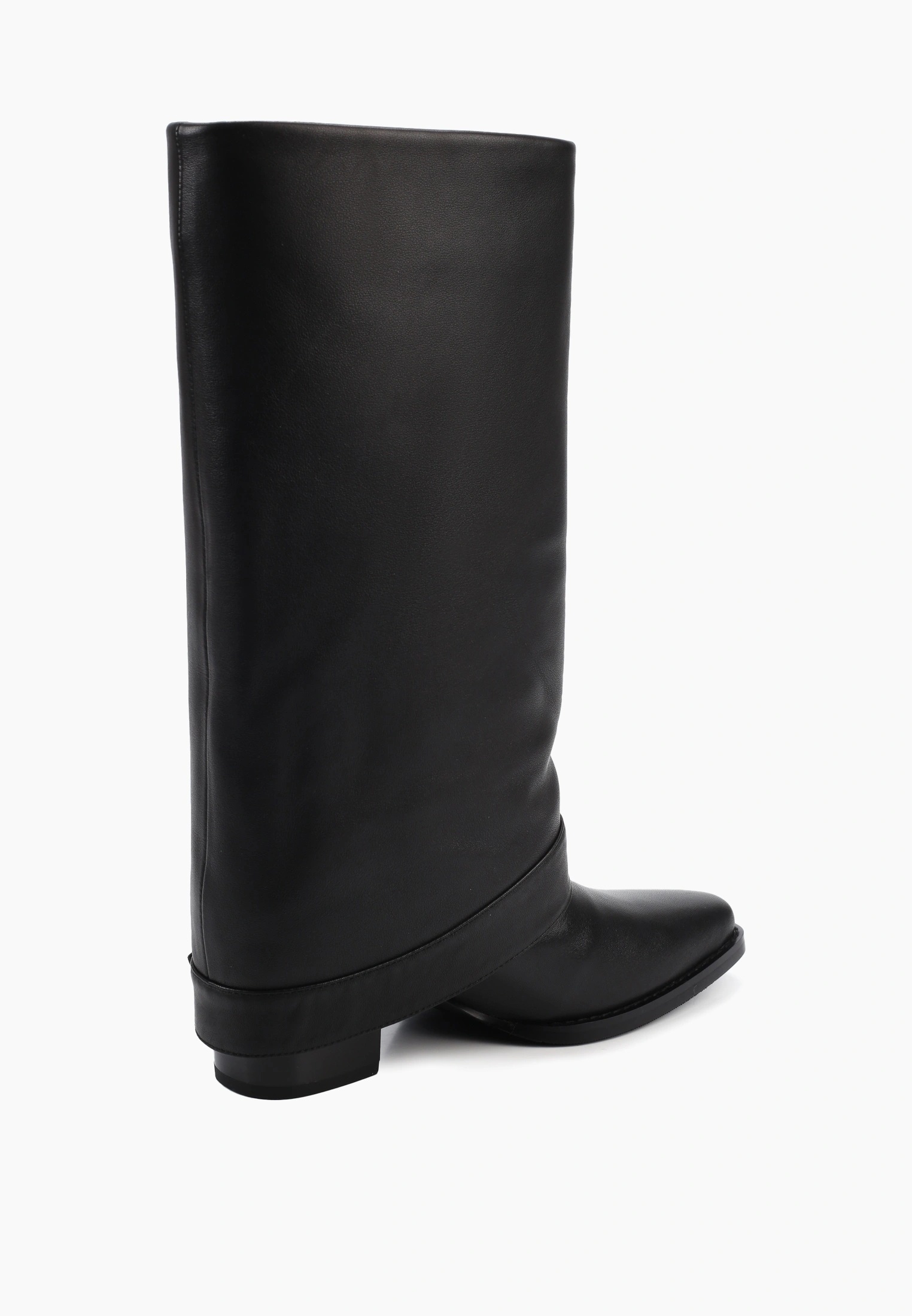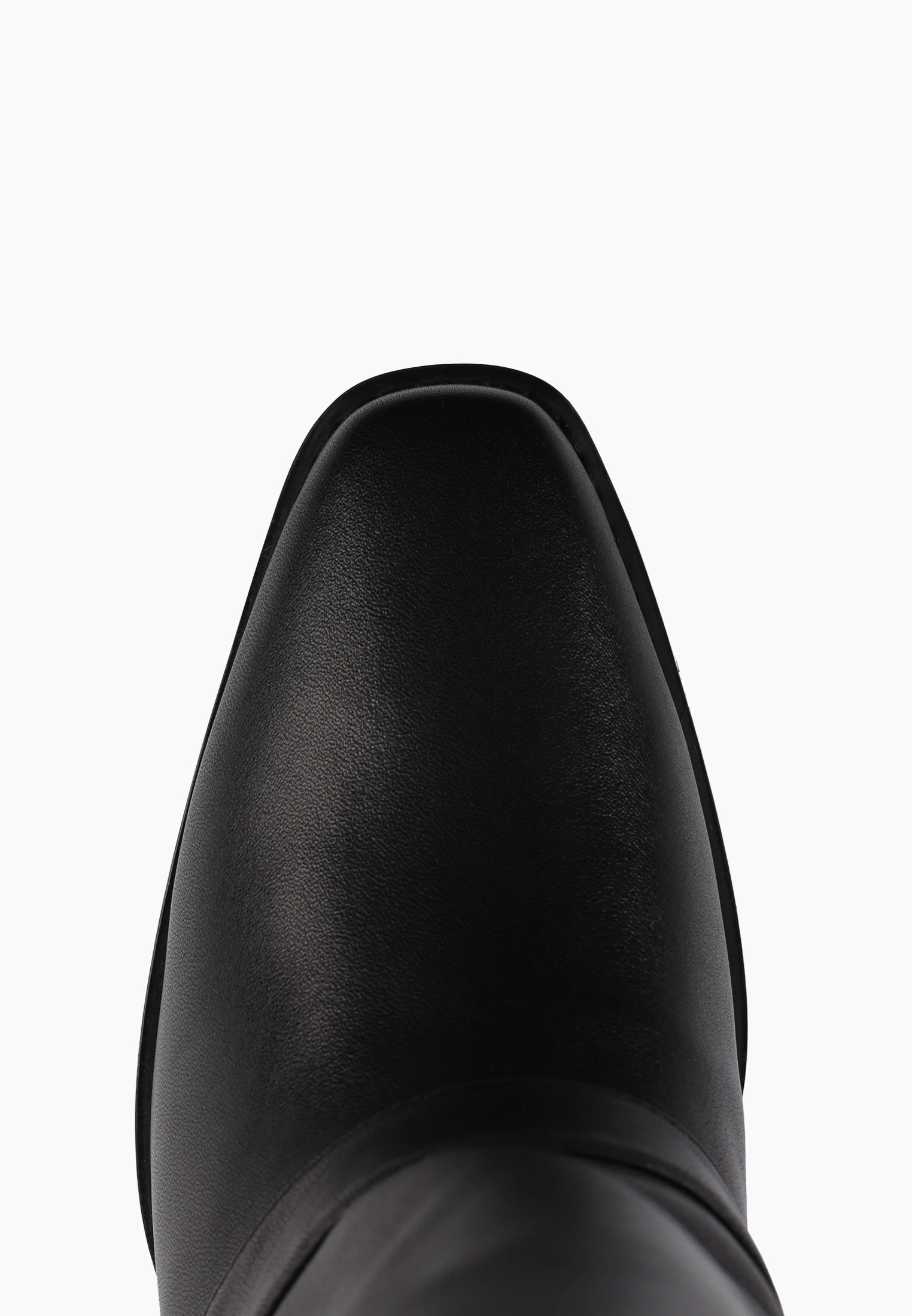 Стильные чёрные сапоги из натуральной кожи — идеальный выбор для создания повседневного образа. Обеспечивают комфорт и долговечность благодаря качественному материалу.