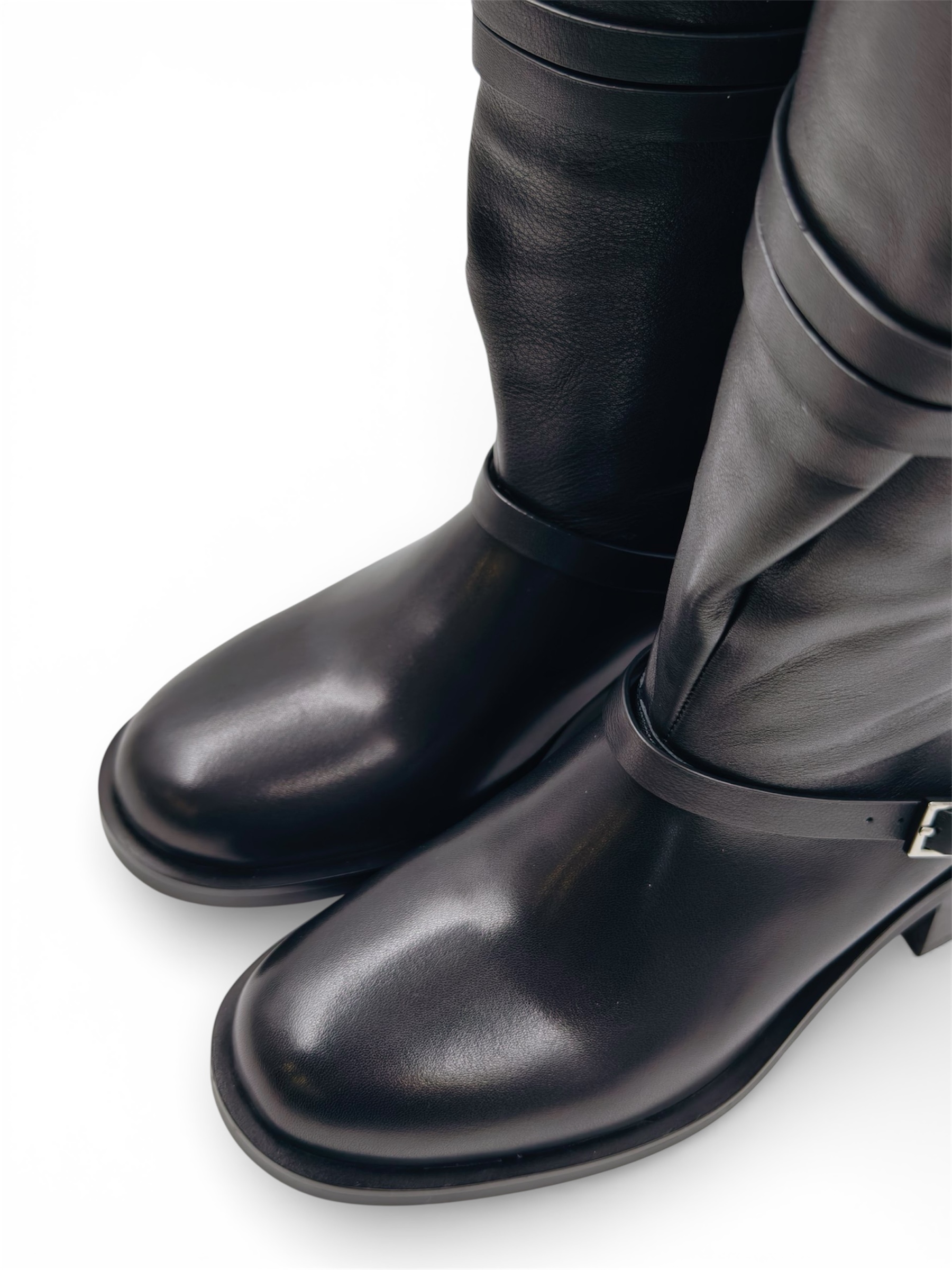 Стильная и удобная обувь, которая станет отличным дополнением к вашему гардеробу. Натуральная кожа обеспечивает долговечность и комфорт при носке, а также позволяет сапогам «дышать». Чёрный цвет универсален и легко сочетается с различными элементами гардероба.