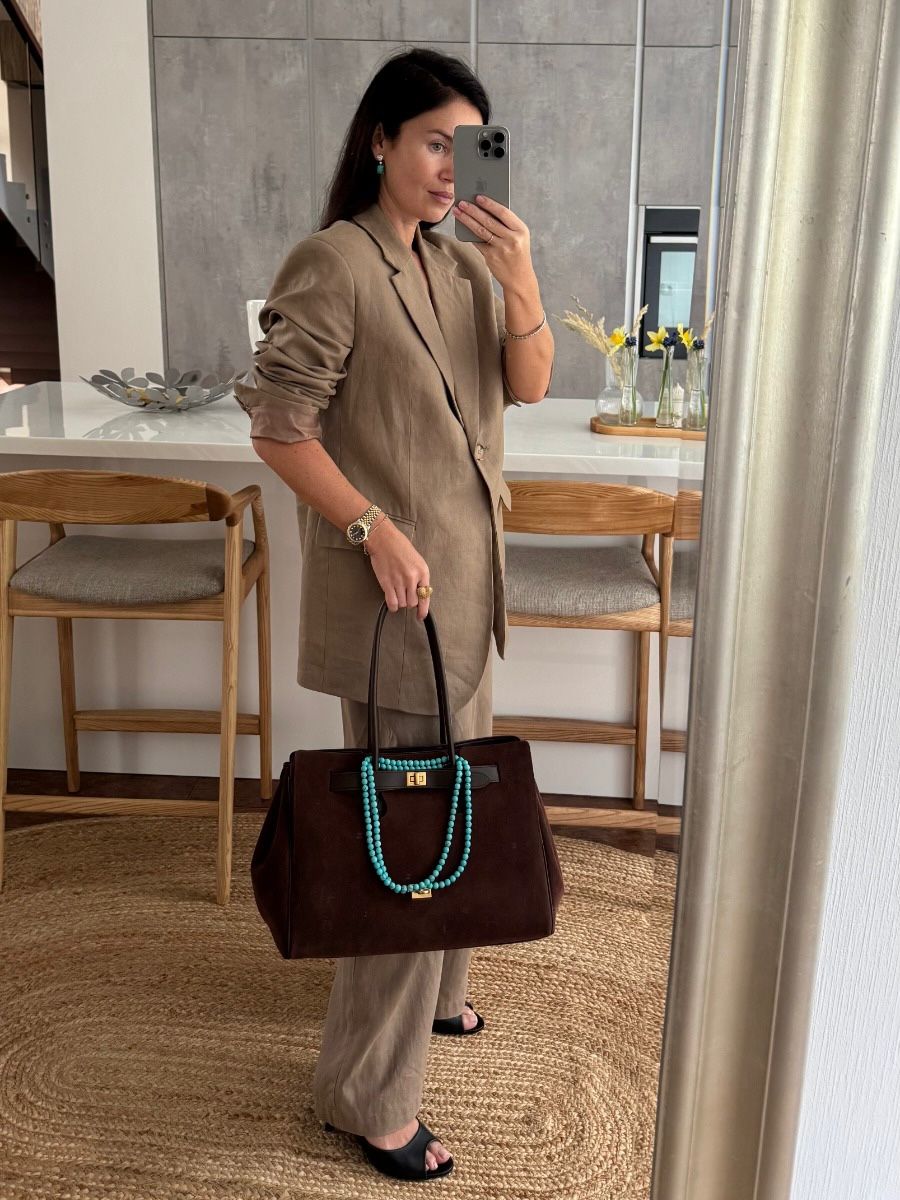 Вместительная сумка на каждый день. Внутри одно отделение,сбоку карман на молнии. Поместятся документы формата А4. Сумочка носится на плече, на сгибе руки или в руке.
