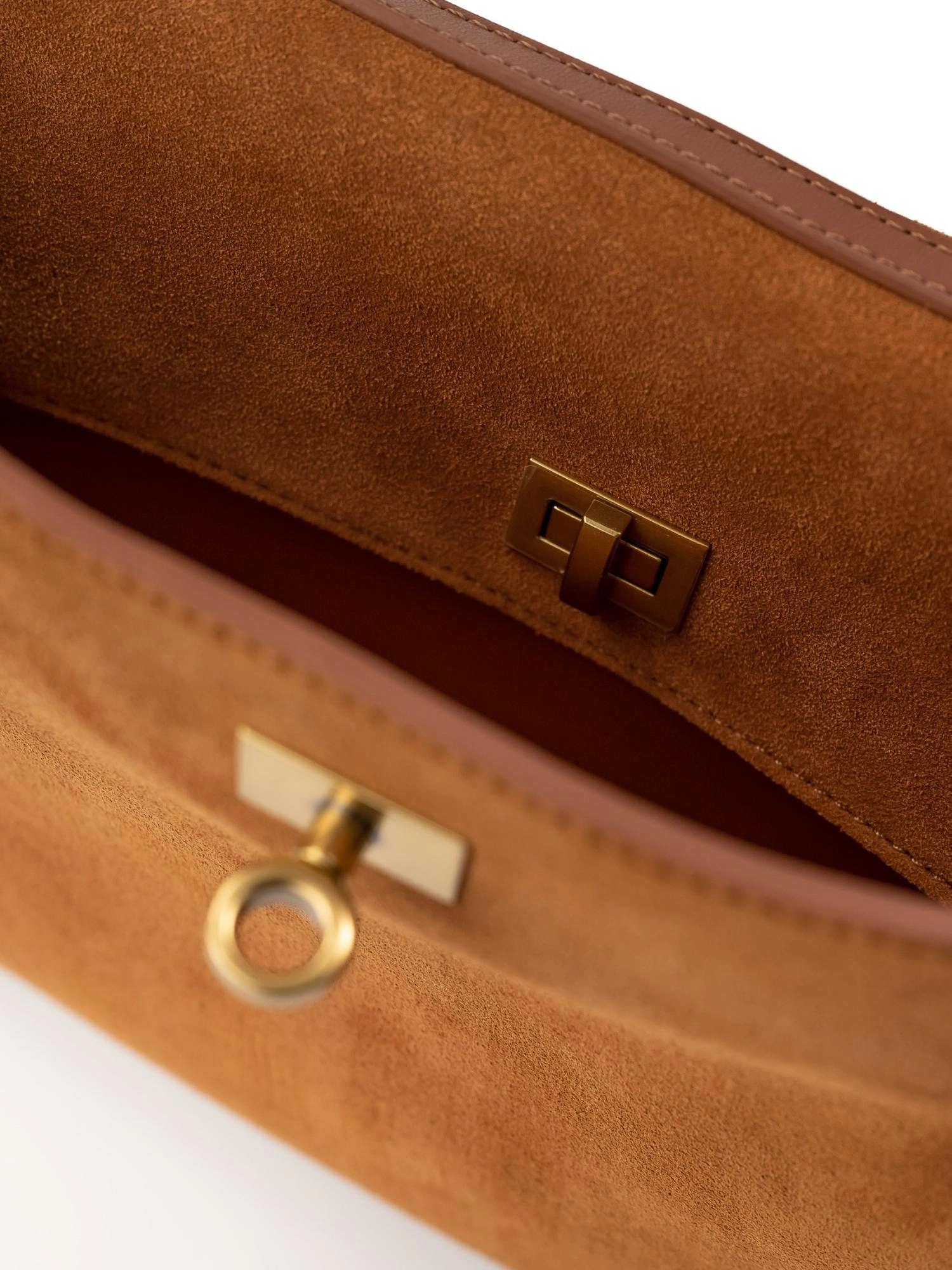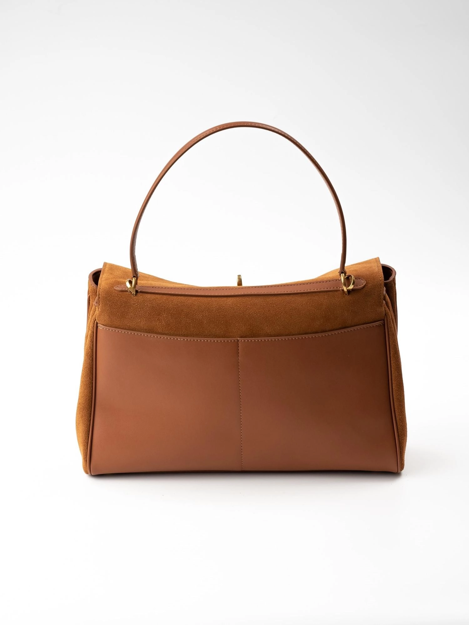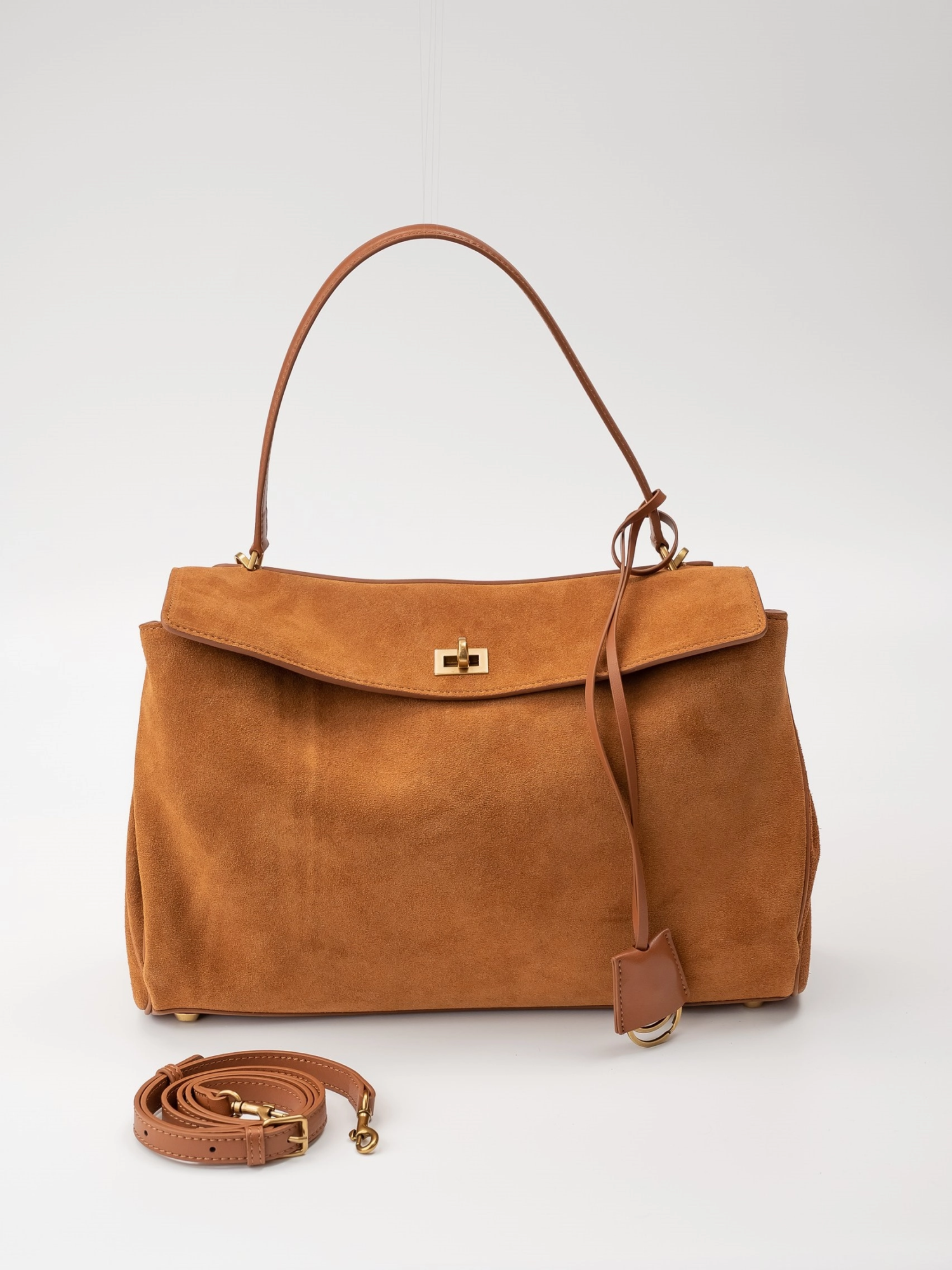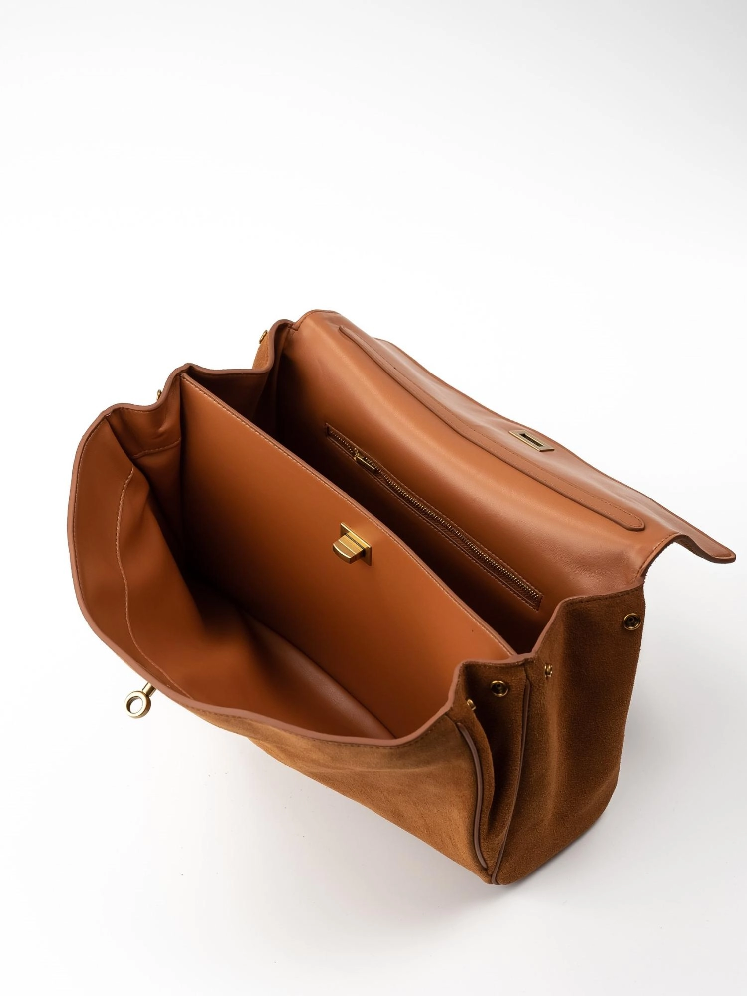 Сумка выполнена из натуральной кожи, закрывается перекидным клапаном на фурнитуру. Внутри два отделения, сбоку отделение на молнии. Поместятся документы формата А4. Снаружи сзади два кармана. Сумочка носится на плече, на сгибе руки или в руке. Прилагается длинный ремешок на плечо, длина 116 см (регулируется).