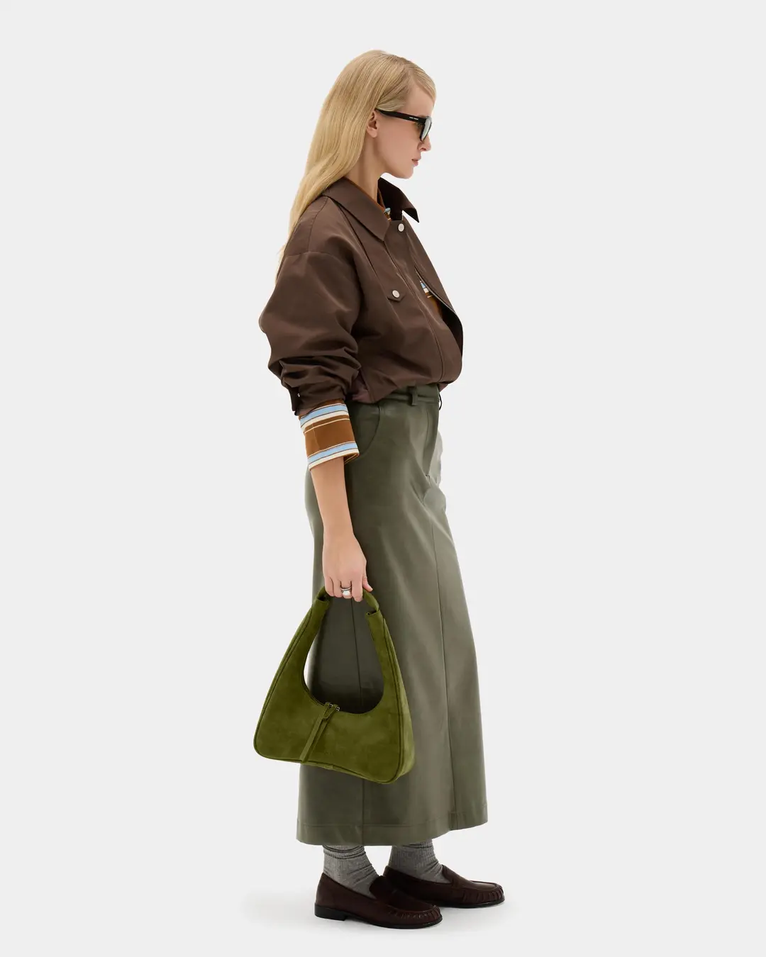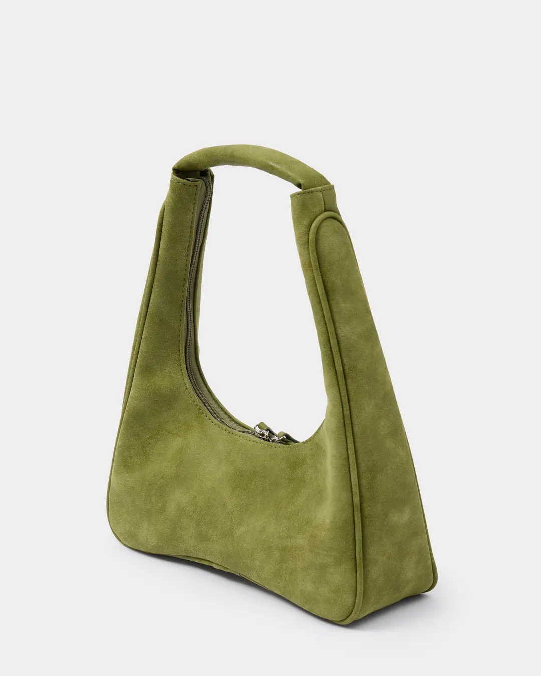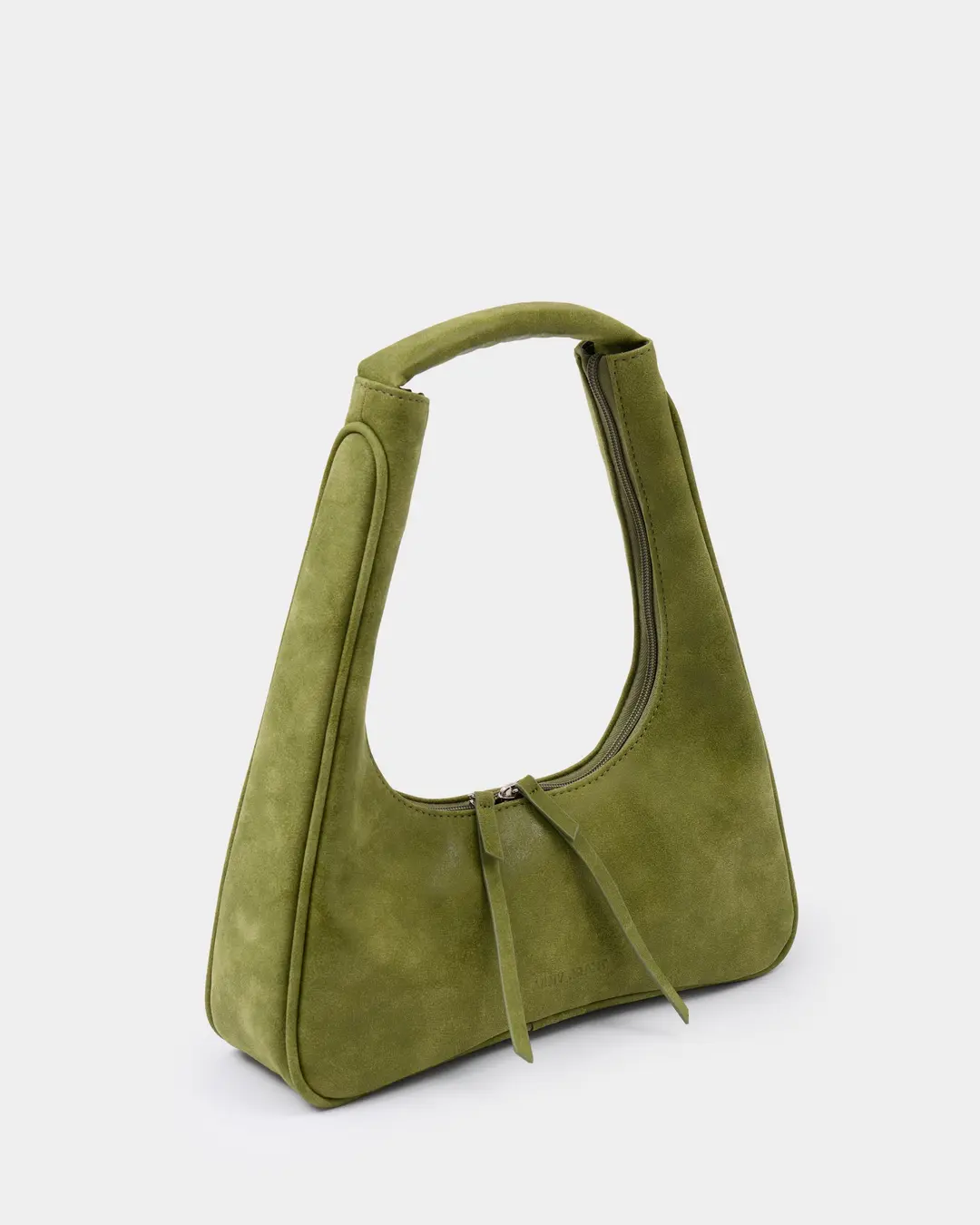 Миниатюрная сумка с фигурным дном из замшевой экокожи