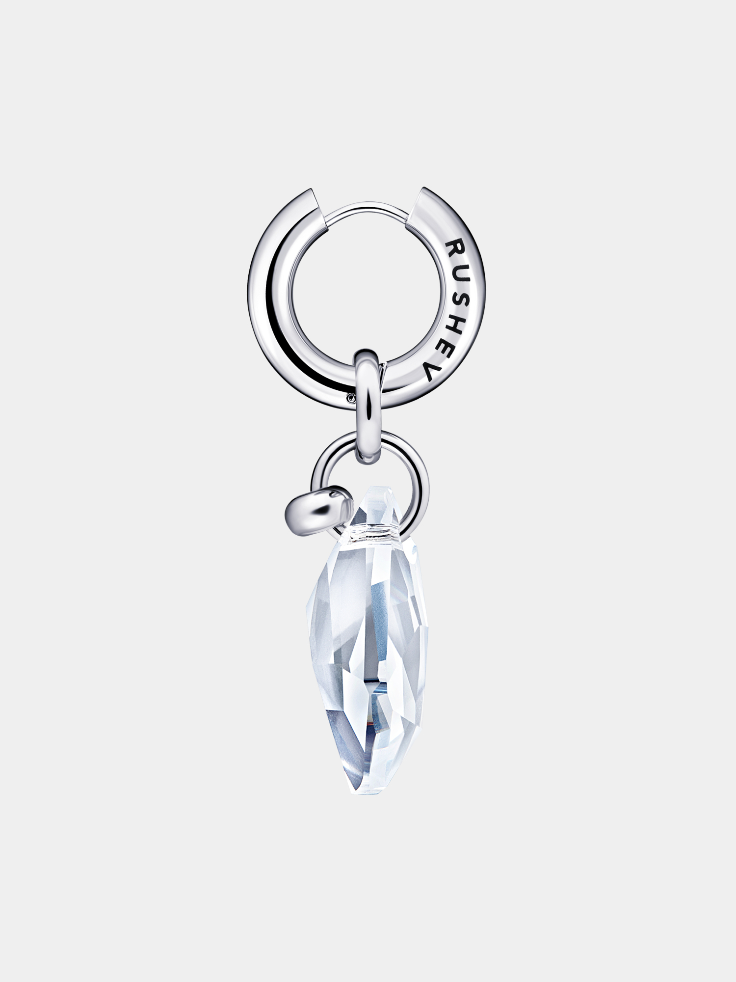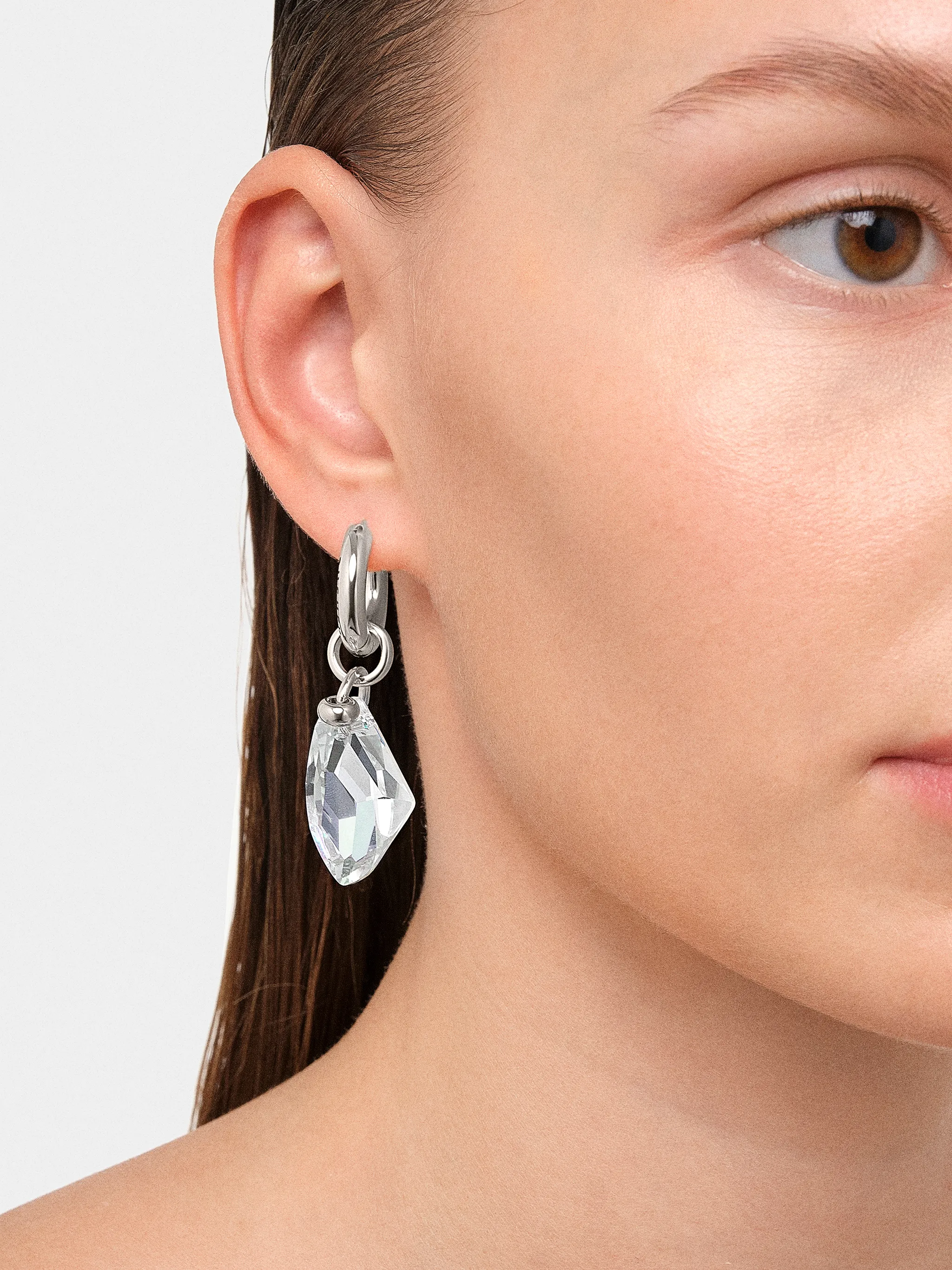 Моносерьга-кольцо с подвеской в виде многогранного сияющего кристалла Swarovski.
