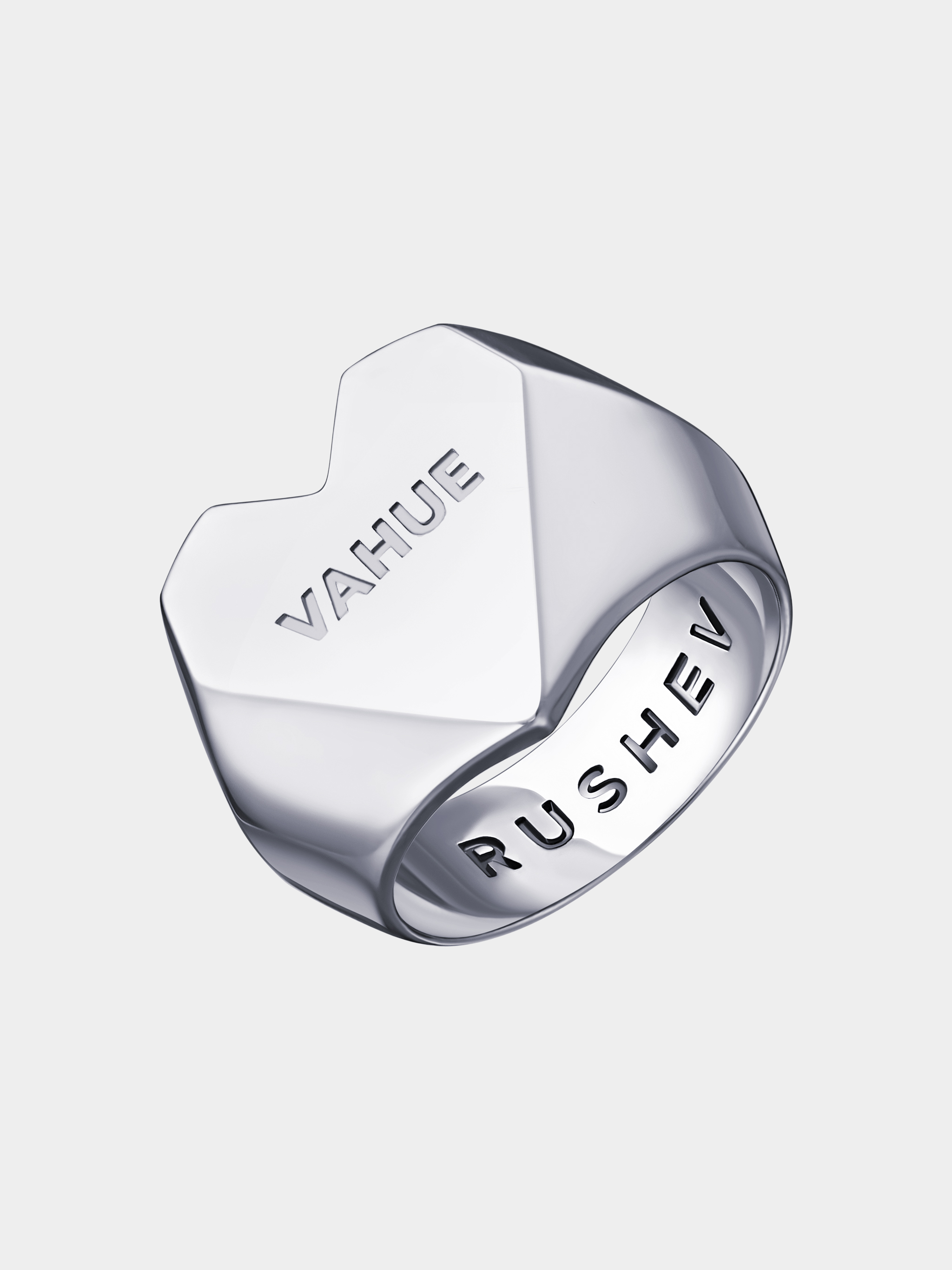 Кольцо-печатка, вылитое в форме многогранного сердца, поможет смело заявить о себе и вашем отношении к происходящему вокруг. Во внутренней части изделия – брендовая гравировка.