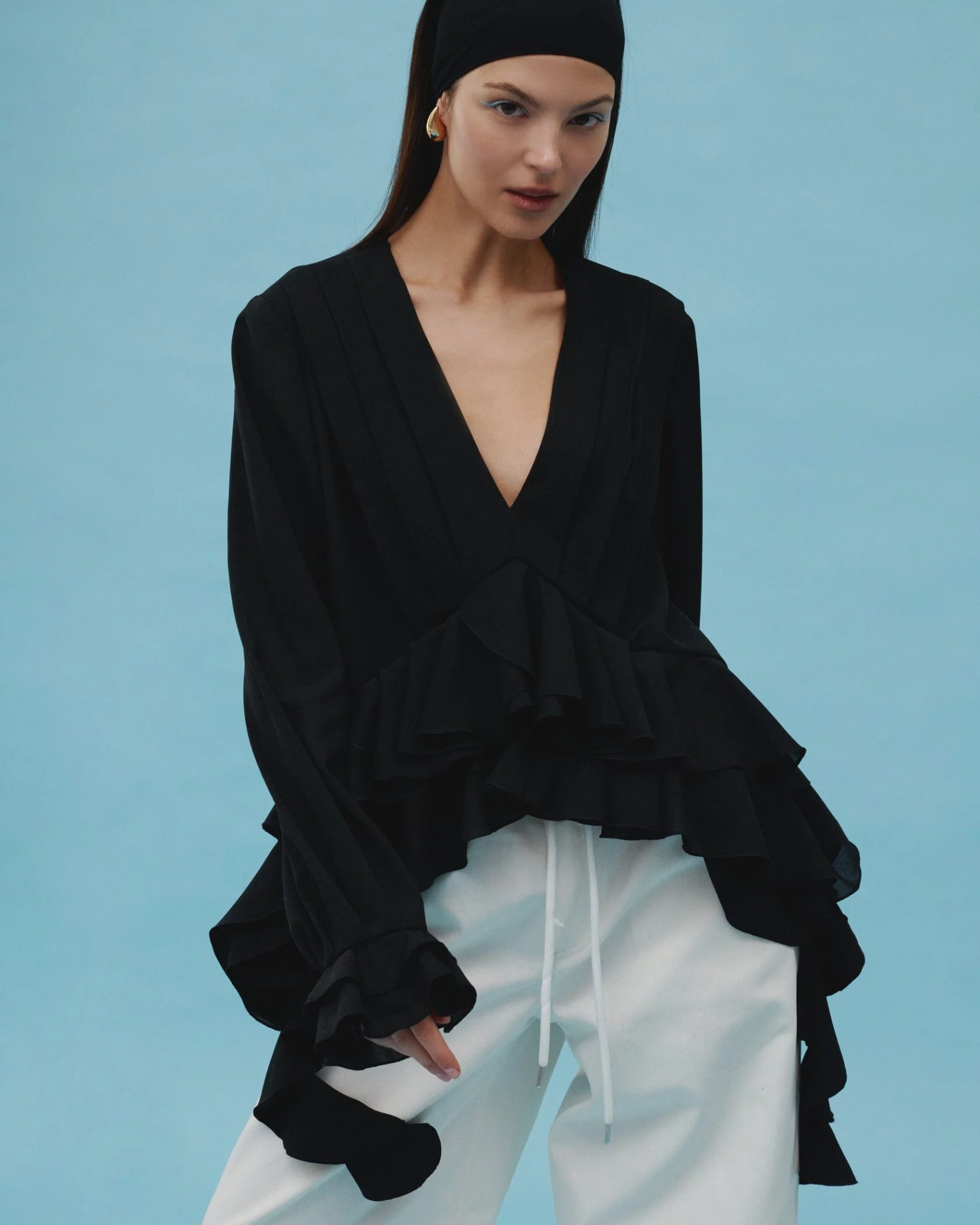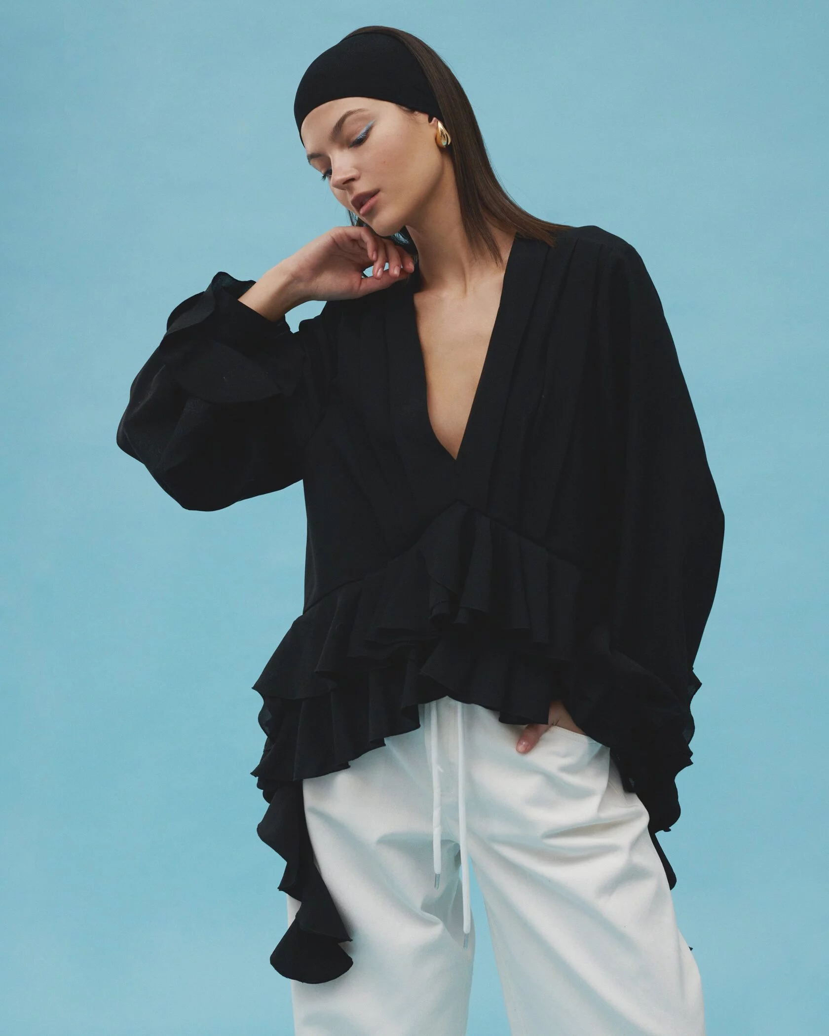 Блуза с воланами BLACK.