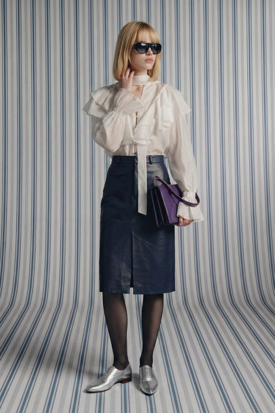 «На выход сочетайте блузу с широкими черными брюками и глянцевыми ботильонами с острым мысом».