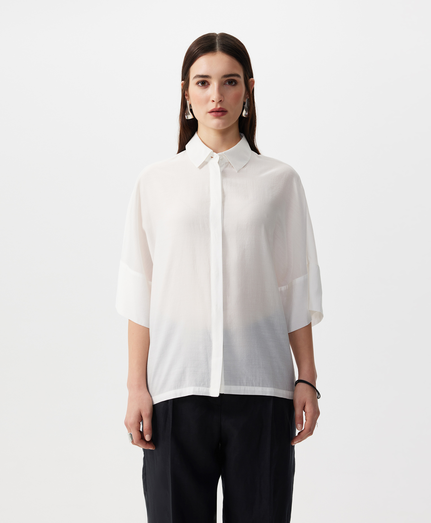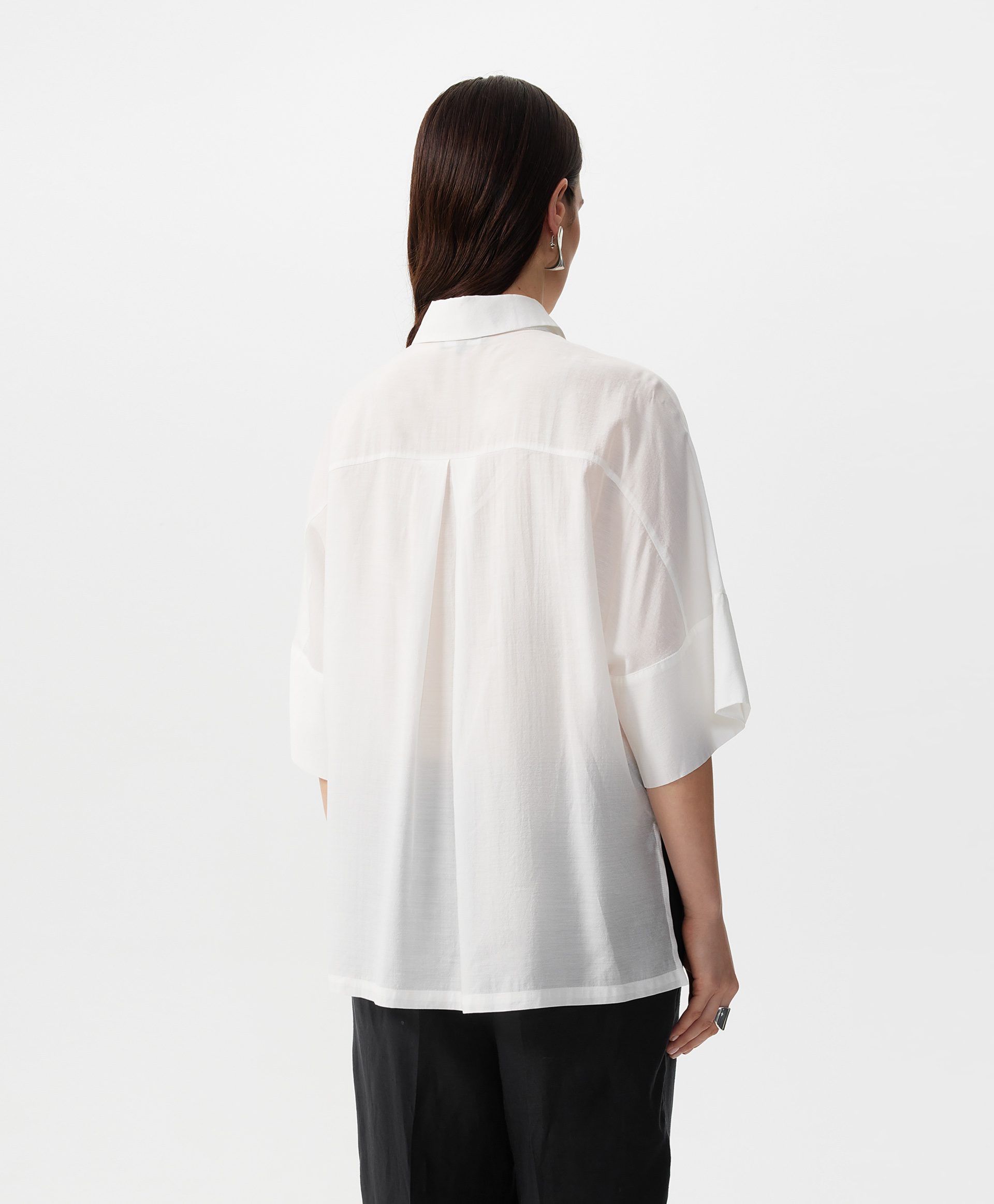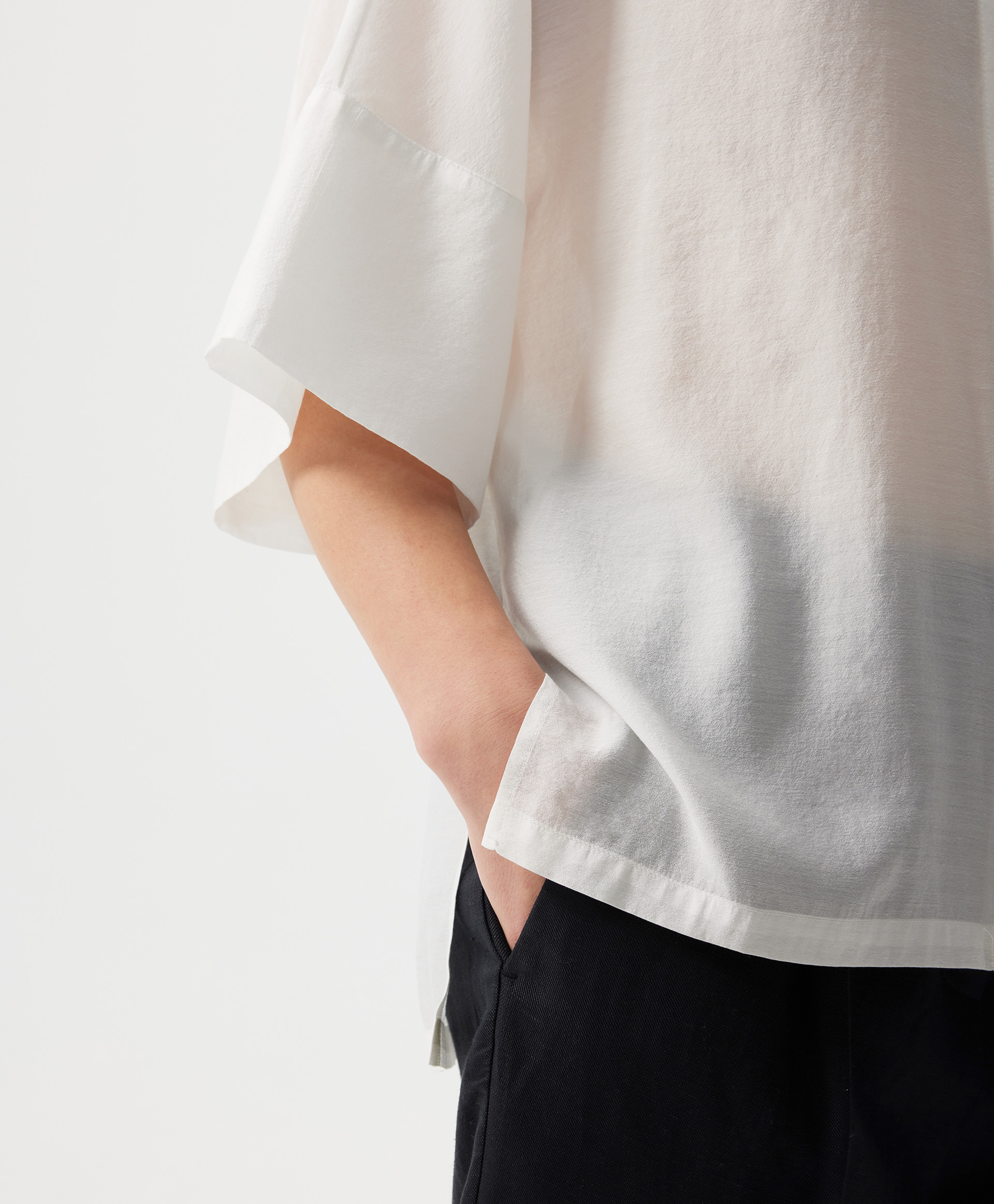 Блузка с коротким рукавом оверсайз из легкой полупрозрачной ткани с натуральным шелком.