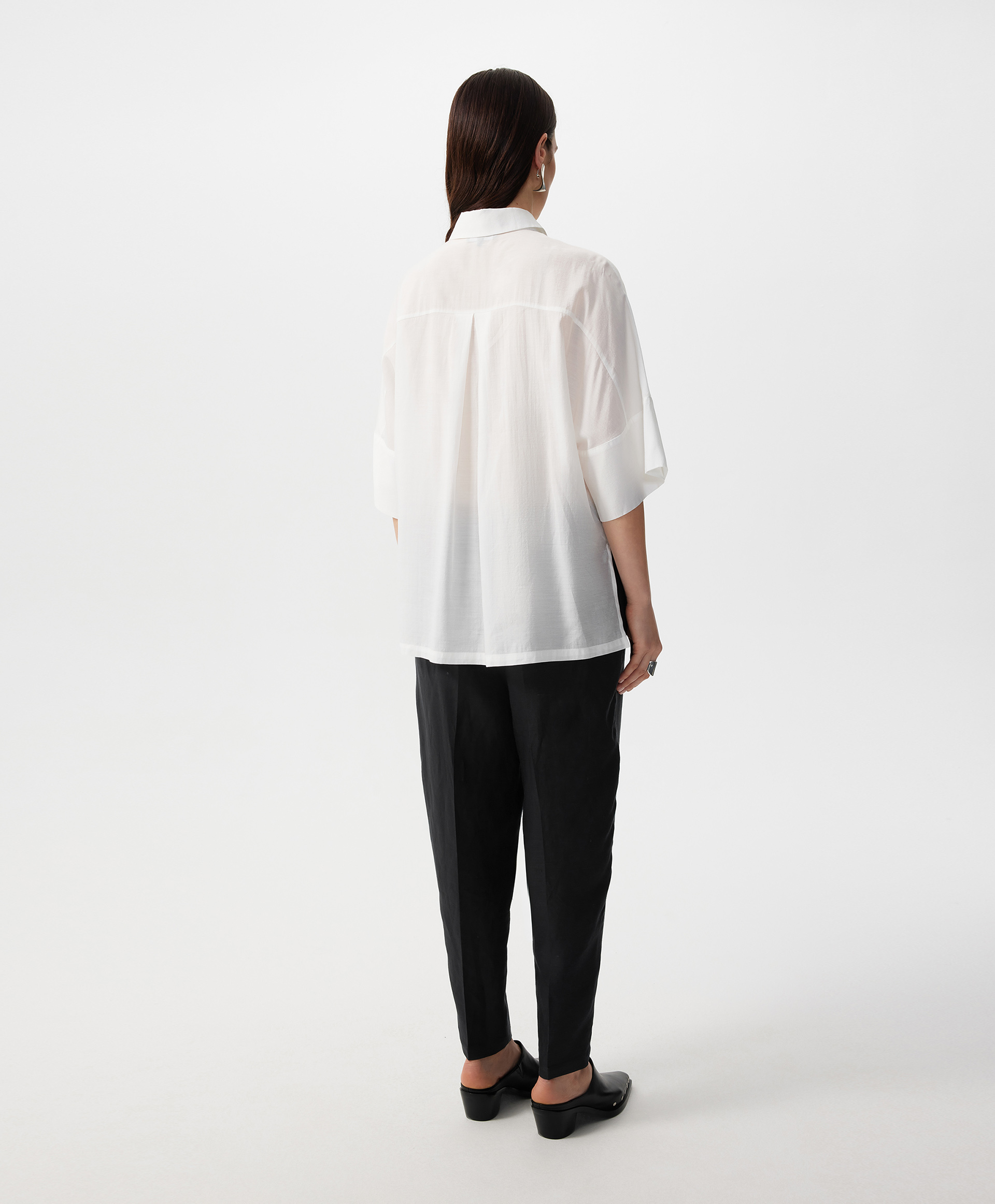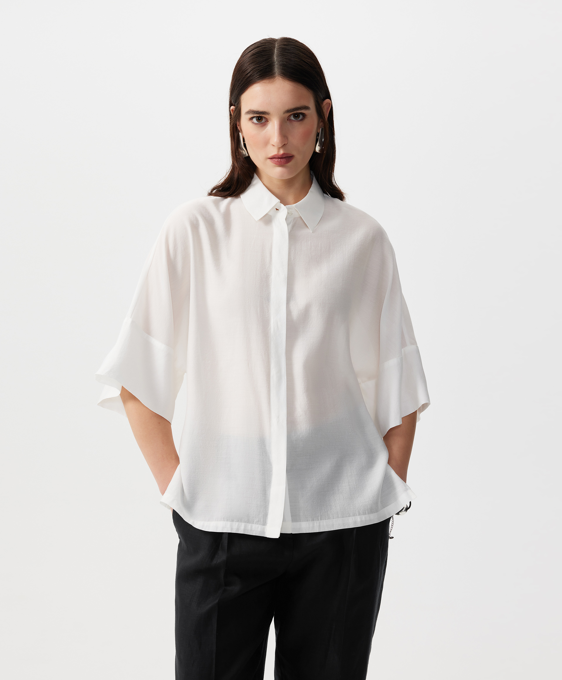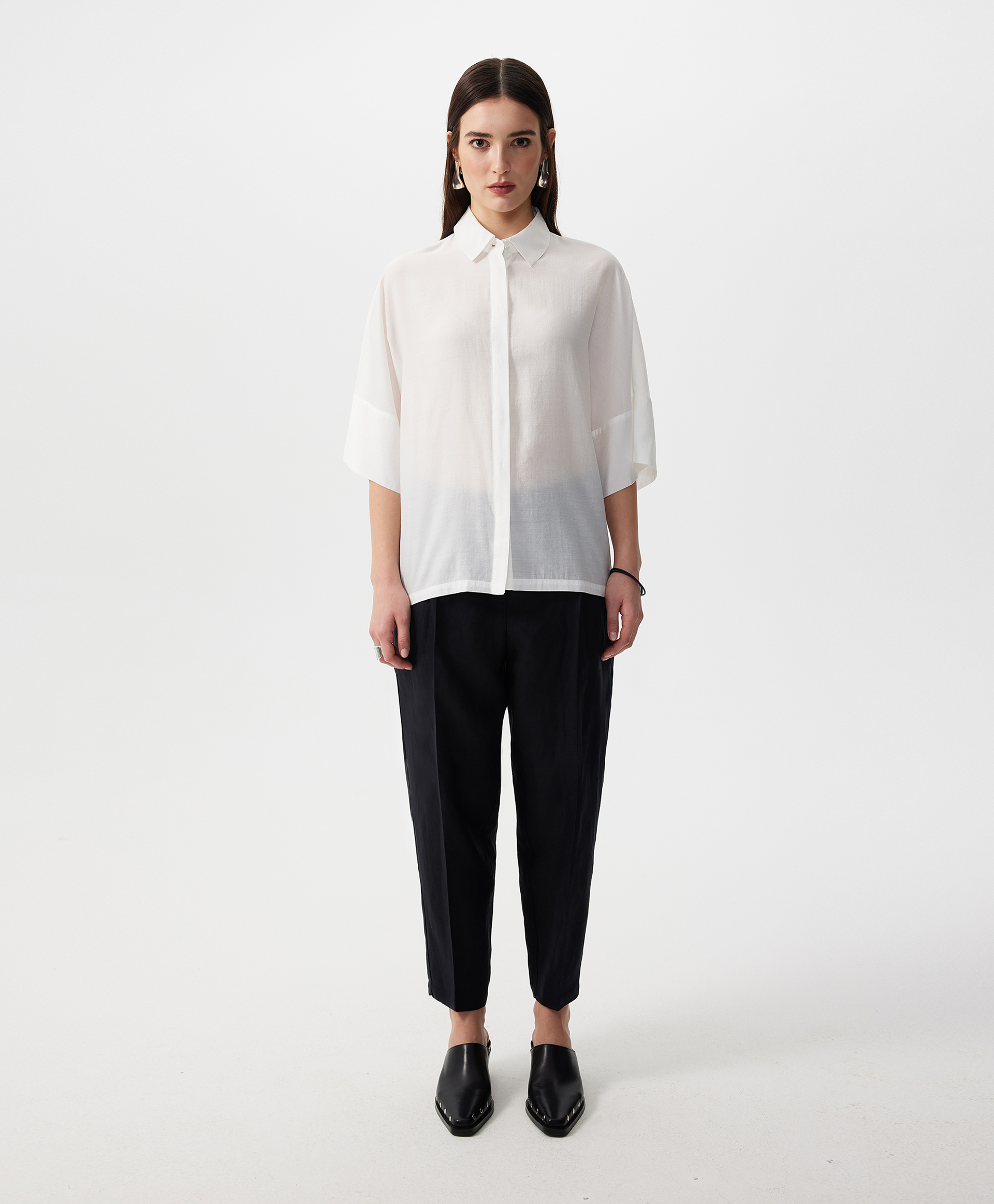 Блузка с коротким рукавом оверсайз из легкой полупрозрачной ткани с натуральным шелком.