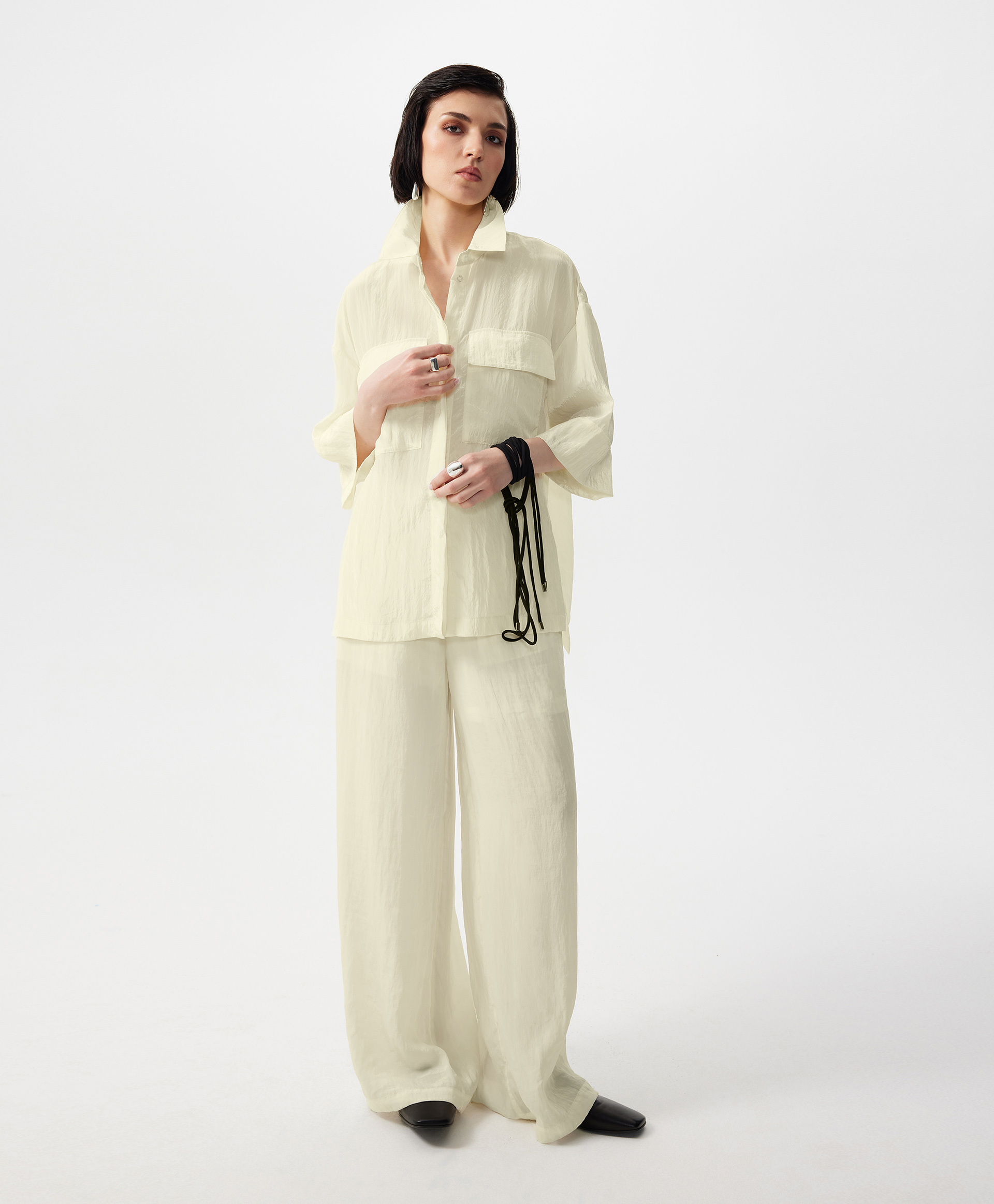 − Переливающаяся вискозная ткань с легкой жатой текстурой