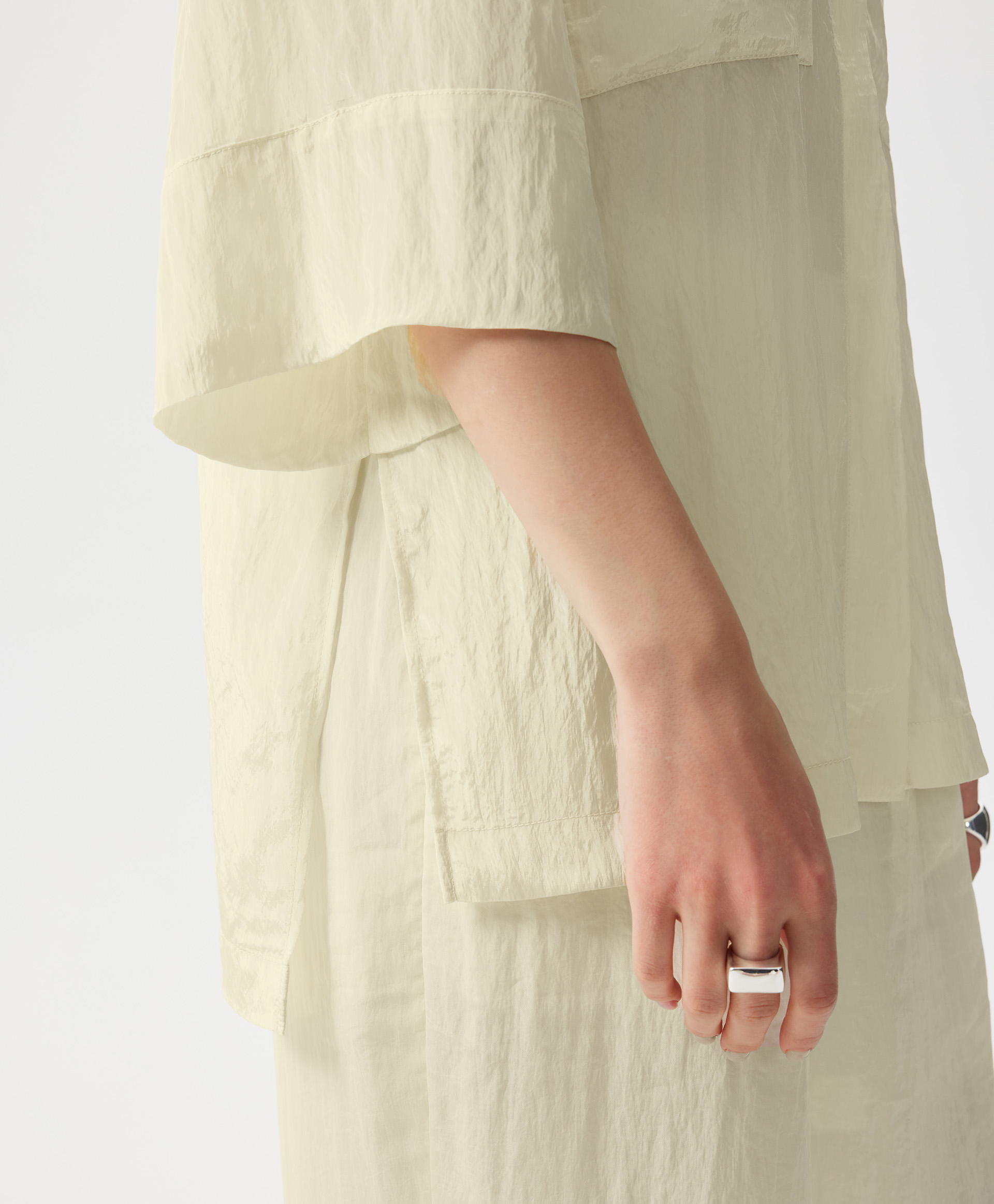 Блузка с коротким рукавом оверсайз из переливающейся вискозной ткани с крэш эффектом.