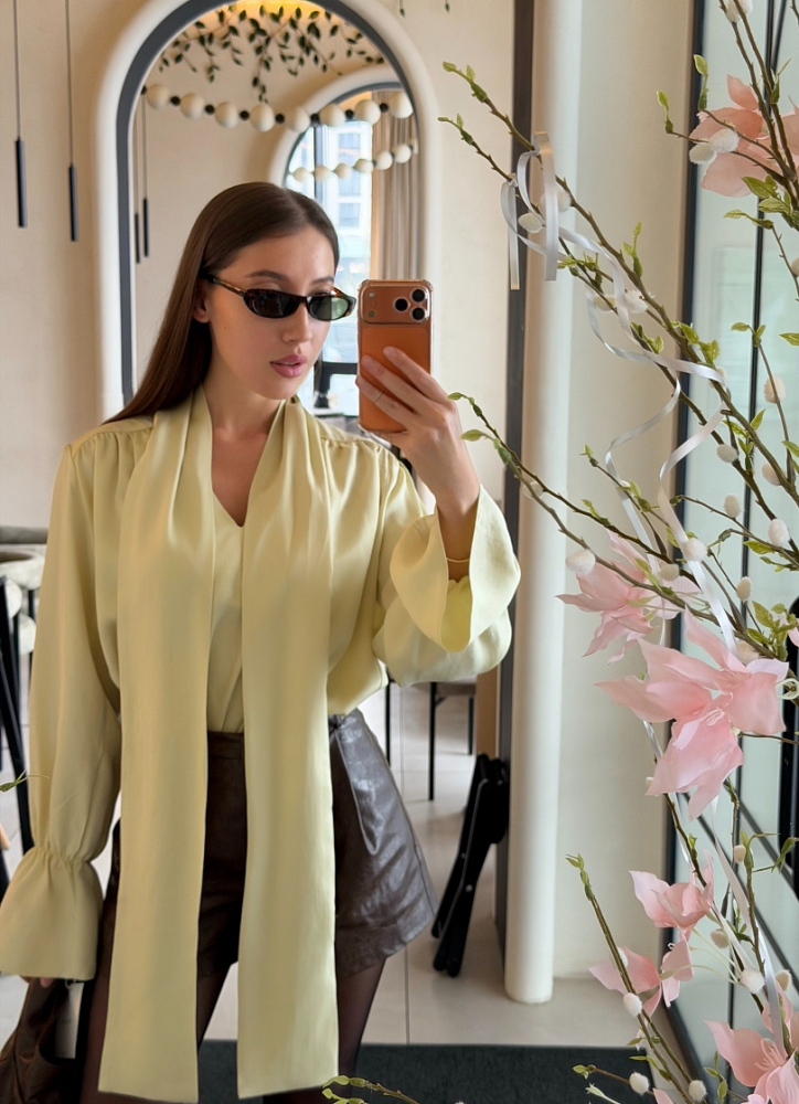 Блуза из мягкого лиоцелла с элегантным бантом у воротника. Материал приятно охлаждает кожу и хорошо держит форму, создавая ощущение лёгкости и комфорта. Прямой крой и придает образу утончённость, а благородный матовый блеск ткани делает блузу универсальной — она одинаково уместна в офисе и на вечерней прогулке.
