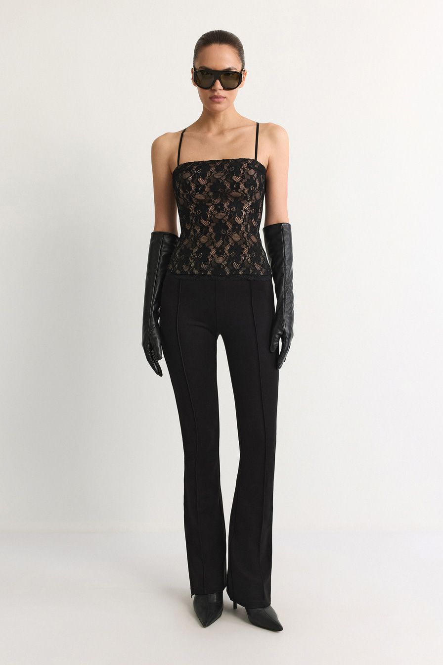 «Для вечеринки сочетайте брюки с кружевным корсетом, лаковыми лодочками и небольшой сумкой-багетом».