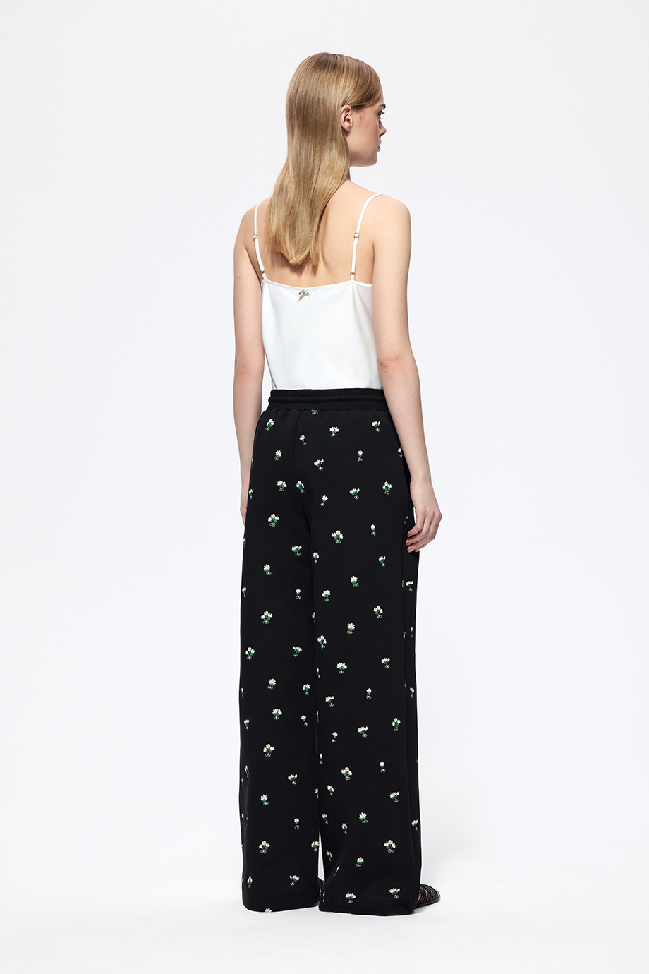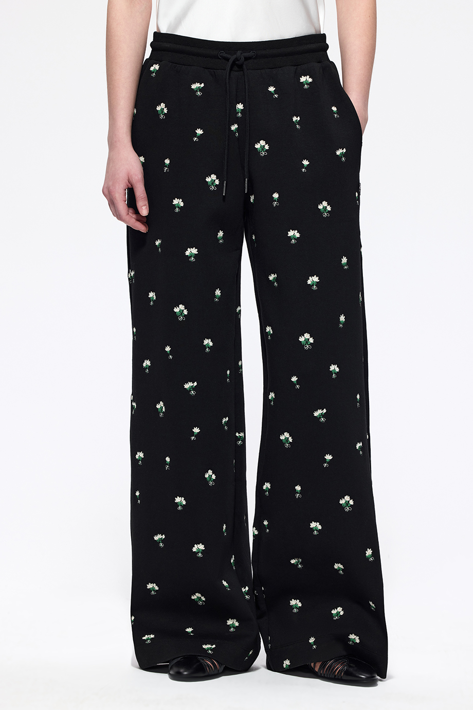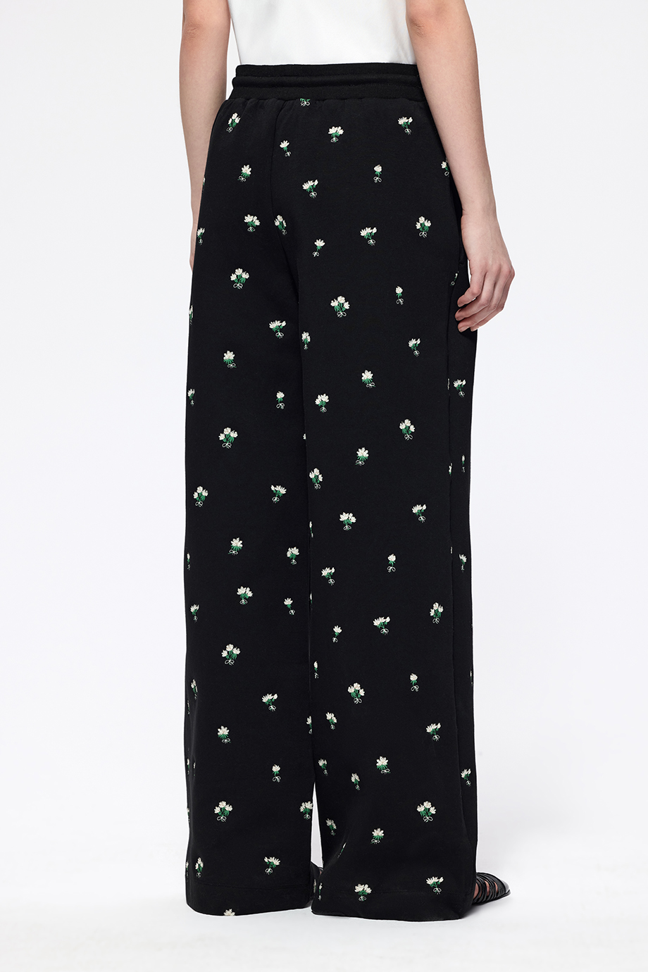 Чёрные трикотажные брюки с вышивкой — стильный и комфортный элемент гардероба. Подойдут для создания различных образов — от повседневных до более нарядных. Вышивка добавляет изысканность и индивидуальность.