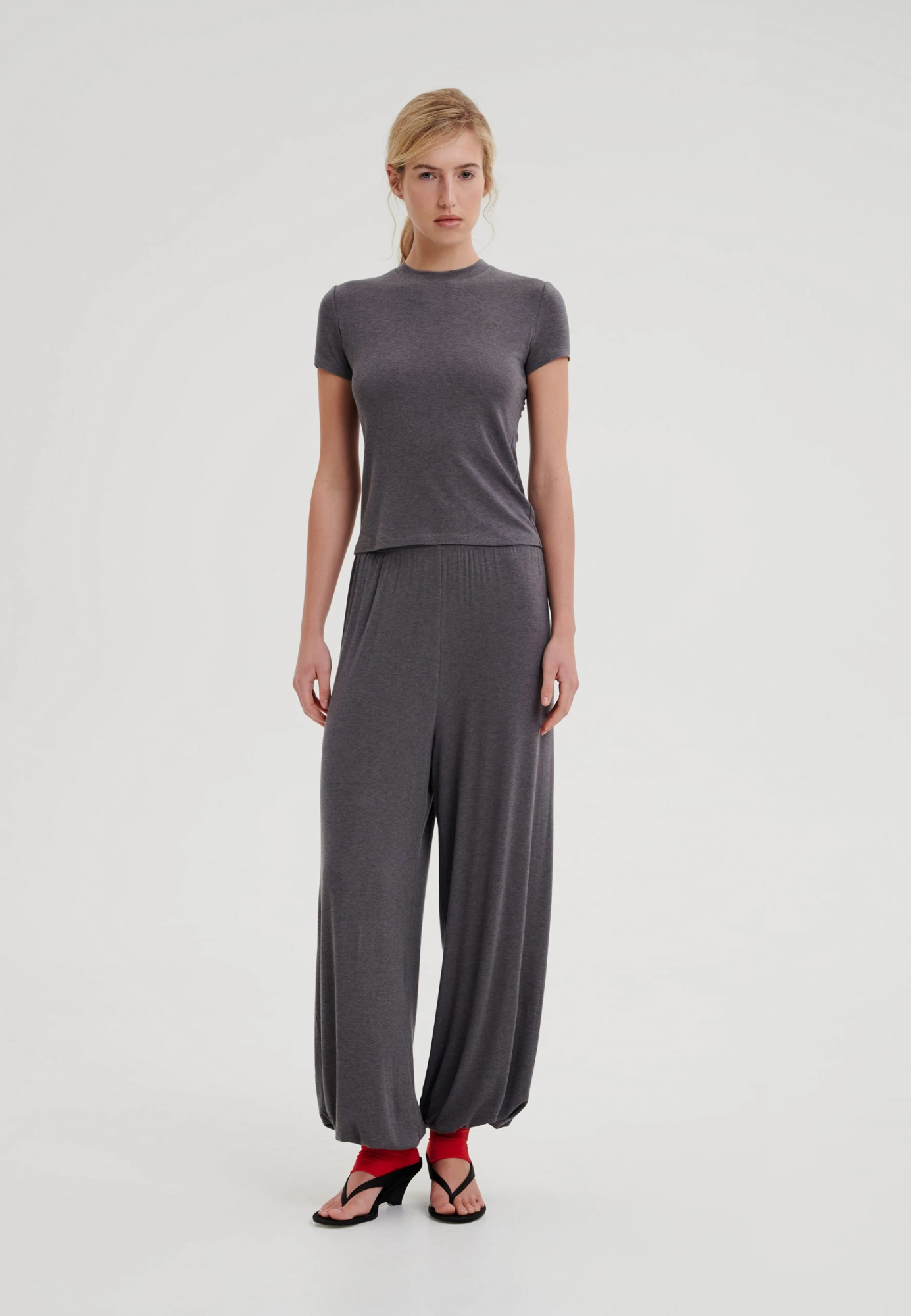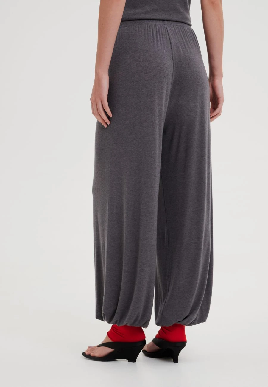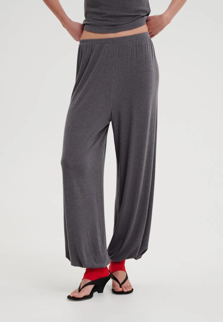 Брюки свободного силуэта зауженные книзу в благородном сером оттенке. Мягкая посадка и эластичный пояс обеспечивает комфорт и свободу движений. Модель выполнена из премиального тенселя с добавлением шерсти. Материал отличается мягкостью, пластичностью и комфортом в носке, сохраняет тепло и при этом остается дышащим – идеальный вариант для повседневных образов. Брюки гармонично сочетаются с одноименными лонгсливом и футболкой, создавая цельный комплект.