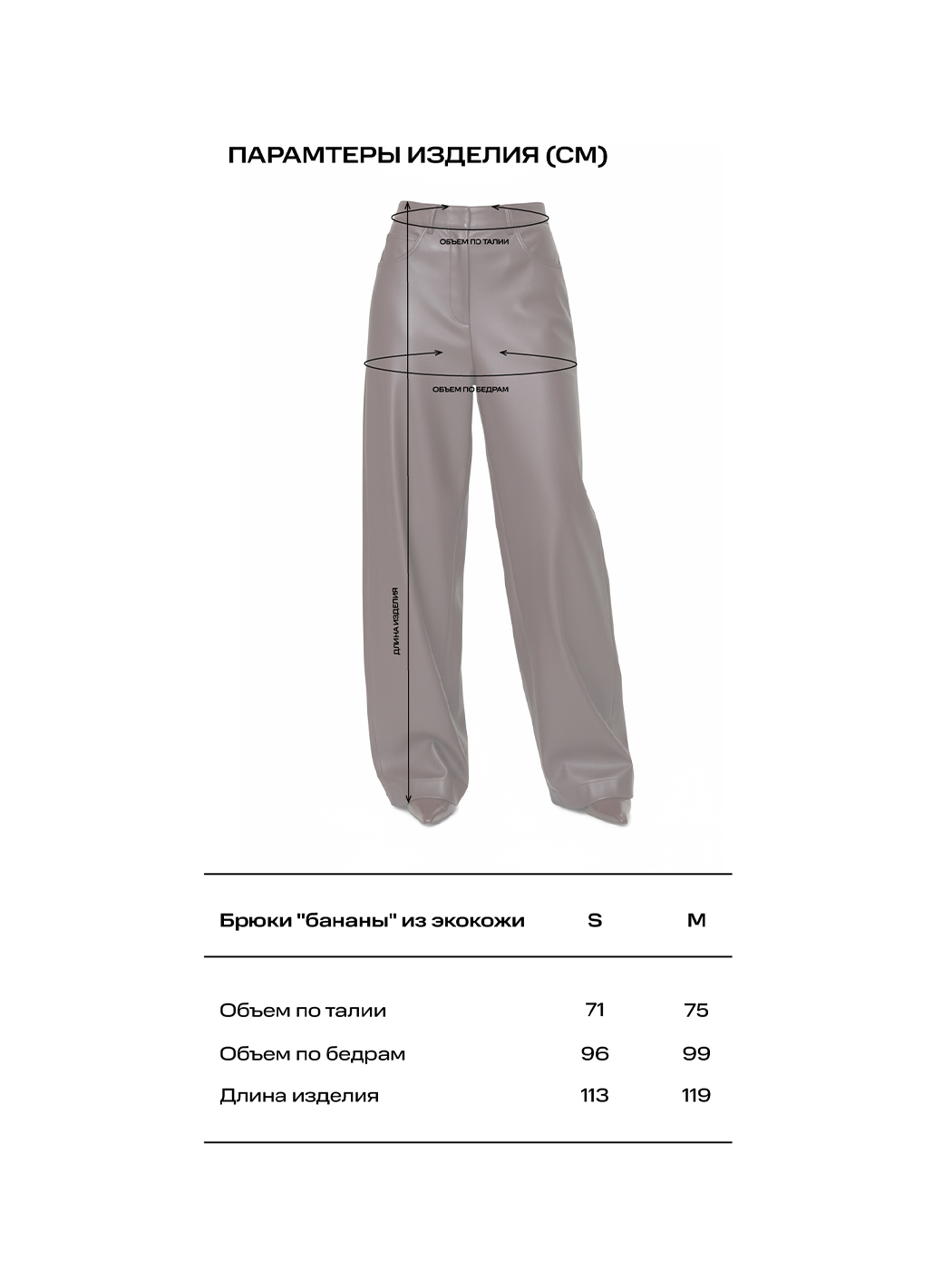 Брюки "бананы" из экокожи в сером оттенке. Модель отличается своим необычным кроем - свободным кроем от бедра и слегка зауженными к низу, что позволяет создать интересный образ.