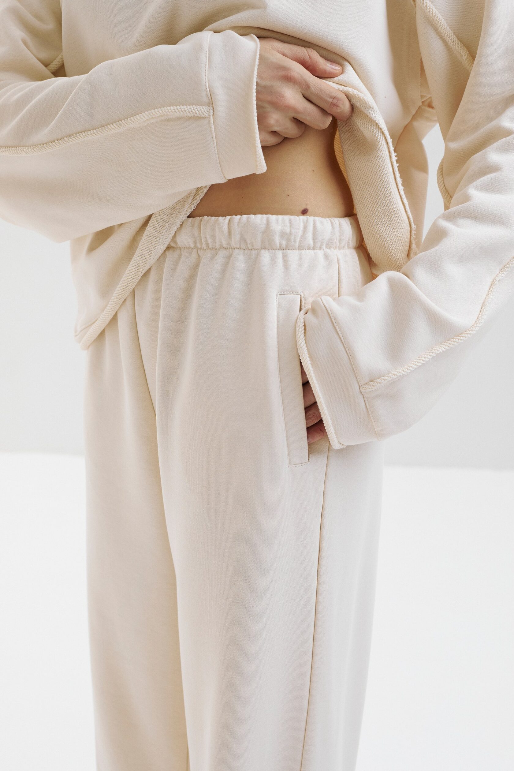 Рекомендуем сочетать брюки со свитшотом из той же коллекции или как самостоятельное изделие с футболками, топами.