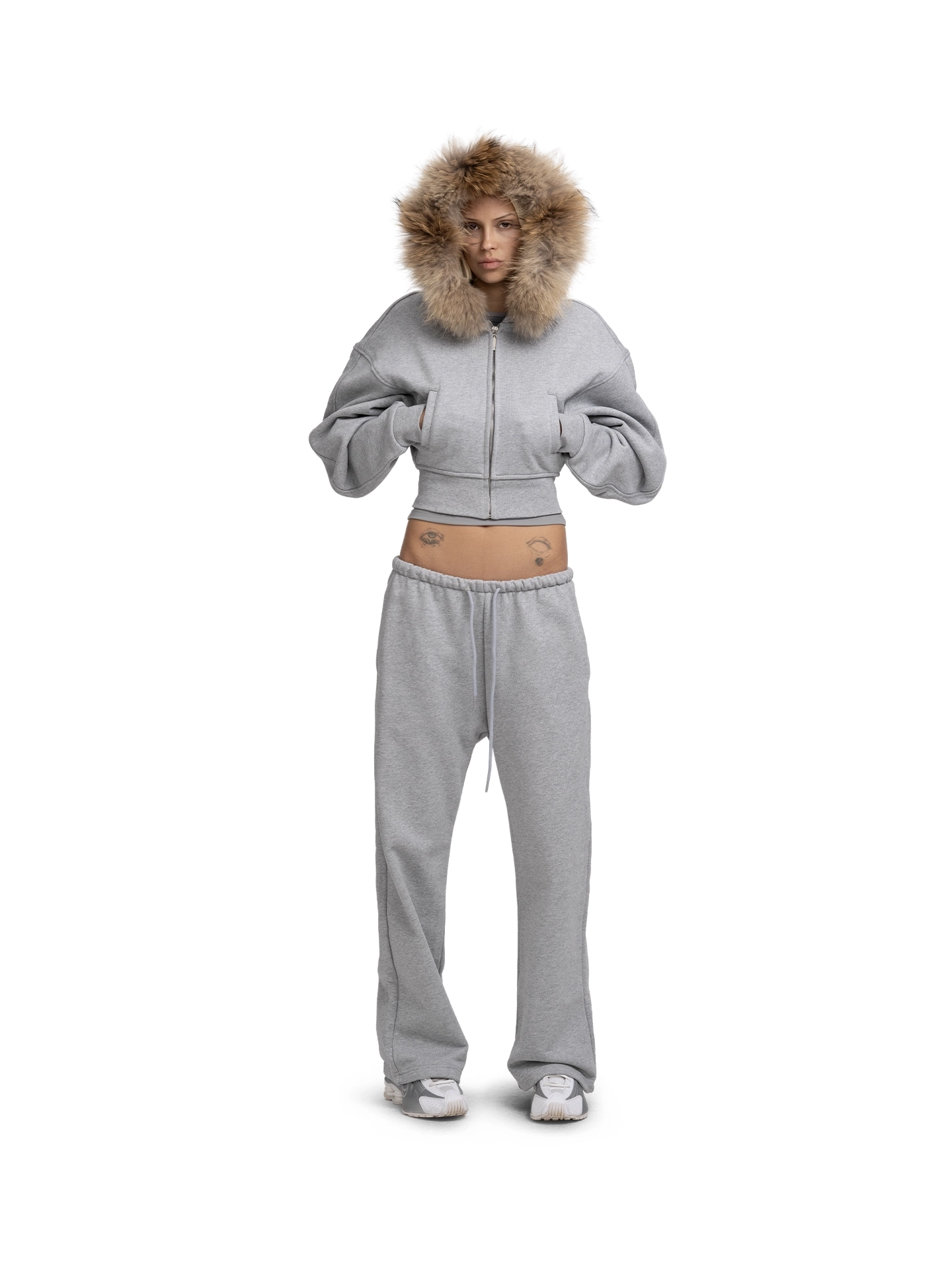 Вдохновение: Дизайн модели отсылает к эстетике 2000-х — эпохе смелых экспериментов, гламура и уличного шика. Заниженная посадка, оверсайз-силуэт и брендированная фурнитура отсылают к культовым образам нулевых, сочетая комфорт спортивной одежды с дерзкими деталями. Фактурный плотный футер подчеркивает ретро-настроение, а лаконичные карманы добавляют функциональности, сохраняя чистоту линий.