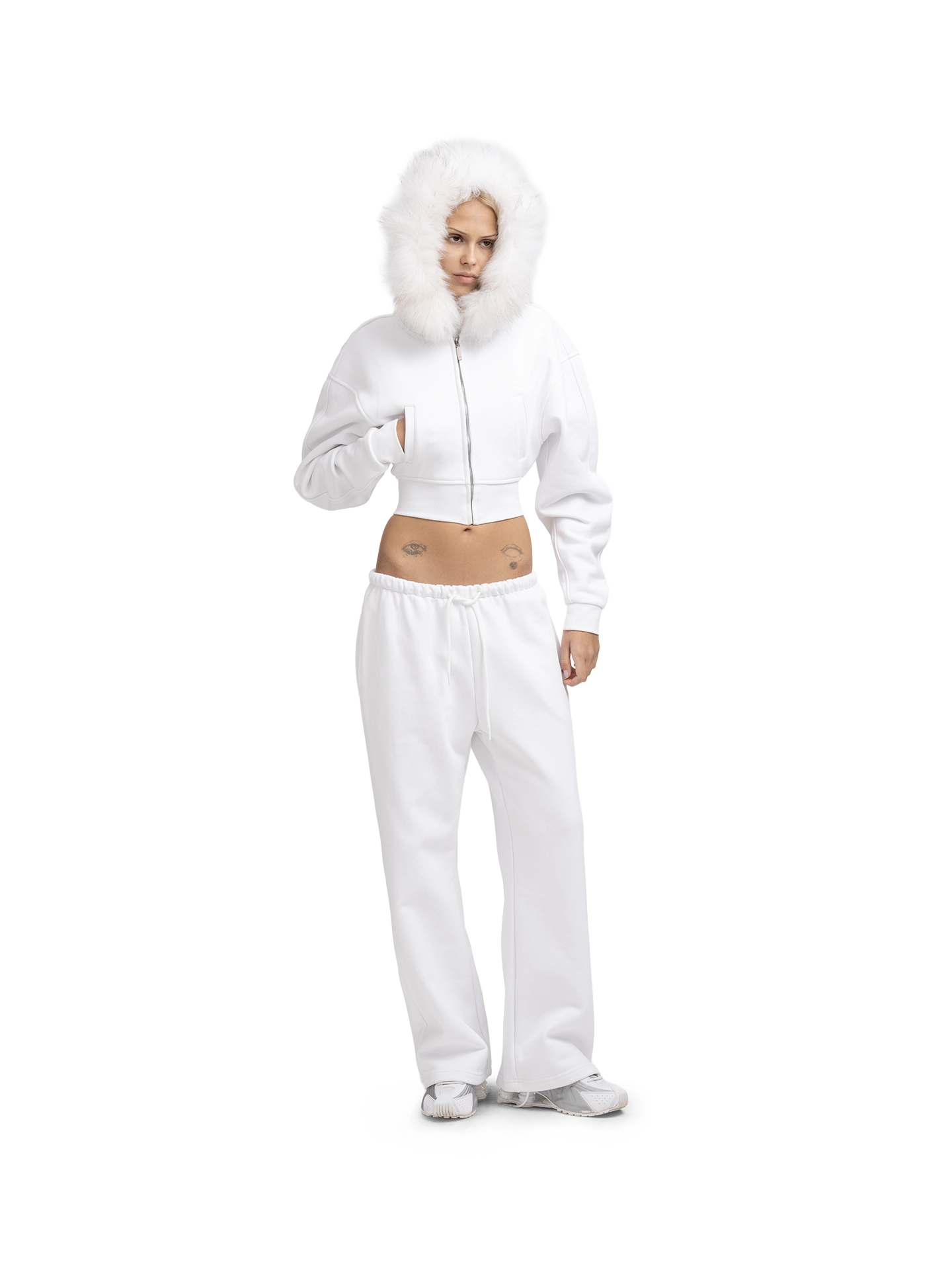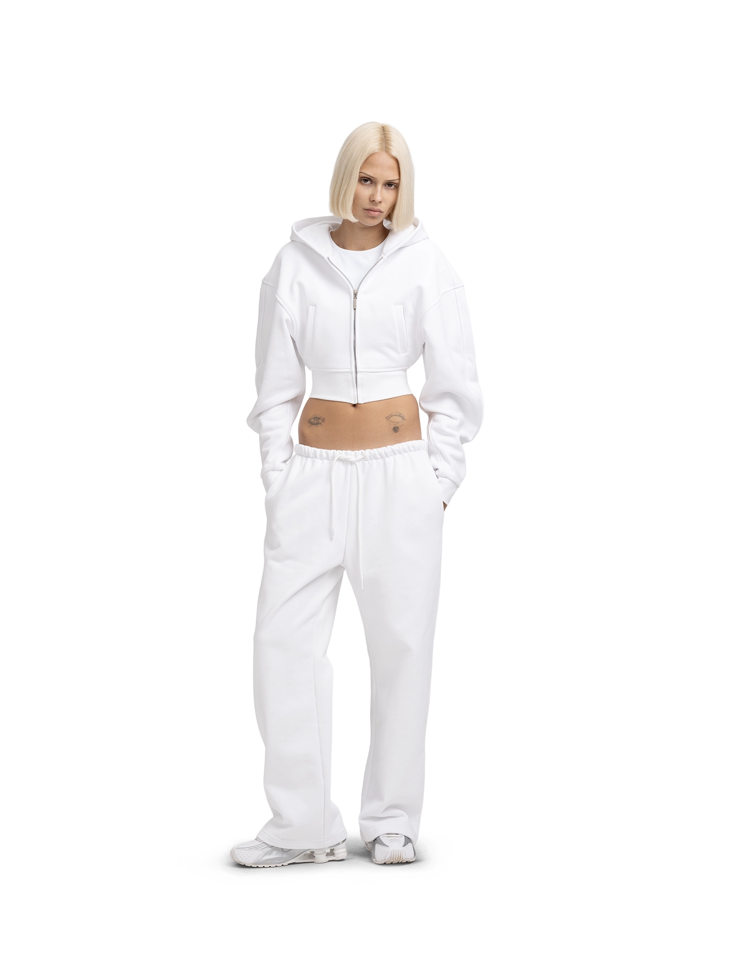 Вдохновение: Дизайн модели отсылает к эстетике 2000-х — эпохе смелых экспериментов, гламура и уличного шика. Заниженная посадка, оверсайз-силуэт и брендированная фурнитура отсылают к культовым образам нулевых, сочетая комфорт спортивной одежды с дерзкими деталями. Фактурный плотный футер подчеркивает ретро-настроение, а лаконичные карманы добавляют функциональности, сохраняя чистоту линий.