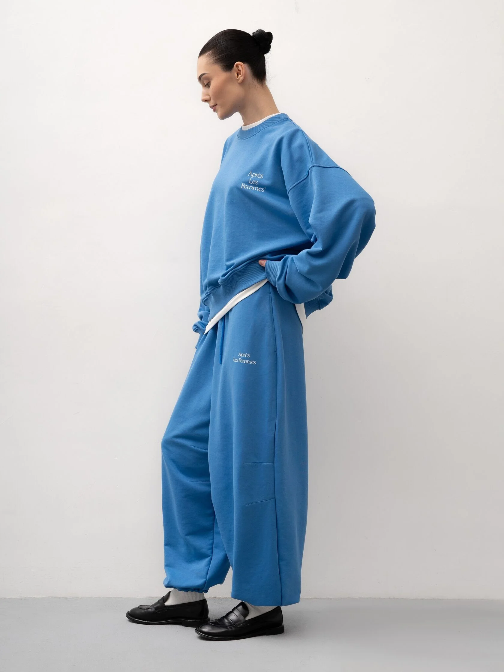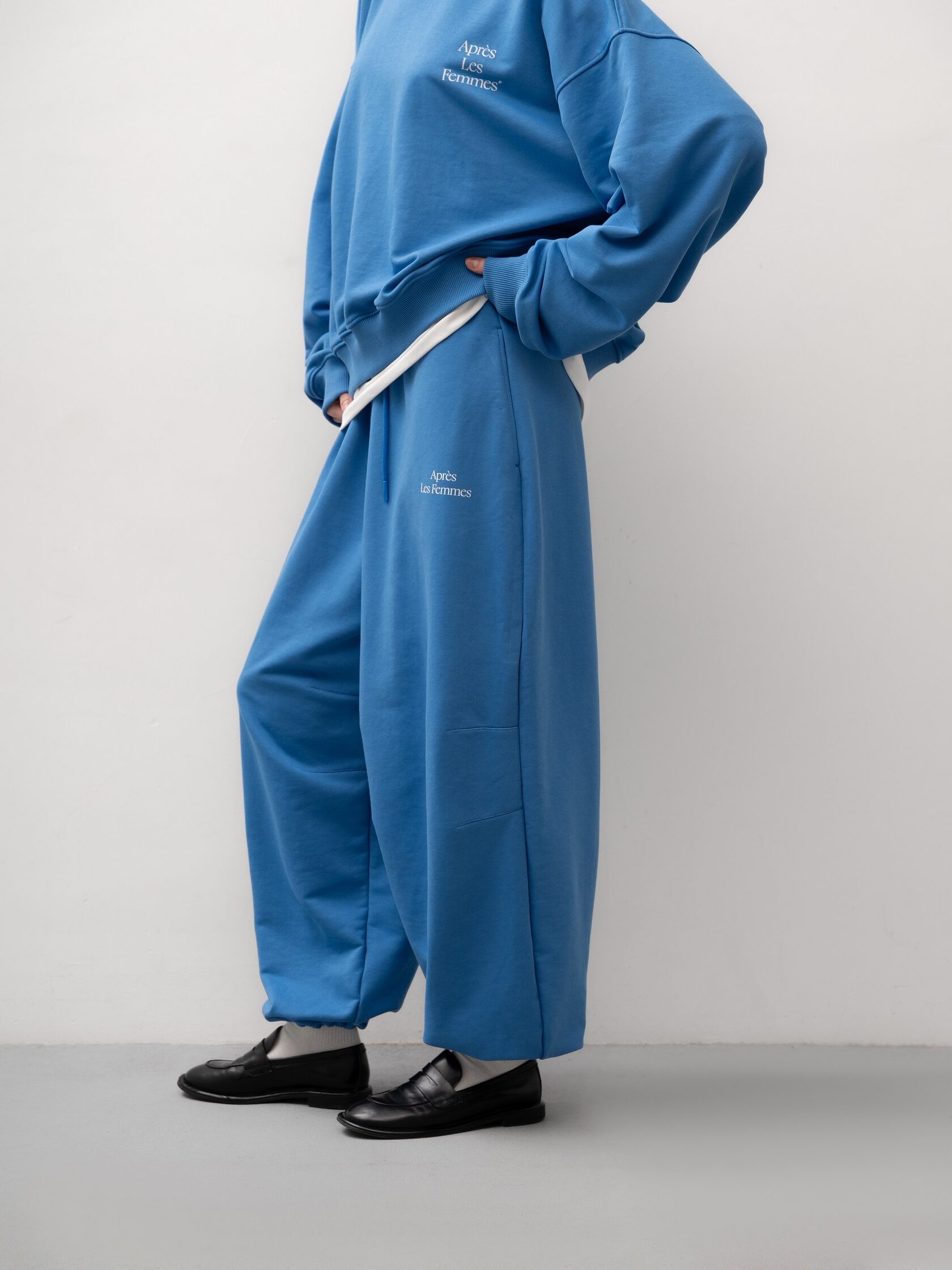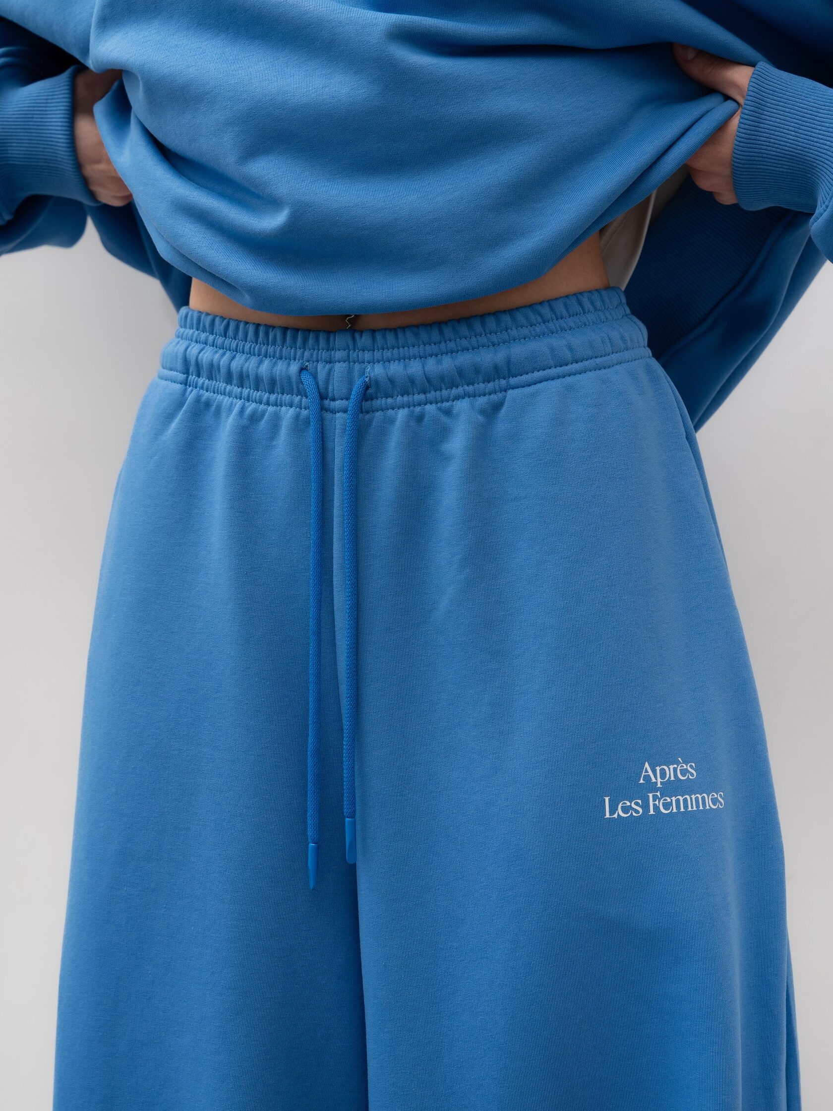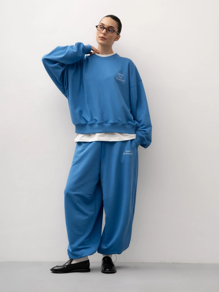 Яркие синие брюки из хлопка с регулируемой резинкой на талии – практичная и стильная вещь для повседневного и многослойного гардероба. Свободный крой обеспечивает комфорт, а оттенок добавляет свежести любому образу, отлично сочетаясь со свитшотом в цвет или другими вариантами верха в повседневном или спортивном стиле.