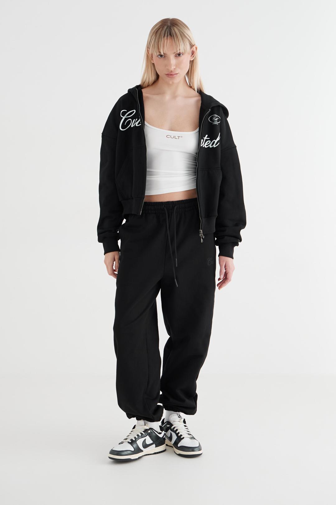 Это та базовая вещь, которая сочетается со всем. Джоггеры cоставляют костюм с худи на молнии из коллекции.