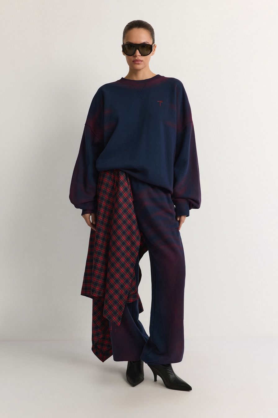 «Для повседневного образа сочетайте брюки с оверсайз-свитшотом из комплекта и кроссовками из кожи и замши».
