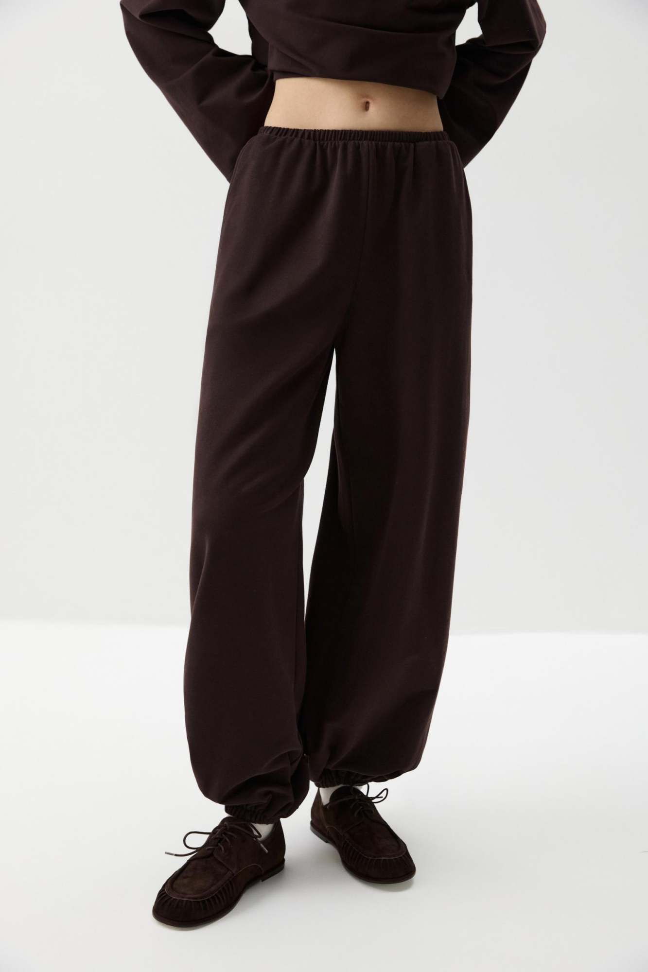 Сочетайте с лонгсливом с широкими рукавами из идентичной ткани. Носите джоггеры с любой вещью в вашем гардеробе: с толстовкой, футболкой, джемпером. А спокойные оттенки позволяют вписать джоггеры в образы в стиле спортивный кежуал с пиджаком. В холодное время года завершите выход укороченной курткой или полупальто.