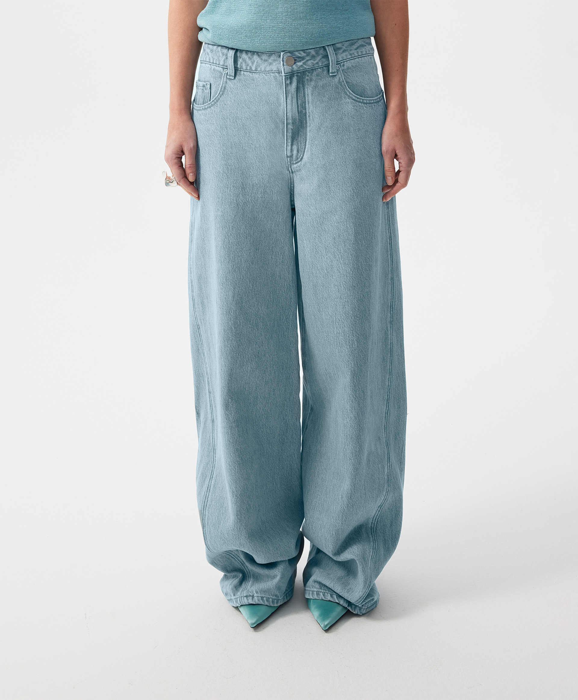 Джинсы-багги средней посадки с фигурным боковым швом.