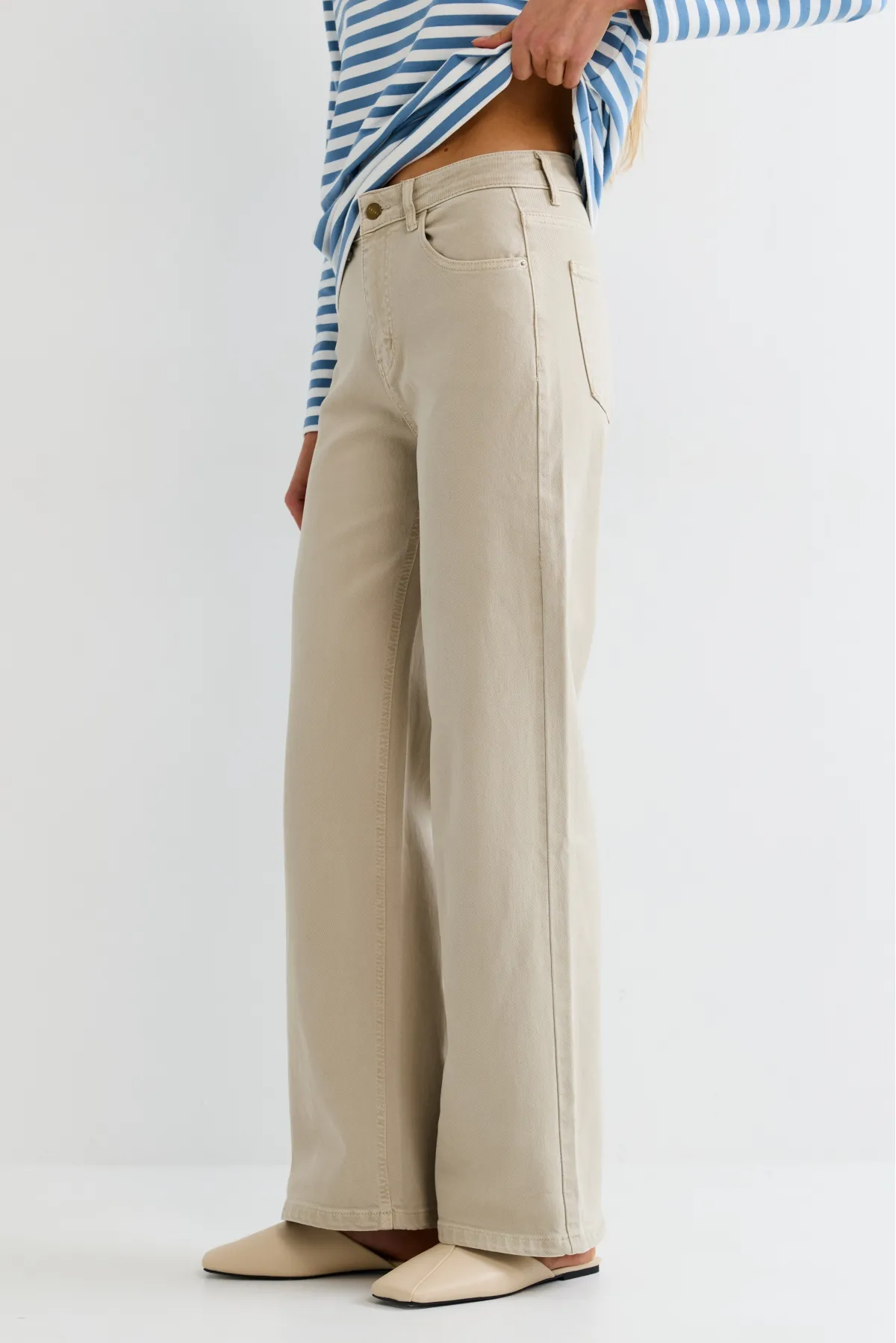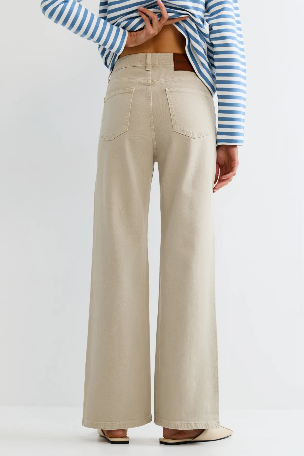 Плотная джинсовая ткань, пять карманов и высокая талия. При желании можно взять размер побольше, чтобы силуэт стал более расслабленным. Или носить в размер, сочетая с оверсайз футболками, футером или трикотажными изделиями.