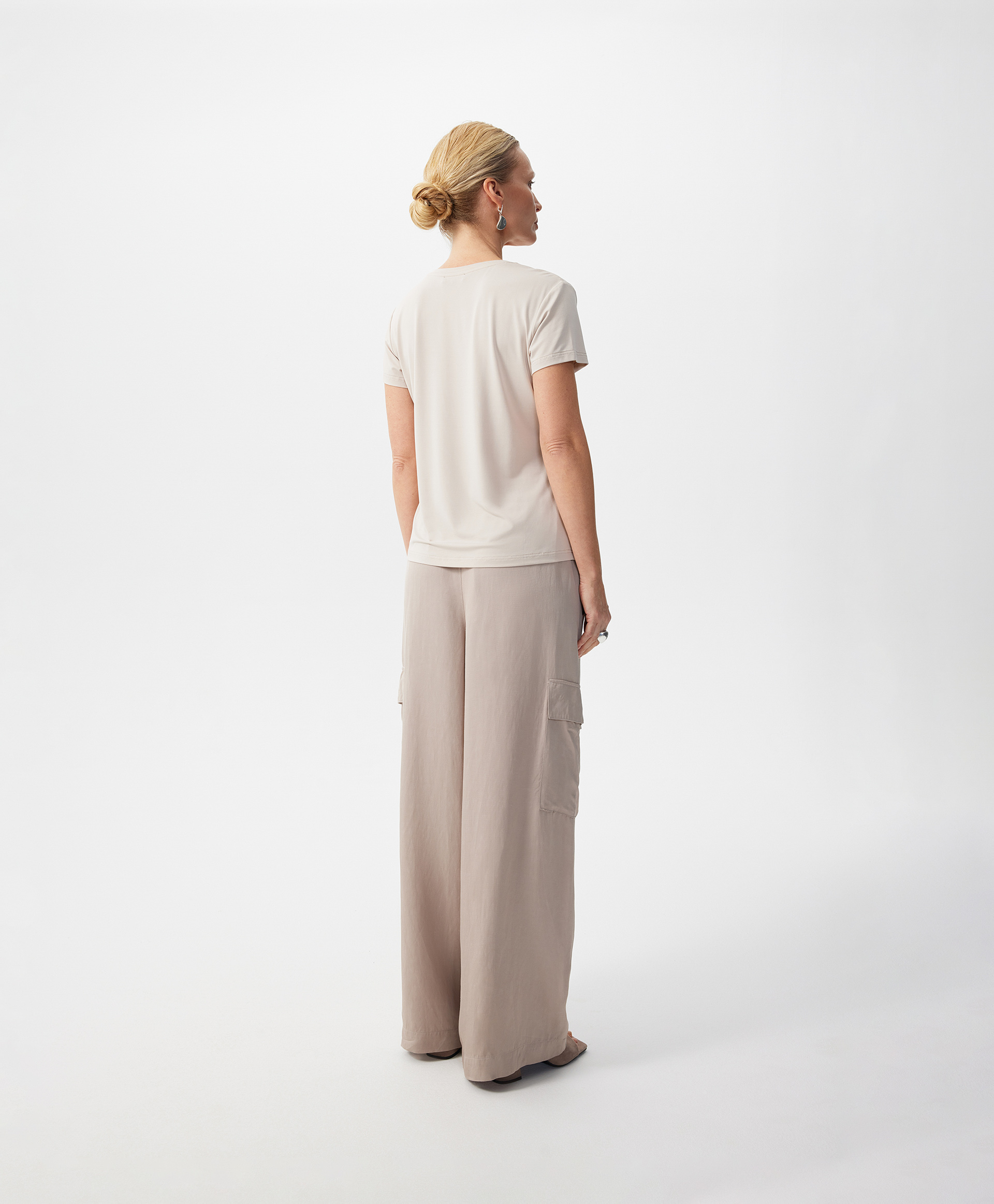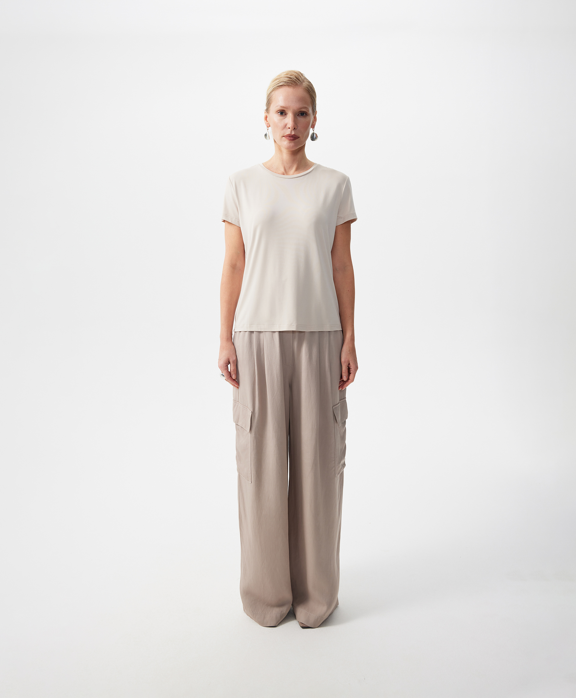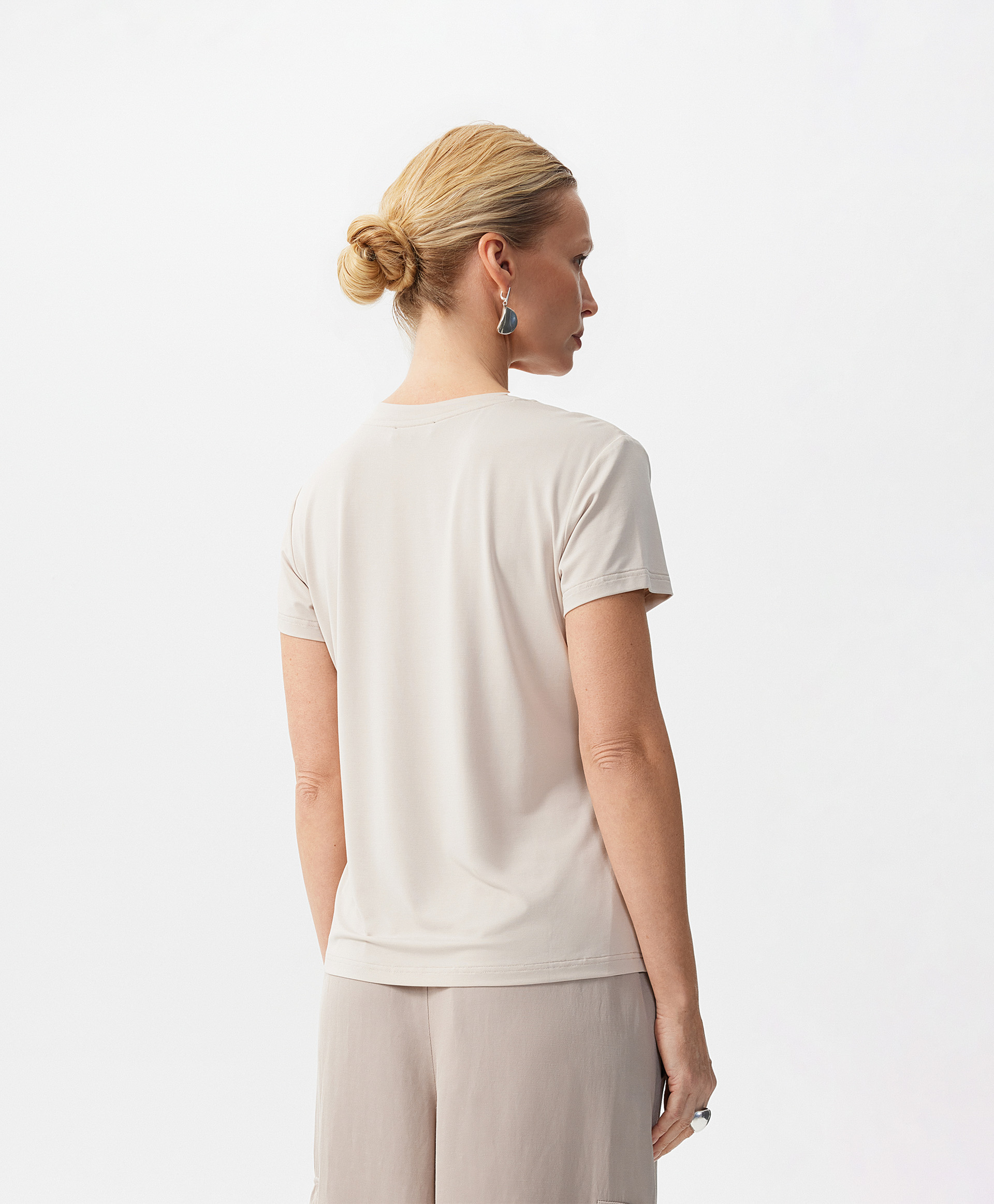 Футболка прилегающего силуэта - отличная инвестиция в качество, стиль, возможности комбинаторики. Выполненная из мягчайшего трикотажного полотна на основе вискозы с нейлоном и спандексом, мягкая, пластичная, приятная на ощупь, футболка с коротким рукавом напомнит, что тренды приходят и уходят, а качественная база остается неизменной, служа долгие годы. Она будет прекрасным единичным изделием в жаркий день в комплекте с юбкой, брюками, шортами, а также безупречным первым слоем в сочетании с пиджаком, кардиганом, блузкой. В любом случае, она подарит тактильное удовольствие, став лучшей базовой вещью элегантного женского гардероба.