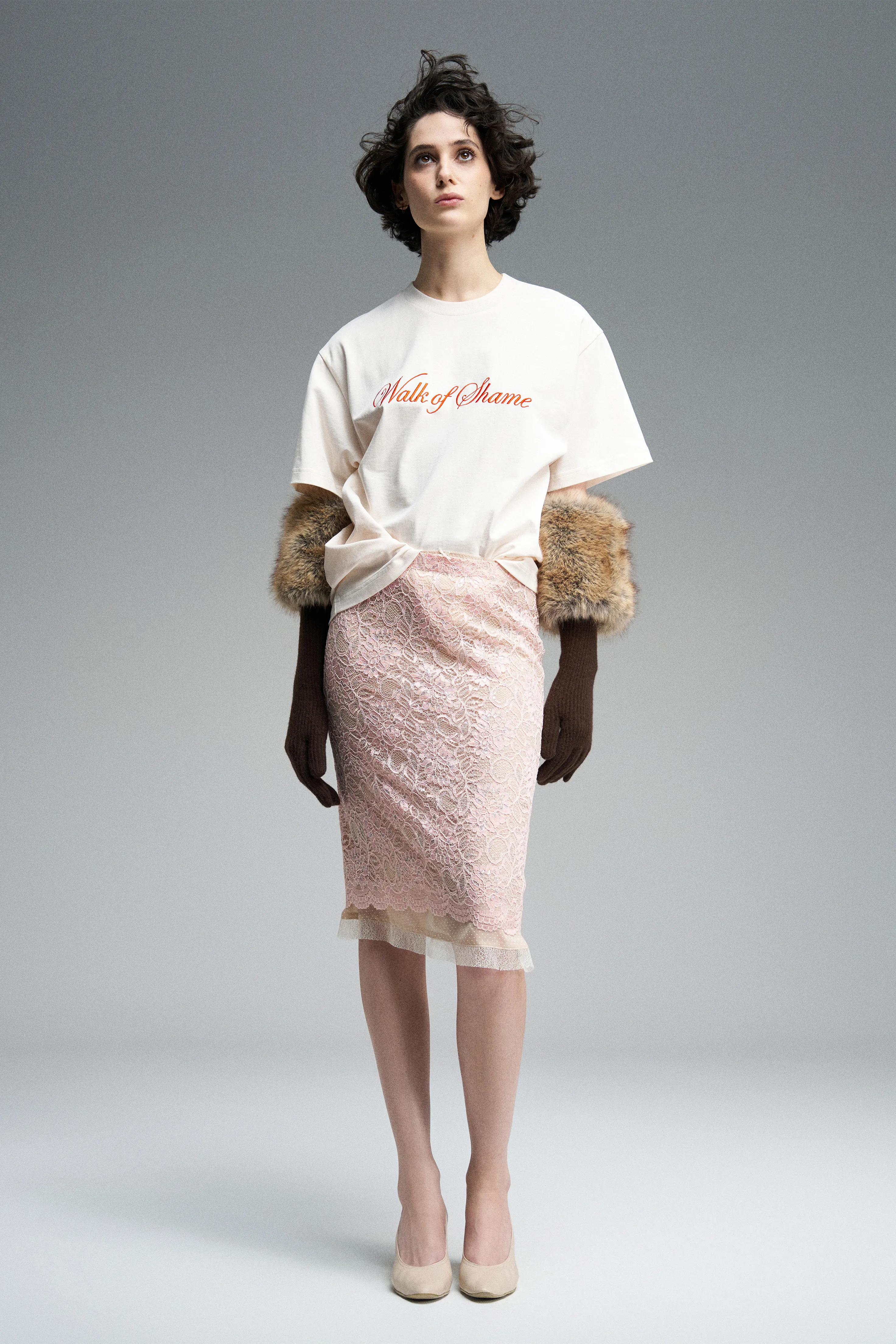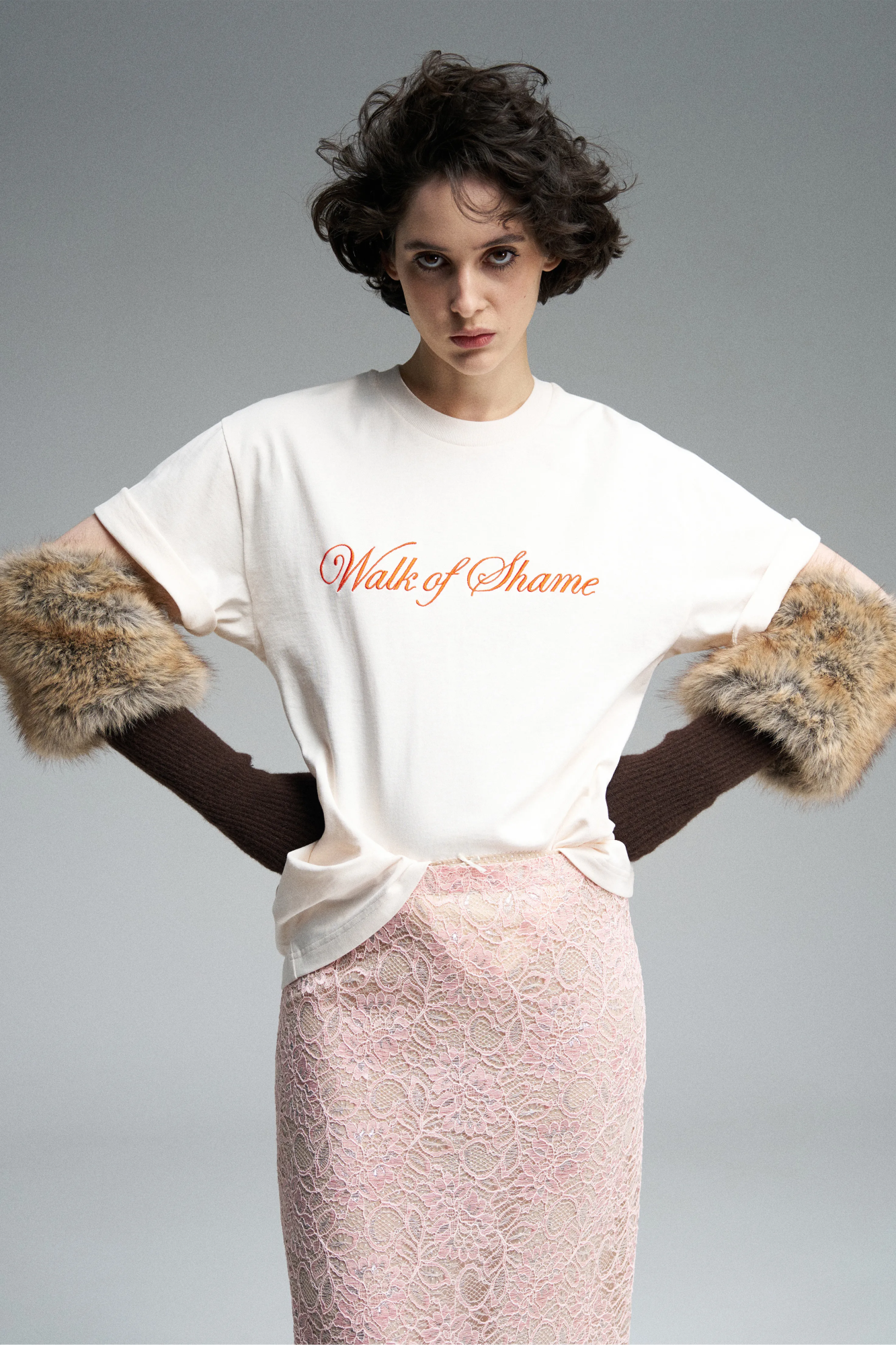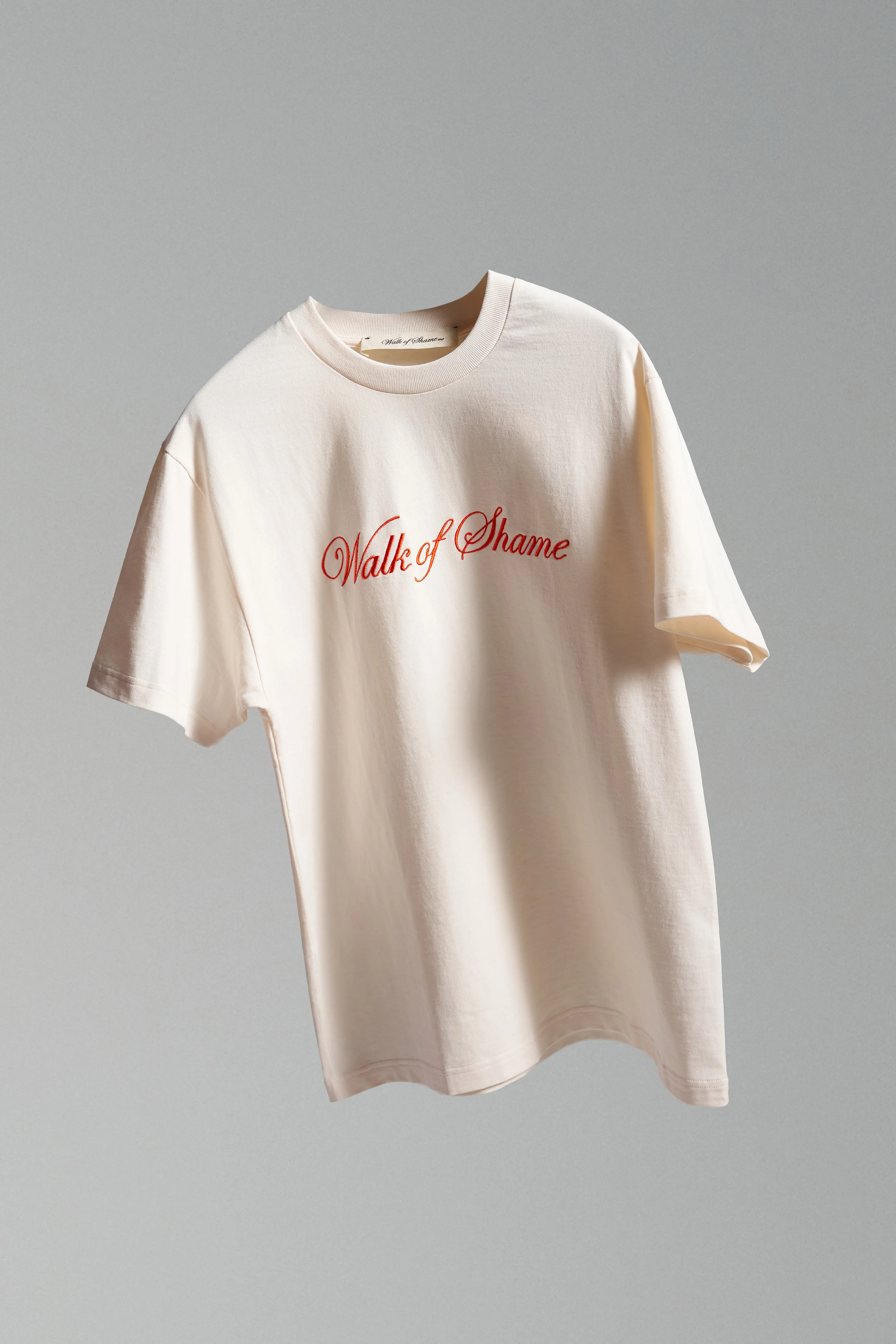 Футболка произведена в Португалии. Вышивка бренда Walk of Shame на груди. Футболка свободного кроя с круглым вырезом горловины.