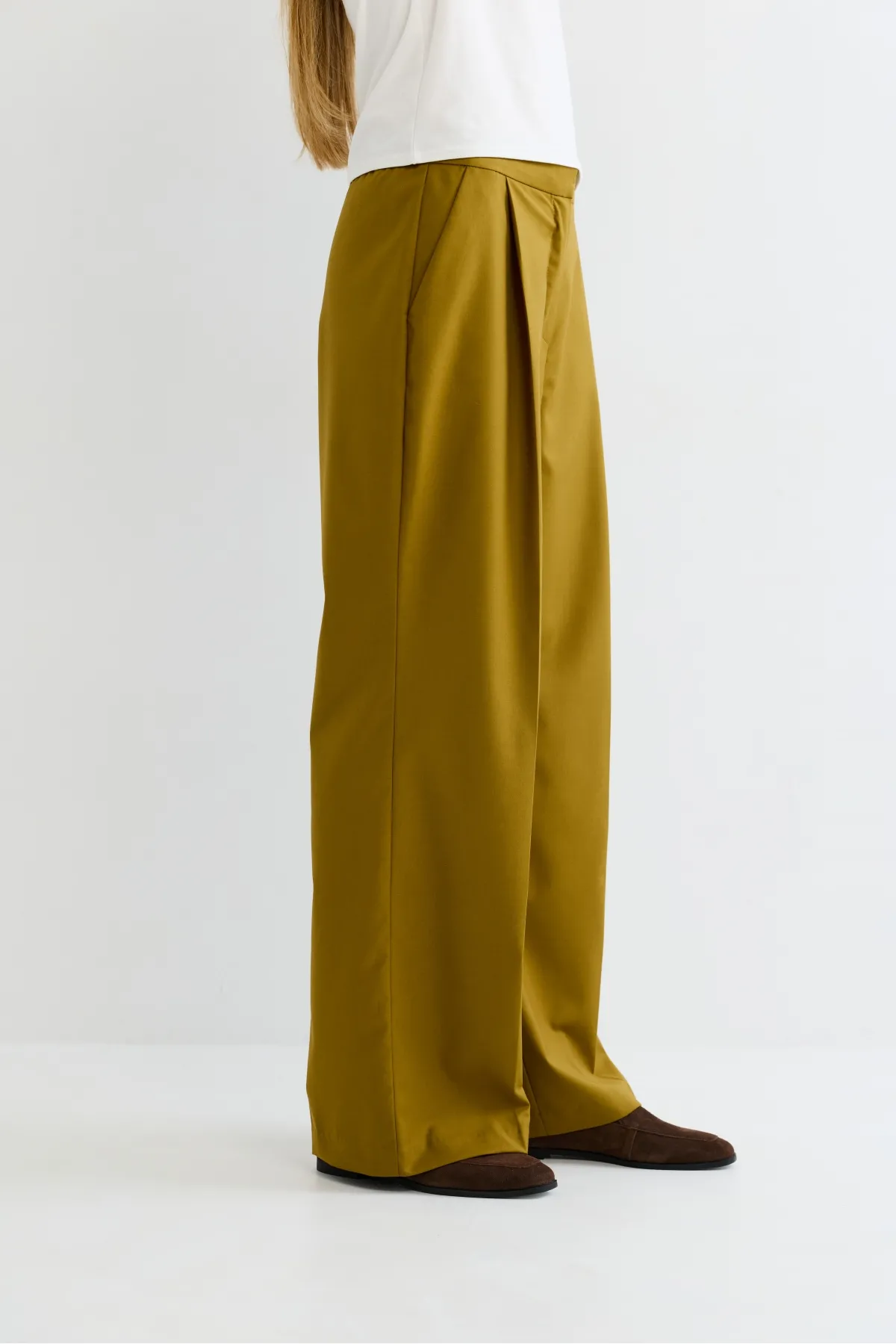 Брюки на эластичном поясе — с удобной посадкой и аккуратными защипами у талии — дают свободу движений и выглядят стильно. Мы сохранили те же проверенные лекала и добавили новую палитру цветов, чтобы вы могли выбрать вариант по настроению.