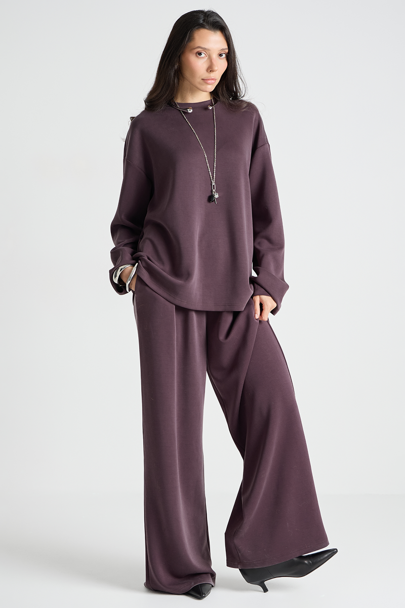 Уютный комплект одежды: лонгслив и брюки. Идеальный выбор для повседневного образа. Комфортный материал обеспечивает свободу движений и приятные ощущения при носке. Подчеркните свой стиль с этим универсальным костюмом!