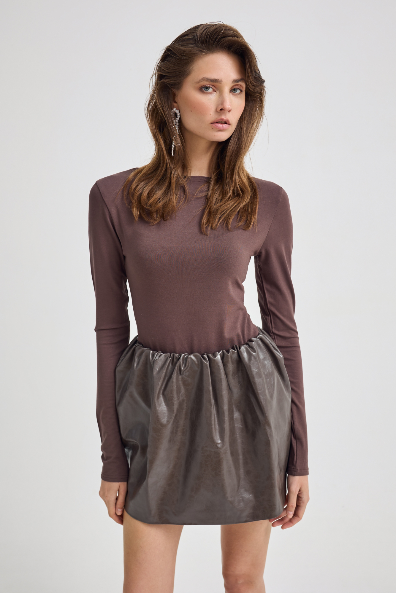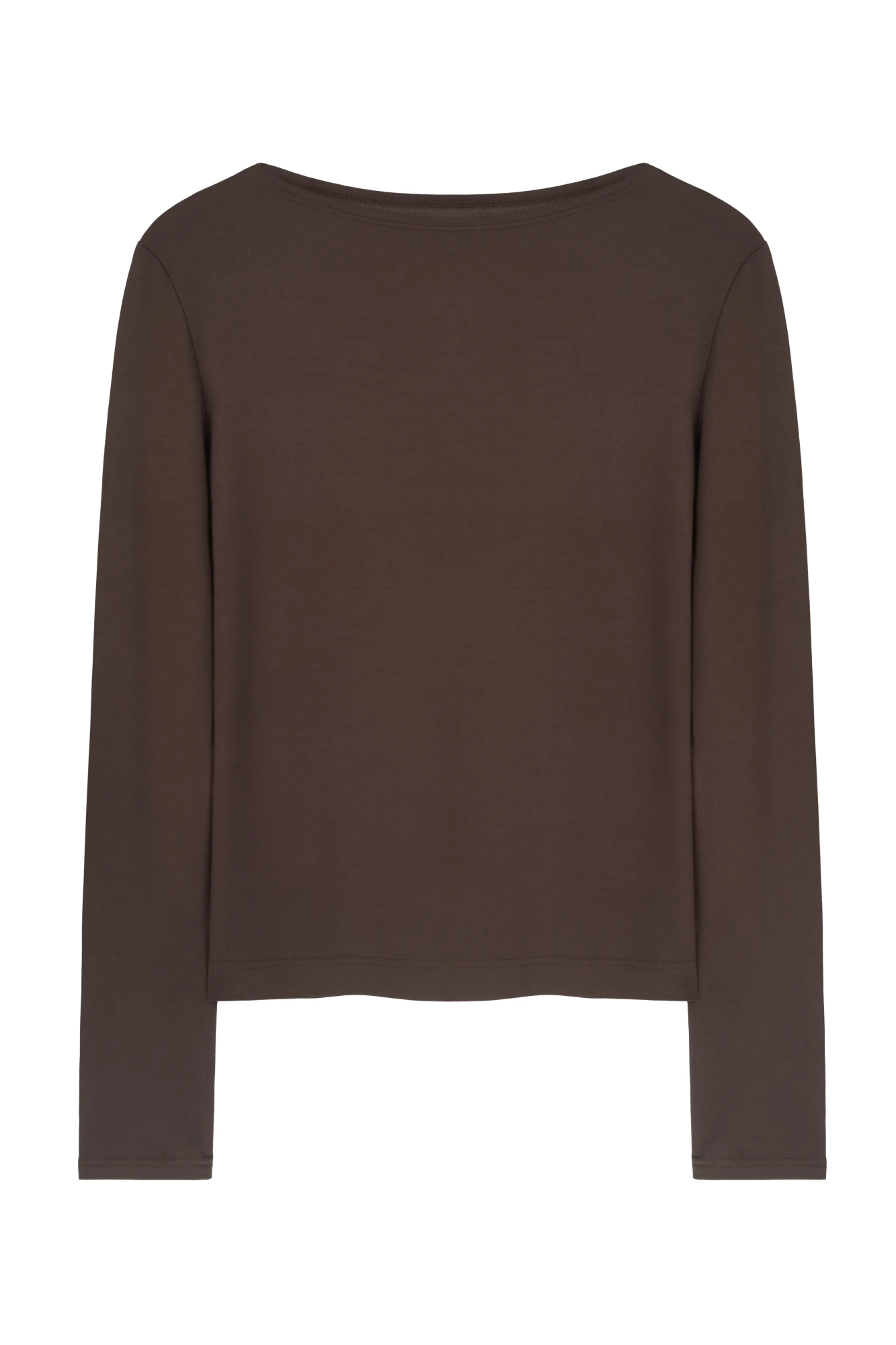 Его насыщенный шоколадный цвет делает его универсальным и элегантным элементом гардероба. Лонгслив легко сочетается с кожаными брюками для дерзкого образа или с классическим костюмом из шерсти — для стильного делового повседневного лука.