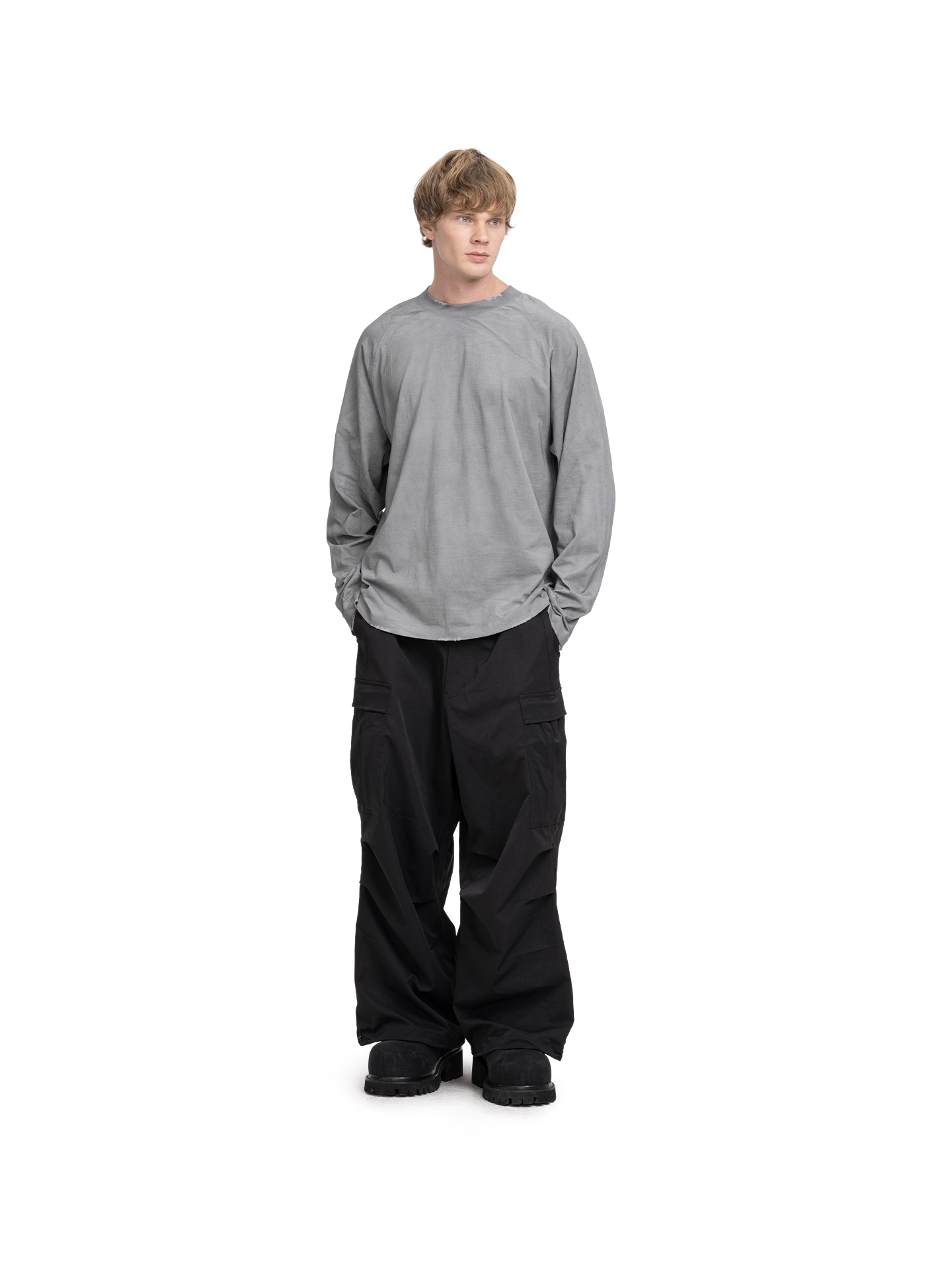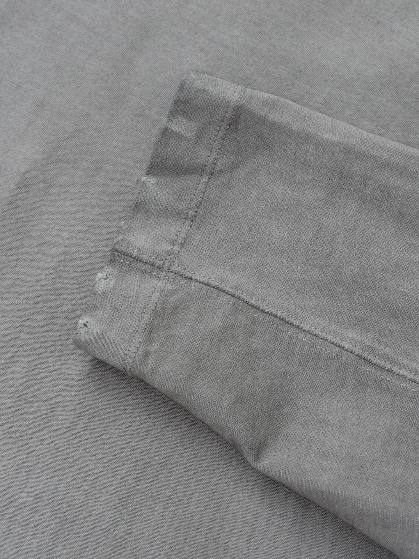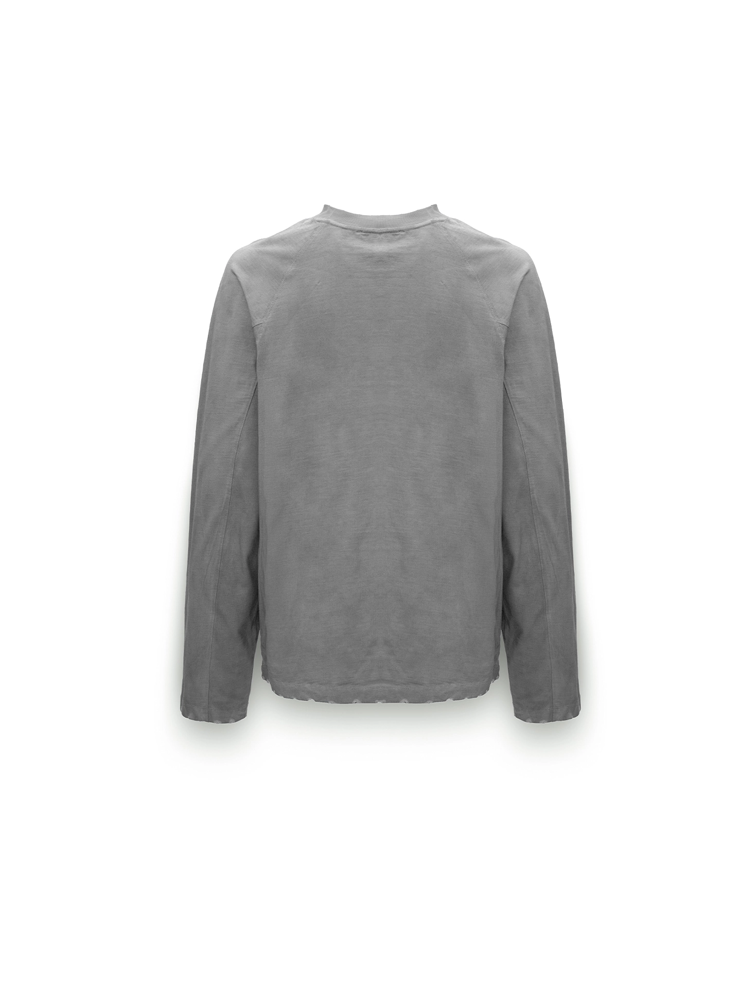 Лонгслив выполнен в графитовом оттенке с текстурой, напоминающей бетон. Винтажные потертости и аккуратные дырки придают вещи состаренный вид, делая каждое изделие уникальным.