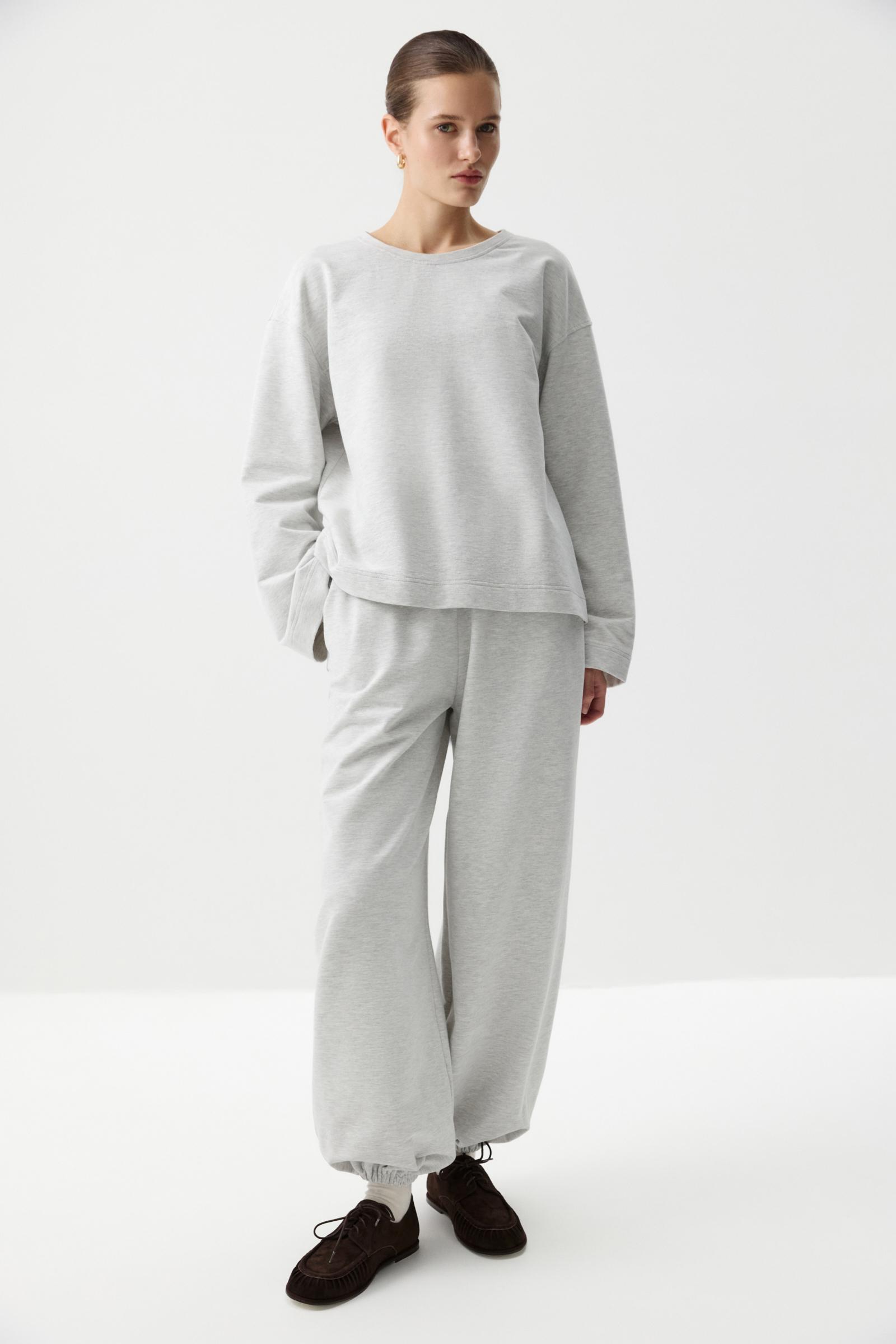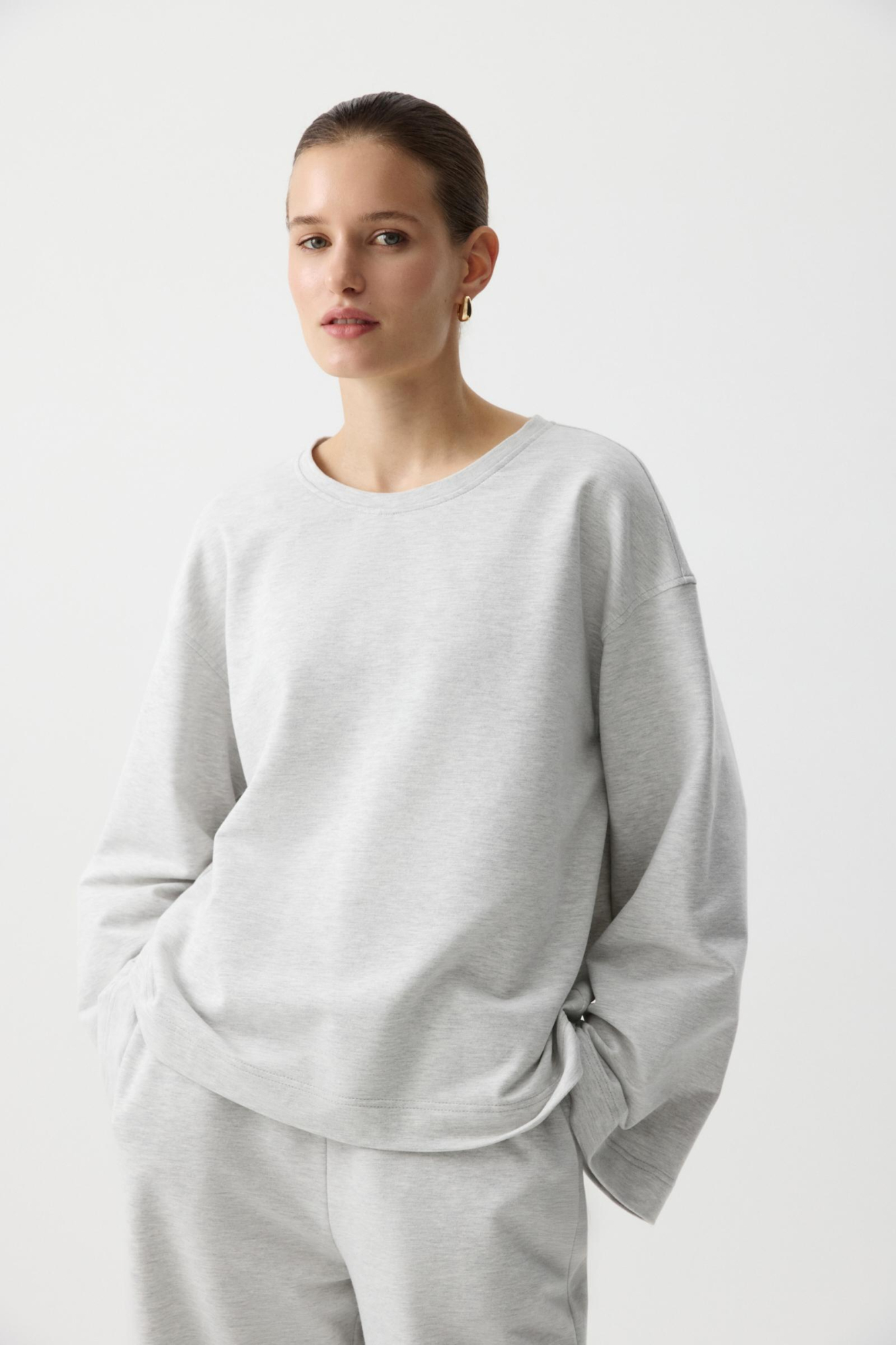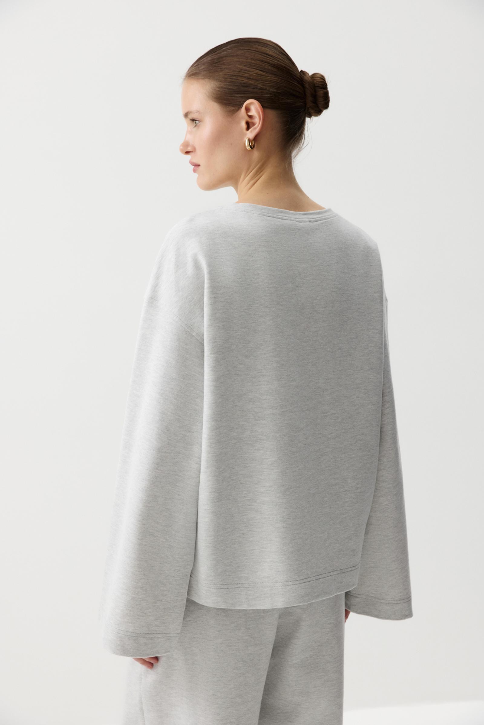 Лонгслив с широкими рукавами - стильная база с акцентом на фактуру. Мягкий двухниточный трикотаж с деликатным бархатистым эффектом приятен на ощупь, дарит ощущение уюта и отлично держит форму. Свободные широкие рукава создают расслабленный силуэт, а горловина лодка подчеркивает линию плеч и ключиц.