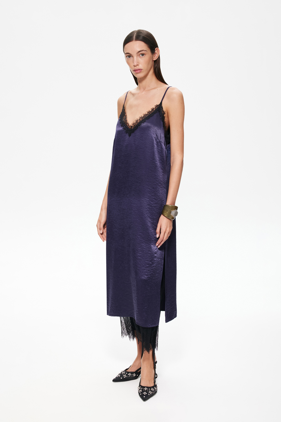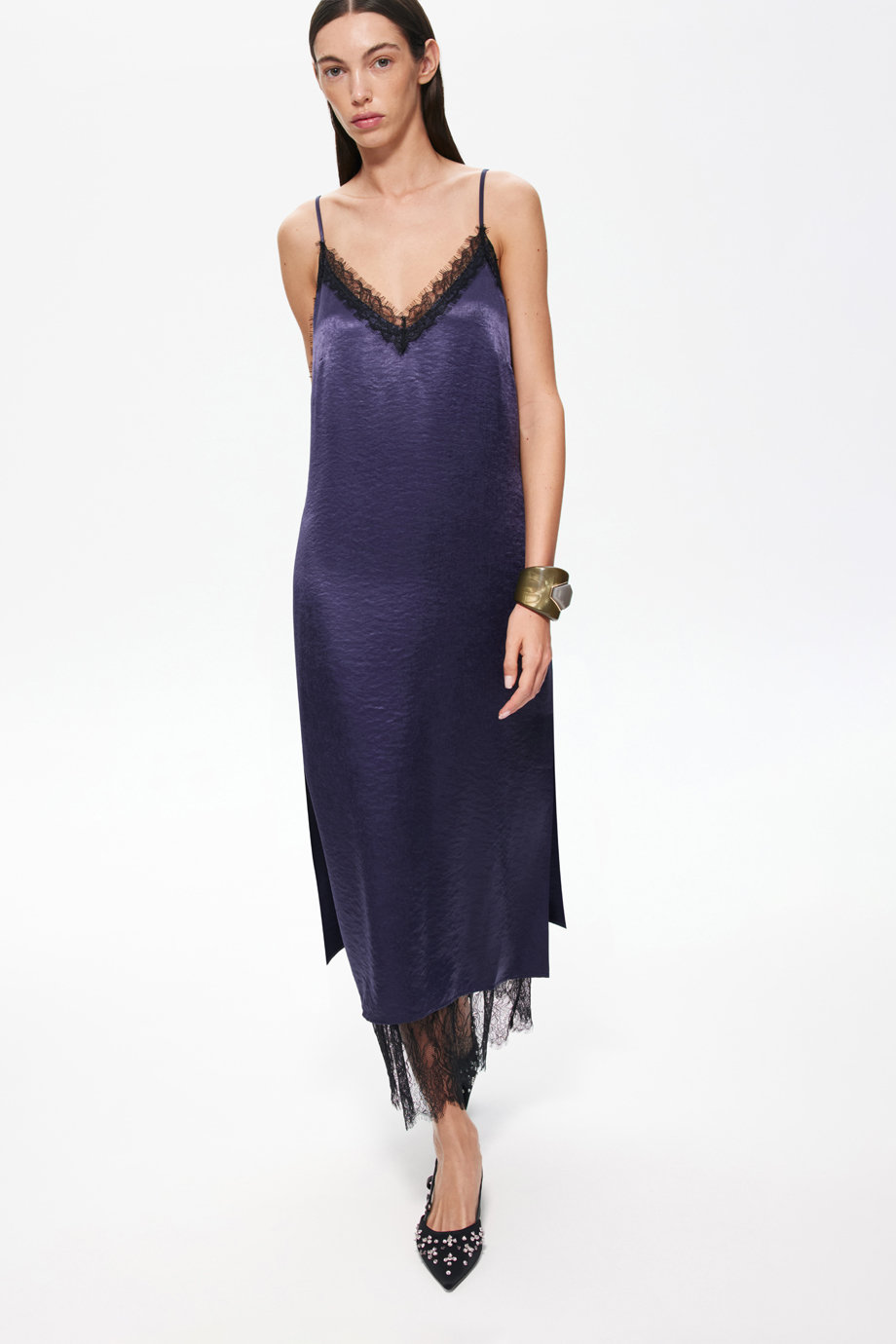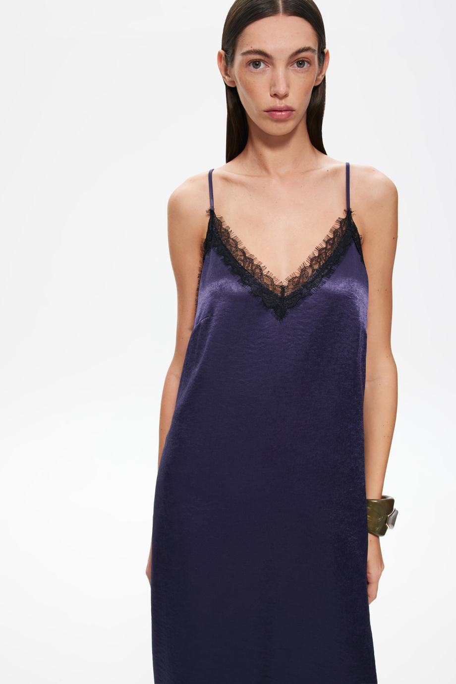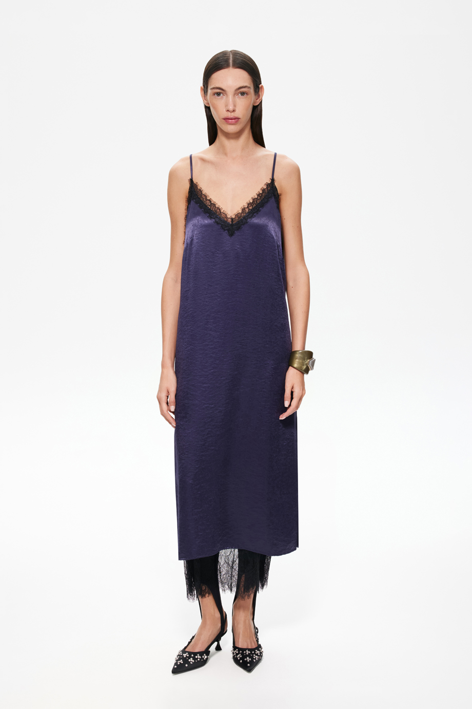 Изысканное платье-комбинация с кружевом — идеальный выбор для вечернего выхода или романтического свидания. Модель подчеркнёт женственность и создаст нежный и загадочный образ. Платье удобно в носке и подойдёт для различных мероприятий.