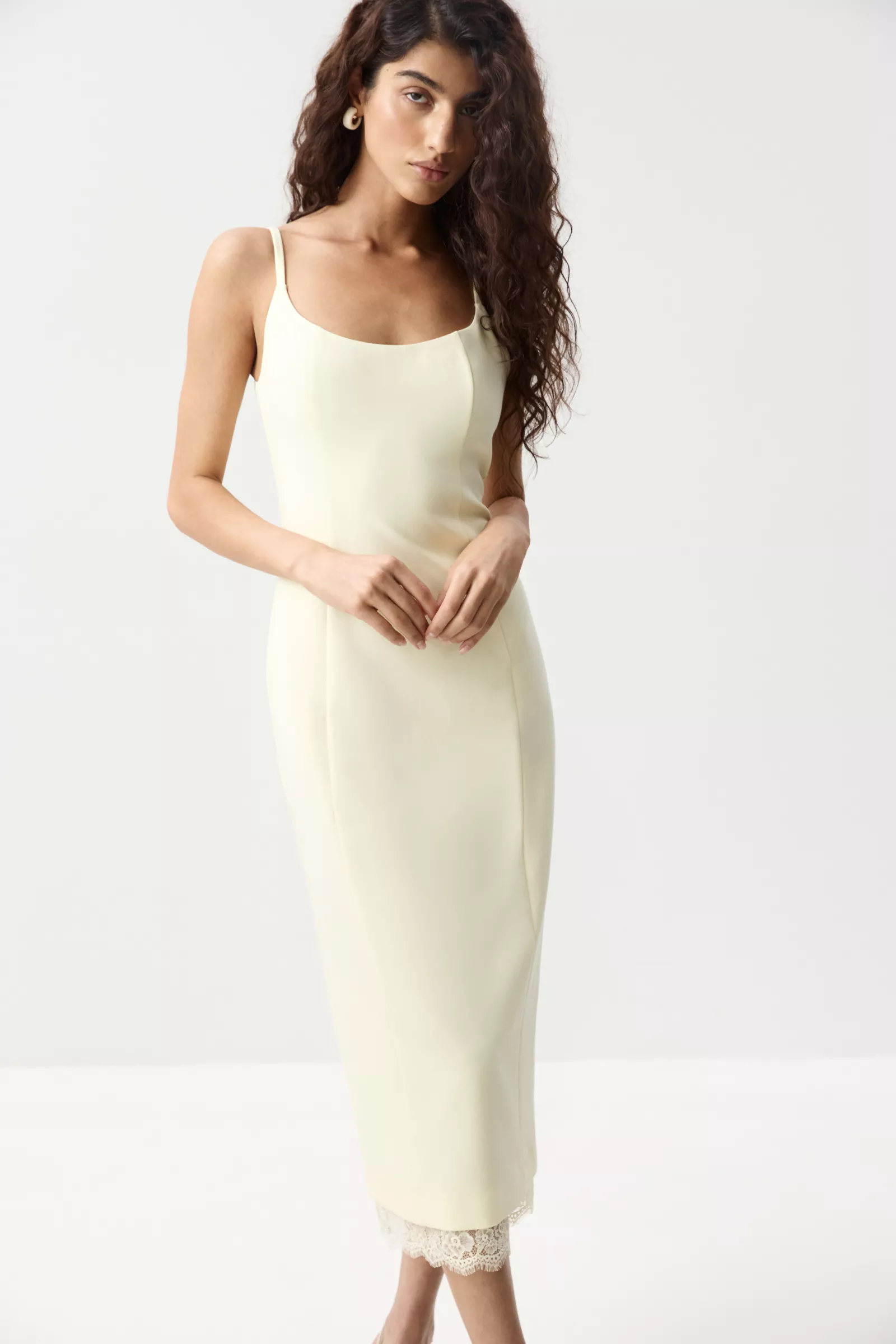 Платье макси на бретелях с кружевом