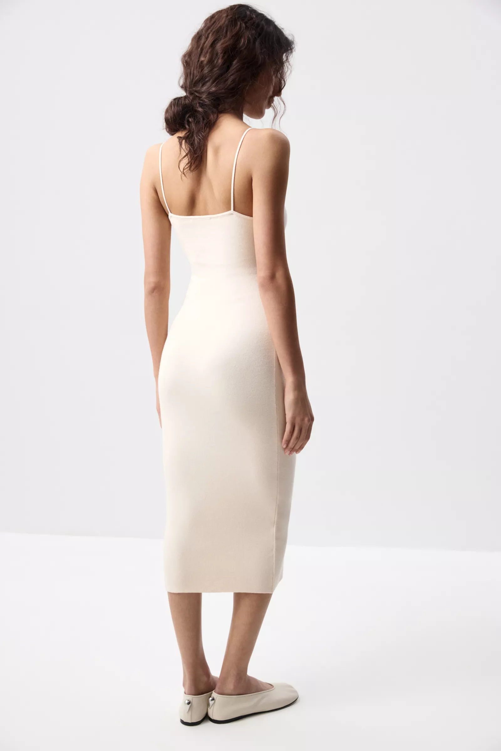 Платье-бандо миди на бретелях — элегантная и женственная модель с акцентом на чистый силуэт и открытые линии. Прямой крой мягко ложится по фигуре, создавая вытянутый и аккуратный силуэт, а длина миди добавляет образу сдержанной утончённости.
