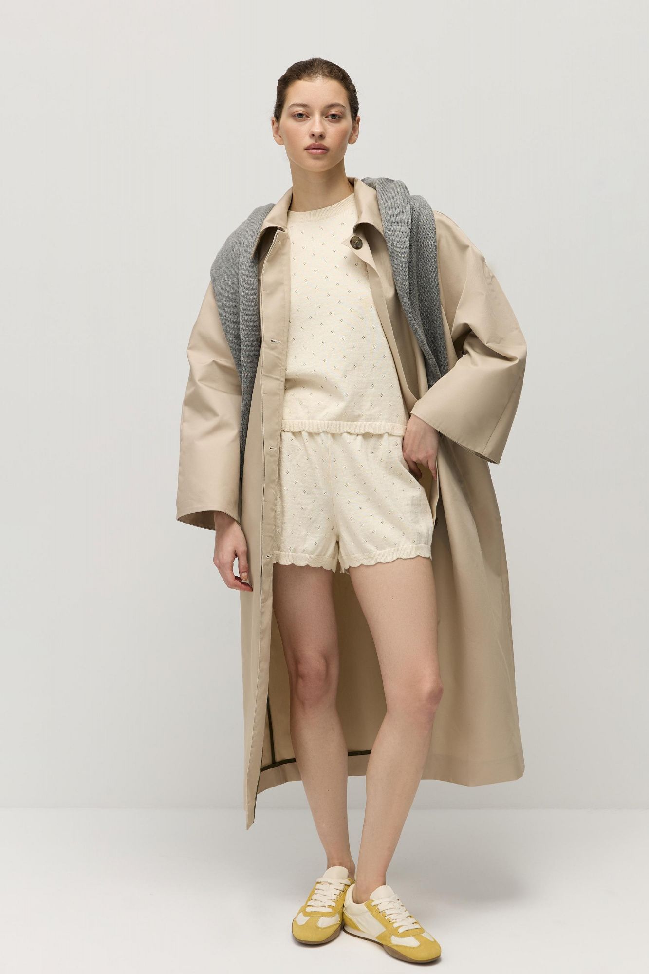 Шорты прямого кроя связаны из натурального хлопка с добавлением кашемира — нежной и комфортной к телу пряжи.